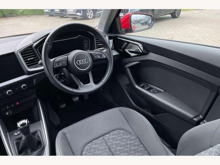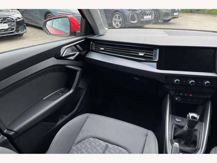10.25" Digital instrument cluster display classis style instrument dials + speed, odometer, time, outside temperature, telephone menu + fuel level warning, Audi connect safety emergency and service including E-call, Audi smartphone interface with connect compatible smartphone via USB directly MMI display + Nav, music, third party apps controlled via MMI controller, Automatic start/stop system, Bluetooth interface, Cruise control, Driver's information system, Electromechanical power steering, Lane departure warning system, Rear parking sensor, Service interval indicator, Speed limiter, Voice control system, Washer fluid level indicator, Dynamic suspension, 1 x SDXC card reader, 1 x USB type C and 1 USB type A charging points, DAB Digital radio, MMI radio plus with 8.8" colour MMI display screen and MMI touch, Auto dimming rear view mirror, Body coloured bumpers, Body coloured door mirrors, Electric front and rear windows, Electrically adjustable, heated, folding door mirrors with integrated LED side indicator, Front side air inlets in grained matt black and C frame in titanium black, Heat insulating glass windscreen and side windows, Heated rear windscreen, LED headlights with LED rear lights + dynamic rear indicators + headlight adjustment and high beam, turning light + LED daytime running lights, Radiator grille and rear diffuser in matt titanium black, Radiator protective grille frame in matt aluminium silver, Rain and light sensors, Rear fog lights, Rear wiper, Scandium grey tailpipe trim, Side front spoiler lips in grained matt black, 12V socket in centre console with two cup holders, 3 rear seats with headrests, 40:60 Split folding rear seat or folded fully, Door sill trims with aluminium inlay, Door sills trims with aluminium inlays, Driver and passenger seat with manual height adjust with forward and backwards adjustment, Front head restraints, Front/rear floor mats, Height and reach adjustable steering wheel, ISOFIX child seat mounting for front passenger and outer rear seats including top tether attachment point of outer rear seats, Leather gear knob with aluminium trim, Leatherette handbrake grip, Luggage compartment light with front and rear reading lights, Manually adjustable lumbar support in front seats, Novum cloth upholstery with front sport seats, Titanium grey cloth headlining, Luggage compartment pack - A1, 3x3 point rear seatbelts, Audi pre-sense front with pedestrain and cyclist recognition, Brake assist function, Driver and front passenger airbag with front side and head airbags, Electronic Stability Control including ABS, EBD, ASR and EDL, Front and rear seatbelt reminder, Front passenger airbag deactivation switch, Hill hold assist, Seatbelt height adjustment for front seats, Seatbelt monitoring, Tyre pressure warning light, Warning triangle and first aid kit, Anti theft alarm, Anti theft wheel bolts and loose wheel warning, Immobiliser, Remote central locking with 2 foldaway keys, Aluminium trim for control switches, air vents and digital instrument cluster, Silver grey accent areas including air vents, door handle recesses and centre console in diamond paint finish, Slate grey inlays polygon structure in fine paint finish,