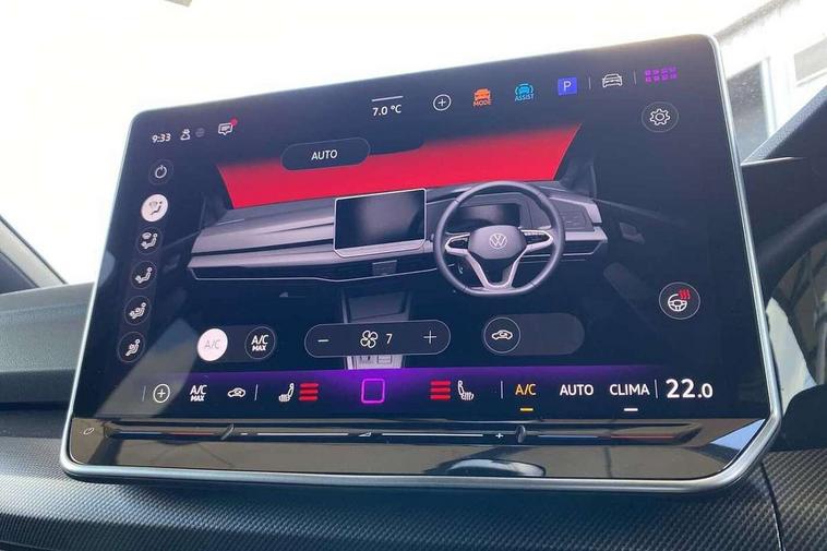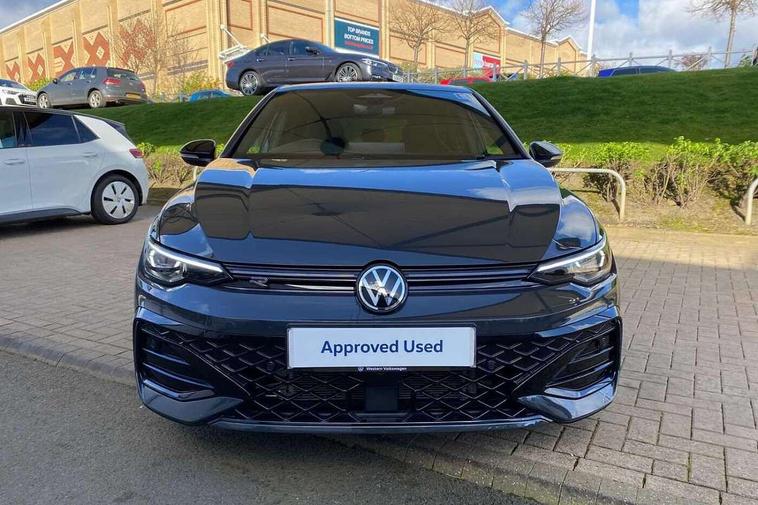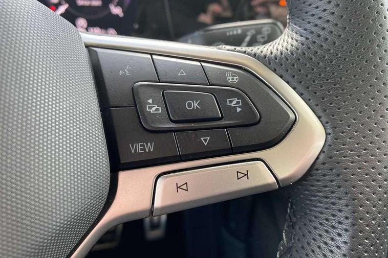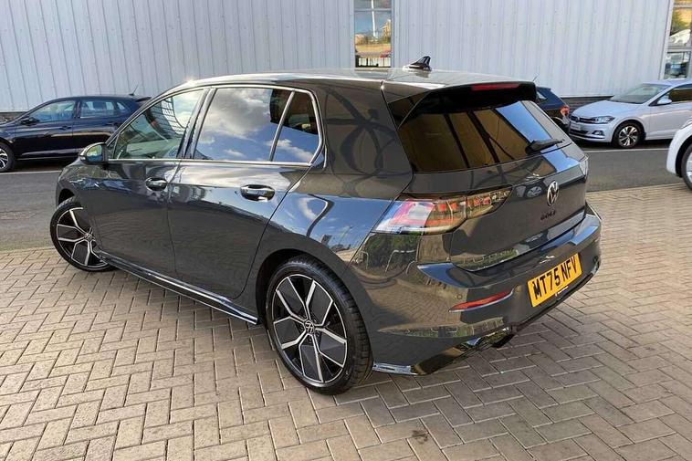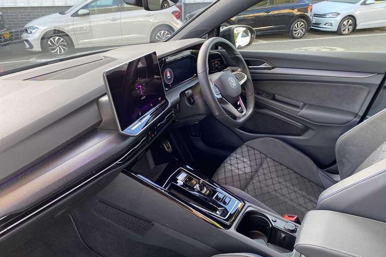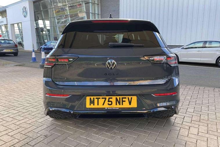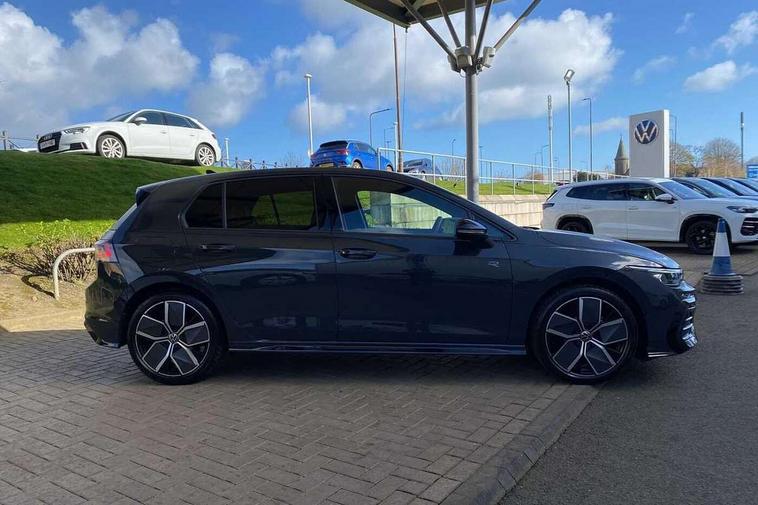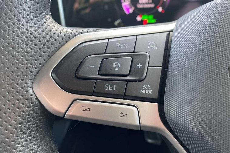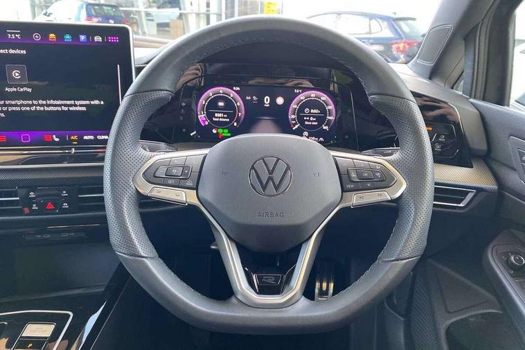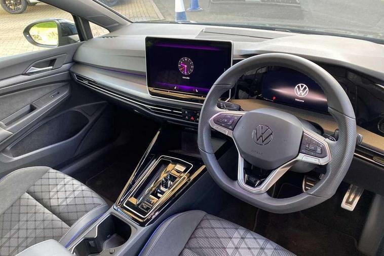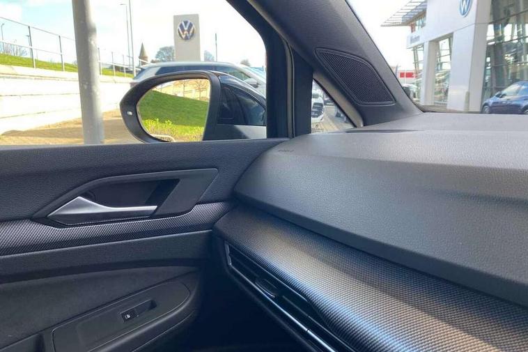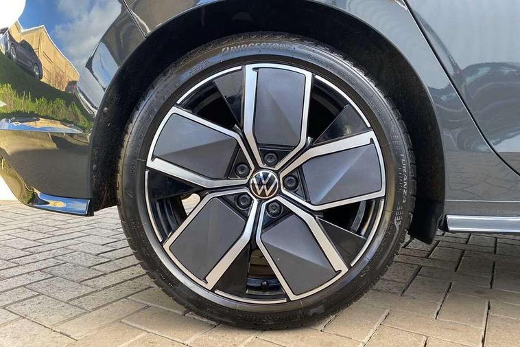 Activated carbon canister, Adaptive cruise control (ACC), Advanced driver attention and drowsiness monitor, Dynamic road sign display, Dynamic steering, E-Sim card for online connectivity, eCall emergency call system, Multi-color Digital cockpit pro, selection of different info profile possible, Multifunction front facing camera for distance control, Navigation system, Oncoming vehicle braking when turning including swerve support, Speed limiter, Speedo, rev counter, electronic odometer, trip, service interval display, exterior temperature and fuel gauge, Traffic jam assist, Voice enhancer and voice control, Warning signal and warning light for front and rear seatbelts not fastened, We connect plus preparation, We connect preparation, Wireless app connect, Hybrid propulsion system, Petrol Particulate Filter, Start-stop system with battery regeneration (recuperation - energy recovery during braking), XDS electronic differential lock for improved traction and handling, 2 USB C ports in front, 2 USB charging sockets on the centre console in the rear charging capacity upto 45W, Digital radio reception (DAB), Diversity antenna for FM reception, Gaming platform via car app, Infotainment system with 12.9" display, Mobile phone interface with inductive charging feature, 3rd brake light, Auto dimming rear view mirror, Automatic headlamp activation with Coming home and Leaving home feature, Body colored bumpers in R-Line style, Body colour door handles, Exterior ambient lighting, Exterior mirrors convex on the left and aspherical on the right, Front and rear electric windows, Heat insulating windshield made of laminated glass, LED separate daytime running light, Rain sensor, Rear exhaust tailpipe, Rear fog light on one side and reversing lights on both sides, Rear side wing doors, Rear windscreen washer and wiper with interval delay, Remote electrically foldable door mirrors, puddle lights and reverse activated passenger's door mirror, Volkswagen logo in front, illuminated lighting animation with wake up/goodbye scenario and illuminated door handles, Welcome light with surround lighting, 12V socket in front centre console, 12V socket in luggage compartment, 3 rear head restraints, 3 seat bench in 2nd row, Ambient lighting with 30 colour including LED light unit in front footwell with selectable light colour, Black roof lining, Brushed stainless steel pedals, Chrome plated radiator grille inserts, air vent surrounds and light switch surrounds, Door insert, side trim panel and arm support in leatherette, Front + rear black carpet mats, Front centre armrest, Front seat lumbar support adjuster, Integrated front head restraints, ISOFIX anchors for child seats on outer rear bench seats and on front passanger seat compatible for i-Size, Luggage compartment lighting, Manual height adjustable front passenger seat, Manually height adjustable driver seat, Plastic gear knob, Premium sports seats in front, Rear cupholder and loadthough, Sardegna cloth upholstery with front and outer rear seats Art Velour inner sides of bolsters, Single front passenger seat, Split folding backrest with centre armrest and unsplit rear seat bench, Sun visors with illuminated vanity mirrors, Titanium black instrument panel, Black exterior Styling package with Matrix LED headlights - Golf, Winter package - Golf DSG Estate/Hatchback, 3 point height adj front seatbelts + pretensioners, 3 rear three point seatbelts, ABS, Autonomous emergency braking front assist with pedestrian and cyclist monitoring, Child locks on rear doors, Driver and front passenger airbag with front passenger airbag deactivation, Electronic parking brake with auto hold, ESC (Electronic Stability Control), Extended pedestrian protection measures, Hill start assist, Rear disc brakes, Two tone horn, Tyre pressure loss indicator, Volkswagen roadside assistance, Anti theft wheel bolts, Preparation for alcohol interlock, Decorative inserts carbon grey for dashboard and front door trim panels, 18" Leeds alloy wheels, Tool kit for tyre mobility set, Tyre mobility kit Includes 12V compressor and tyre sealant,