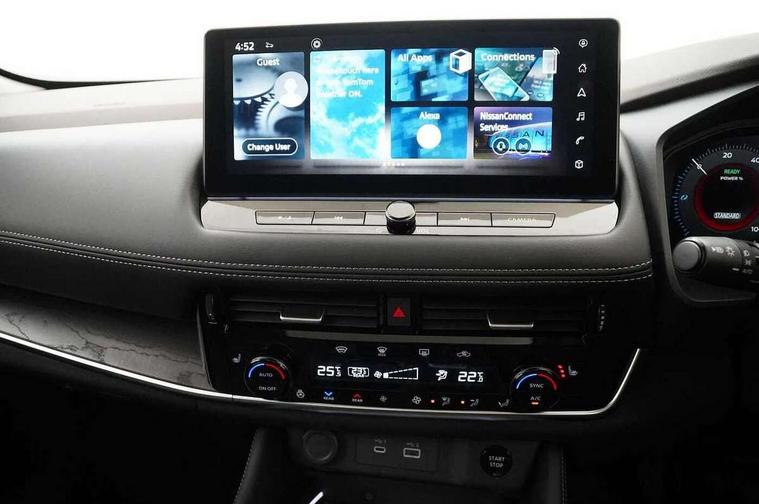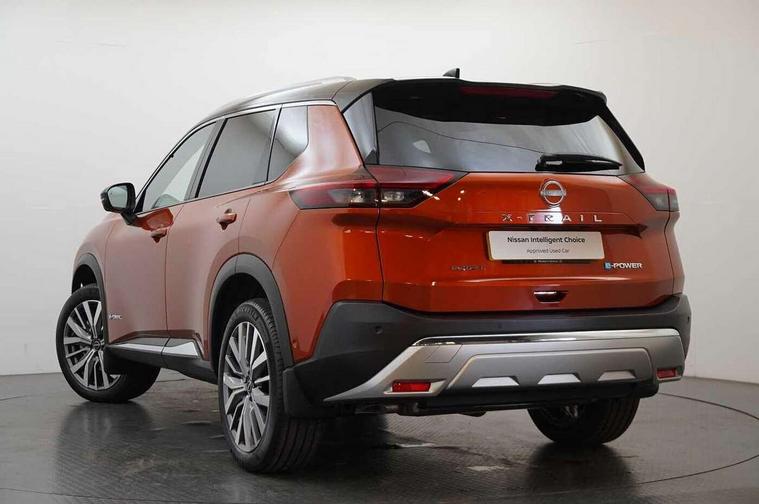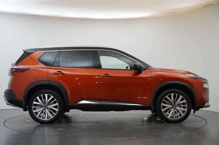 Advanced 10.8" head up display, Android auto/Apple CarPlay (Wired), Blind spot warning, Drive modes (sport, normal, eco, snow, off-road), e-Pedal step, Electric speed sensitive power steering, Emergency and breakdown call, Front and rear parking sensors, Full Digital 12.3" TFT Digital Combimeter, Google maps services - search, weather, 3D maps and Google street view, Hands free power tailgate, Idle stop/start system, Intelligent around view monitor, Intelligent driver alert system, Intelligent forward collision warning, Intelligent lane departure warning, Intelligent lane intervention, Intelligent lane keep assist, Lane departure prevention, Maximum speed limiter, Moving object detection, Nissan connect 12.3 inch touchscreen infotainment system, Nissan connect nav with TomTom traffic, Pro pilot and head up display, ProPilot park, Push button starter, Rear cross traffic alert, Rear view camera, Remote control services - door locks, lights, horn and car locator, Telematics - notifications and connectivity services, TomTom live traffic services, Traffic jam pilot, Traffic sign recognition with legal speed adjustment, Trip computer, Virtual personal assistant and firmware over the air capability, Wireless apple carplay, Wireless charging pad, AM/FM audio system with DAB, Bluetooth audio streaming, Bose premium acoustimass bass box with digital amplifier, Bose premium sound system with 10 speakers, Digital amplifier, Front USB connections (Type-A and Type-C), Rear USB charging only ports (Type-A and Type-C), 3rd brake light, Auto dimming rear view mirror, Auto rear wiper when reversing, Body colour mirror caps, Body coloured door handles, Bodyside mouldings, Chrome side window finisher, e-4ORCE badging, e-POWER badging, Electric auto folding door mirrors, Electrically adjustable and heated door mirrors, Follow me home headlights, Headlights auto levelling system, High beam assist, Intelligent auto headlights, LED daytime running lights, LED front fog lights, LED headlights with adaptive driving beam, LED rear lights, Memory function for door mirrors, One touch front and rear electric windows with remote opening and closing, Partially body coloured bumpers, Rain sensing wipers, Rear privacy glass, Rear reversing light (bulb lighting), Rear roof spoiler, Rear side wing doors, Rear styling plate, Reverse tilting door mirrors, Shark fin antenna, Splash free wipers, Super UV and infrared cut glass, Thermaclear heated windscreen, Three blink turn signal, 12v power socket in dashboard and luggage, 2 seat bench in 3rd row, 3 bench rear seats in 2nd row, 3 rear headrests, Butteryfly console, Chrome interior door handles, Dark headlining, Driver and front passenger sunvisors with illuminated vanity mirrors, Driver seat back pocket, Electric adjustable 2 way lumbar support for driver, Electrically adjustable driver seat with massage and memory functions, Electrically adjustable passenger seat with massage and memory functions, Front and rear heated seats, Front centre console and armrest, Front cupholders, Front door with bottle holders, Heated steering wheel, Height adjustable driver's seat, Height adjustable front headrests, Height adjustable passenger seat, Leather shift knob, Leather steering wheel, Luggage board system, Luggage space lighting, Multifunction steering wheel, Passenger seat back pocket, Quilted premium leather upholstery, Rear armrest with 2 cupholders, Rear door bottle holders, Single front passenger seat, Sliding second row seats, Split folding 2nd row - 40/20/40, Steering column mounted gear shift paddles, Tilt/telescopic adjustable steering wheel, Tri zone automatic climate control with pollen filter, Two rear isofix child seat anchorage points with top tether, Sky pack - X-Trail, 3x3 point rear seatbelt pretensioners + load limiters, ABS with EBD and brake assist, Active brake limited slip, Auto hold function, Child locks on rear doors, Curtain and front side, far side airbags, Driver and passenger airbags, Driver, passenger and 2nd row rear seat belt reminder, Electronic parking brake, Front seatbelt pretensioners + load limiters, Height adjustable front seatbelts, Hill start assist, Intelligent blind spot intervention, Intelligent front emergency braking with pedestrian, cyclist recognition and junction assist, Intelligent rear automatic braking, Tyre pressure monitoring system, Vehicle dynamic control, Advance intelligent key with driver memory storage (seats, mirrors, audio), Engine immobiliser, Remote central door locking with deadlocking, Thatcham Cat.1 alarm, 20" Diamond cut alloy wheels, Tyre puncture repair kit,