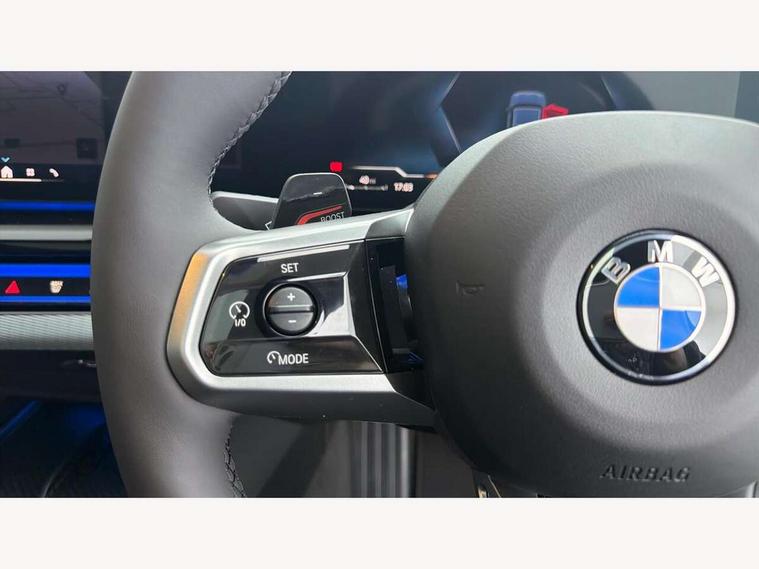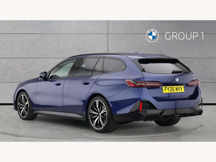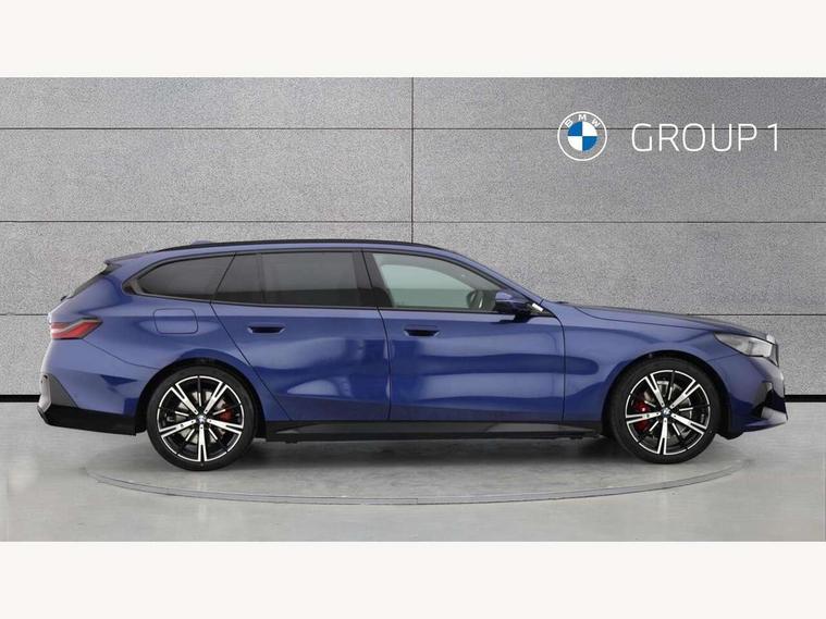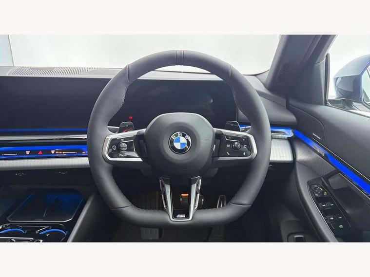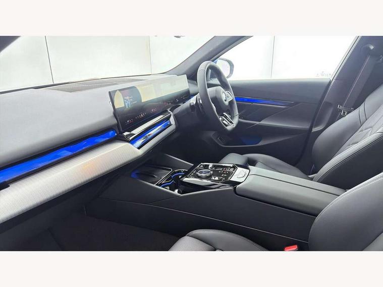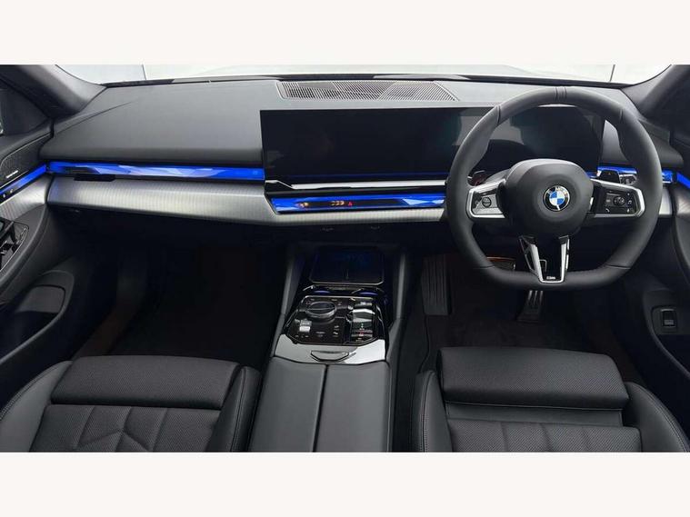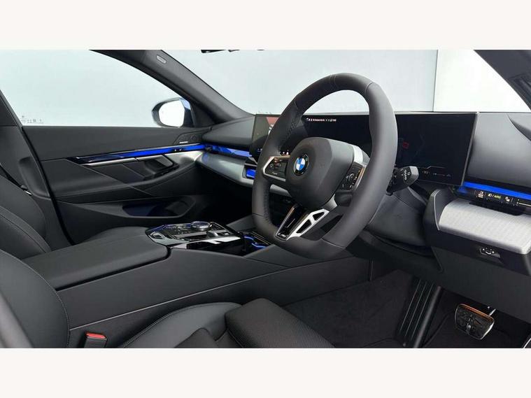 Automatic tailgate operation, BMW ConnectedDrive online services, BMW legal emergency call, BMW Teleservices, Brake pad wear indicator, Cruise control with brake assist, Driving Assistant Plus Preparation, Front collision warning with brake intervention, Lane departure warning with active return, Left turn warning with brake function, Multifunctional instrument panel, Oil sensor for level and grade, On board computer inc. average speed, fuel consumption, liquid crystal Info display, journey computer, outside temperature display, personal profile, On-board diagnosis - OBD, PAS, Personal e-SIM, Powered by Operating System 7.0, Run flat indicator, Service interval indicator, Speed limit Info with manual speed limit assist, Stop/start button, 8 speed automatic steptronic transmission with gearshift paddles, Expert mode, Launch control, DAB tuner, Acoustic glazing, Adaptive LED Headlights, Automatic cornering lights, Automatic windscreen wipers and automatic headlight, BMW selective beam, Body colour door handles, Body coloured bumpers, Dynamic brake lights with LED technology, Electric adjustable door mirrors, Electric front and rear windows with fingertip open/close + anti-trap facility and comfort closing function, Follow me home headlight function, Headlight elements in blue, Heated windscreen washer jets, LED daytime running lights, LED third brake light, Light colour close to that of ordinary daylight, M high gloss shadow line with extended contents - Radiator grille frame, struts and strip in rear light, M light shadowline - Dark design of selected elements of the headlight and rear lights, M Sport rear boot spoiler, Optimum, homogeneous illumination of the road, Rear side wing doors, Rear wiper, 2 zone automatic air conditioning, 3 seat bench in 2nd row, 3 spoke leather M steering wheel in BMW M specific design with M badge, Armrest - front and rear integrated door trim, centre console includes storage compartment, rear centre includes 2 cupholders, Child seat ISOFIX attachment with rear outer seats includes top tether, Coat hook on upper B-pillar panel, Electric adjustable steering column, Electrically adjustable lumbar support for driver and front passenger, Heated driver and front passenger seats, High-gloss black door switch cluster, power window switch and tailgate button on first and second row seat, M Anthracite headlining, M door sill kickplate, M Sport pedal covers in stainless steel, Rear headrests, Single front passenger seat, Through loading system with 40/20/40 rear seat backrest split, Velour floormats, Wireless charging tray, Ambient lighting pack - 5 Series/I5, BMW Iconic glow kidney grille exterior package, Connected package professional - 5 Series/I5, Driving assistance pack - 5 Series/I5, Expanded exterior mirror package - 5 series/I5, M high gloss shadow line pack - 5 Series/ I5, M Sport exterior styling pack - 5 Series/I5, 3 rear three point seatbelts, Active protection, Airbag deployment is controlled with respect to the intensity and scope, Anti-lock braking system (ABS), Brake assist, Brake energy regeneration, Cornering brake control (CBC), Crash sensor activating central locking release, hazard warning lights, fuel cut off and interior lighting, Driver and front passenger airbags, Driver central airbag, Driver/front passenger side airbags, DSC - Dynamic Stability Control, Dynamic brake control, Dynamic Traction Control - DTC, Electromechanical parking brake with automatic drive away release and auto hold function, Electronic brake force distribution, Engine drag torque control, Front and rear brake discs with interior ventilation, Front and rear curtain airbags, Front head restraints with anti-whiplash, Head airbags for first and second row seats, Hill start assist, Locking of doors after driving off, M seat belts, Mechanical child proof lock on rear doors, PC iBrake PostCrash approach control warning with light braking function, Side impact protection, Trailer stability control, Two tone horn, Tyre pressure monitoring system, Warning triangle and first aid kit, Alarm system, Locking wheel bolts including wheel bolt adapter, Tyre repair kit,