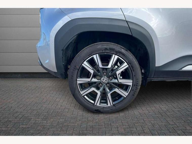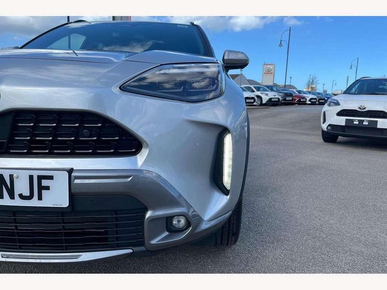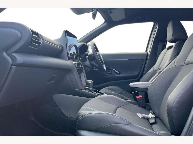 10.5" Multimedia display screen, 10.5" Toyota smart connect+ with navi multimedia system with wireless Smartphone integration incl Apple CarPlay, 360 degree panoramic view monitor, 7" Multi information display screen, Adaptive cruise control, multi info switches on steering wheel, Adjustable speed limiter, Advanced parking assist, Blind spot monitoring, Bluetooth connectivity, Color multi-information display, Digital speedometer, Digital tachometer, Drive mode selector, Driver attention alert system, Dynamic guide lines on reversing camera, eCall emergency system, Electric power steering, Emergency driving stop system, Full range intelligent adaptive cruise control, Hybrid system indicator, Intelligent front and rear parking sensors with clearance sonar and automatic braking, Intersection turn assist, Key reminder warning, Lane change assist, Lane trace assist, My T Connected services, Power tailgate, Pre-collision system enhanced with emergency steering assist, Rear cross traffic alert, Remote boot door release in cabin, Road sign assist - RSA, Safe exit assist, Tailgate, Telephone switch on steering wheel, Wireless Mobile Phone Charger, Steering assisted vehicle stability control, 6 speakers, DAB Digital radio, Front USB Type-C connector, Front USB-C device charger, Acoustic windscreen glass, Anti-jam protection on power windows, Auto dimming rear view mirror, Auto high beam [AHB] with on/off switch, Auto intermittent windscreen wipers, Automatic headlights, Automatic headlights cut-off, Automatically retractable door mirrors, Black door moulding, Black lower front grille, Black protection moulding on side doors, Black roof rails, Black wheel arch mouldings, Body colour door handles, Body colour front bumper, Body colour rear bumper, Electric adjustable heated door mirrors, Follow me home headlights, Front and rear electric windows with auto up/down function, Gloss black upper front grille, Headlight cut off reminder, Indicators integrated on door mirrors, Intermittent rear wiper, Kick activated power back door, LED 3rd brake light, LED daytime running lights guide, LED front fog lights, LED front light guide, LED Indicators, LED projector headlights, LED rear lights with sequential indicators, Manual headlight levelling, Meshed shape upper front grille, Noise reduction layer on windscreen, Pre wiring for towing hook, Privacy glass, Rain sensor, Rear roof spoiler, Rear side wing doors, Rear window defogger, Shark fin antenna, 12v power outlet - front, 12V power point in boot, 2x Rear coat hooks, 3 seat bench in 2nd row, 3 spoke leather steering wheel, 40/60 split deckboard, 40:20:40 split folding rear bench seat, Adjustable rear headrests, Adjustable speed limiter switch on steering wheel, Boot light, Central armrest, Driver and front passenger personal lights, Driver and front passenger Whiplash injury Lesseing seats, Driver and passenger seatback pockets, Dual zone automatic air conditioning, Fabric door trim, Front console box, Front cup holders, Front door pockets, Front head restraints, Front sport seats, Front/rear assist grips, Gear shift indicator, Grey roof lining, Heated driver and passenger seats, Heated steering wheel, Height adjustable driver's seat, Height adjustable front passenger seat, Hooks for luggage holding belts, ISOFIX child restraint system, Lane departure alert switch on steering control, Leather gearshift, LED centre room light, Light on driver and passenger sun visor, Manual telescopic and tilting steering wheel, Mirror on driver and passenger sun visor, Nanoe-X air purifier, Partial synthetic leather upholstery, Pollen air filter, Power adjustable lumbar support on driver seat, Rear cup holders, Rear door pockets, Rear head restraints, Remote air-conditioning system, Single compartment glovebox, Single front passenger seat, Soft tonneau cover, Storage box under boot floor, Voice recognition switch on steering wheel, White ambient lighting in centre console, White ambient lighting in footwell, White ambient lighting on front doors, Yaris cross floor mats, 3x3 point rear seat belts, ABS+EBD+Brake assist, Downhill Assist Control (DAC), Driver and passenger central airbags, Driver and passenger front airbags, Driver and passenger side airbags, Electronic parking brake, Emergency brake light system (EBS), Front seat belt reminder, Hill start assist control (HAC), Passenger airbag on/off switch, Pre-collision system with pedestrian and cyclist detection, Rear door child safety locks, Rear passenger side airbags, Rear seat belt reminder, Traction control, Tyre pressure warning system, Immobiliser, Intrusion alarm, Keyless smart entry with push button start, Power door locks, Power passenger window lock, Remote door lock, Gloss black side air vent surrounds, Tyre repair kit,