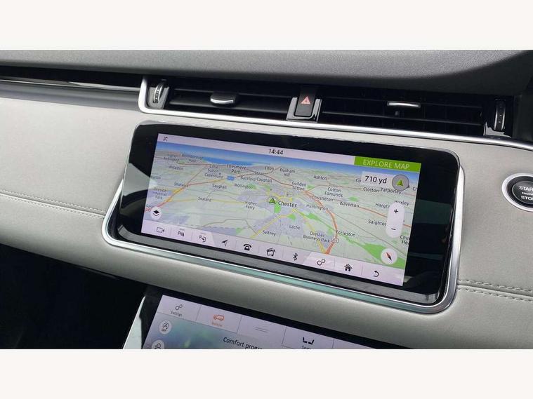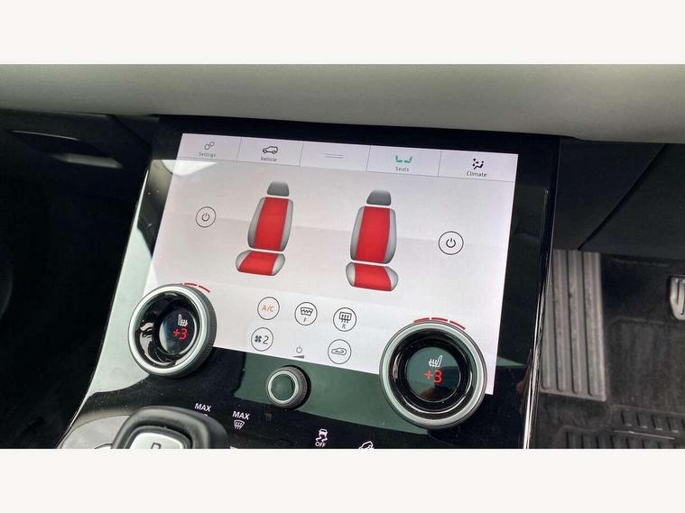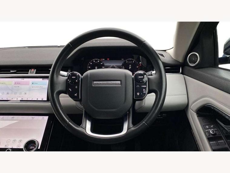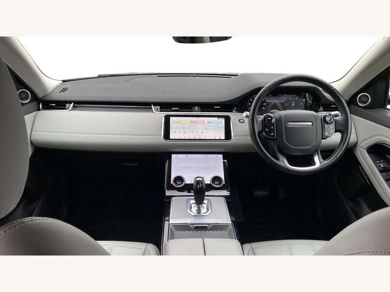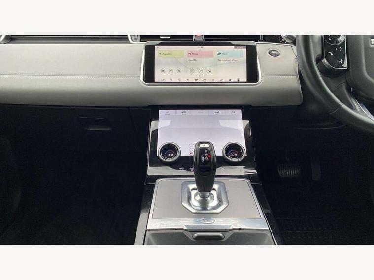 360 degree parking aid, Android Auto, Apple car play, Bluetooth connectivity, Brake pad wear indicator warning light, Clear exit monitor, Driver condition monitor, Duo touch pro, Electronic power assisted steering (EPAS), InControl remote, Interactive Driver display instrument cluster, Land Rover InControl apps, Lane keep assist, Navigation pro system, Park assist - Parallel, perpendicular and parking exit, Pro services and wifi hotspot, Push button starter, Rear traffic monitor, Smart settings, Traffic sign recognition with adaptive speed limiter, Voice control system, All terrain progress control, Efficient Driveline, Passive suspension, Terrain Response 2 Auto, Digital Audio Broadcast radio-DAB, Steering wheel mounted controls, Automatic headlight levelling, Electric windows with one touch open/close and anti trap, Evoque badge, Flush deployable exterior door handles, Heated rear window with timer, Heated washer jets, Heated windscreen, Power fold, auto-dimming, heated door mirrors with memory and approach lights, Rain sensing windscreen wipers, Rear fog lights, Tailgate spoiler, 40:20:40 split folding rear seats, Isofix system on outer rear seats, Overhead lighting console, Overhead stowage for sunglasses, Passive front head restraints, Rear air vents, Rear centre headrest, Sunvisors with illuminated vanity mirrors, Twin front cupholders with cover, Twin sliding front centre armrest, Two zone climate control, Anti-lock braking system (ABS), Customer configurable autolock, DSC - Dynamic Stability Control, Electronic brake force distribution, Electronic parking brake, Electronic traction control, Front and rear seatbelt reminder, Hill descent control, Hill launch assist, Low traction launch, Power operated child locks, Roll stability control, Six airbags - Driver and passenger airbags/driver knee airbag/front side airbag and curtain airbags, Torque vectoring brake, Tyre pressure monitoring system, Alarm, Immobiliser, Intrusion sensor, Locking wheel nuts,