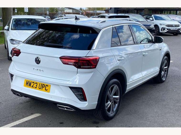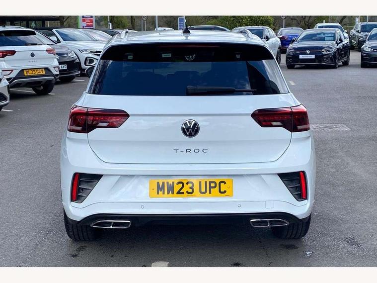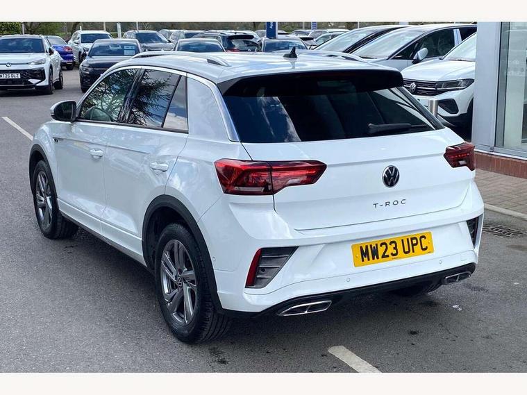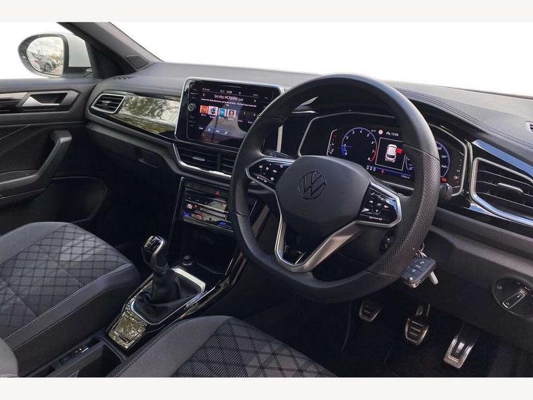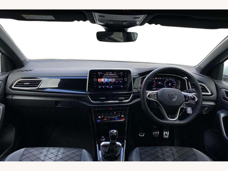 10.25" Digital cockpit pro, Bluetooth mobile phone interface, Driver alert system with fatigue detection, Driver tips and journey analysis, Emergency call service, Lane keeping system Lane Assist, Modified key software - reduce switch off time for key status change to Long no motion, Online services, Park assist including front and rear parking sensors, Service interval indicator, Tailgate/trunk lid release from outside, Think blue trainer driver tips and journey analysis, Warning sound and light for front seatbelts unfastened, Wireless app connect, Battery regeneration during braking, Start/stop function with battery regeneration, Diversity antenna for FM reception, Front and rear 6 speakers, Music playback - MP3, WMA and AAC files, Premium USB cable in choice of either Apple or Android smartphone compatibility, SD card slot, Simultaneous pairing of 2 compatible mobile devices, Title and cover art display, We Connect and We Connect Plus functionality, 3rd brake light, Auto dimming interior rear view mirror, Automatic hazard lights activation under emergency braking, Automatic headlight control with LED separate daytime running lights with coming/leaving home function, Extended roof spoiler, Exterior mirrors aspherical on driver side, convex on front passenger side, External USB type C socket and charging sockets, Front windscreen wiper with intermittent wipe and 4 position delay, Heated rear window, LED Plus headlamps, LED rear combination lamps, LED rear number plate lights, LED tail lamp rear comination lamps, Power windows with comfort operation and circuit breaker, R-Line design body coloured bumpers, Rain sensor, Rear exhaust tailpipe, Rear fog light on one side and reversing lights on both sides, Rear side wing doors, Rear wash/wipe with intermittent wipe setting, Remote electrically foldable door mirrors, puddle lights and reverse activated passenger's door mirror, 12V power socket in centre console, 3 rear head restraints, 3 seat bench in 2nd row, 4 load lashing points in luggage compartment, Air care climatronic air conditoning system with active combination filter and 2-zone temperature control, Black roof lining, Chrome plated radiator grille inserts, air vent surrounds and light switch surrounds, Door and side trim panel with leatherette insert, Drawer under drivers seat, Front + rear carpet mats, Front centre armrest, Front cupholders x 2, Front footwell illumination, Front reading light, Front scuff plates with R logo, Instrument lighting, white adjustable panel illumination, Interior ambient lighting and surround lighting, Interior light delay, Isofix child seat preparation, Leather gearshift handle, Load-through provision with cup holder when folded down ('Unsplit rear seat bench, split folding backrest, with centre armrest), Luggage compartment lighting, Single front passenger seat, Stainless steel pedals, Storage compartment in left and right luggage area, Storage compartment in rear doors, Storage compartments in driver and front passenger doors, Sunvisors with illuminated vanity mirrors, Variable boot floor, height adjustable and removable, Driver assistance pack without proactive passenger protection - T-Roc, 3 point height adj front seatbelts + pretensioners, 3 point seatbelts in outer rear with ECE label, ABS, Child locks on rear doors, Driver and front passenger airbag with front passenger airbag deactivation, Driver and front passenger safety-optimised head restraints, Drivers seatbelt reminder, Electronic parking brake, Electronic Stability Control (ESC) inc EDL (Electronic Differential Lock) and ASR (Traction Control), Front and rear passengers curtain airbag system including front side airbags, Front assist with city emergency braking and pedestrian monitoring, Front seat side impact airbags, Hill start assist, Predictive pedestrian protection, Rear disc brakes, Single tone horn, Tyre pressure loss indicator, Volkswagen roadside assistance, Alarm with interior protection, Anti-theft alarm system with interior monitoring, backup horn, and towing protection, Remote central locking with SAFELOCK, radio remote control with 2 remote control folding keys, Trims for alloy wheels,