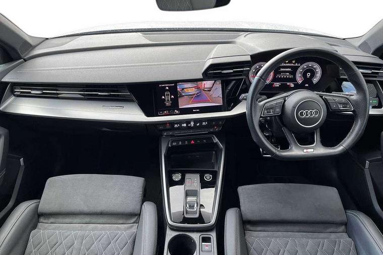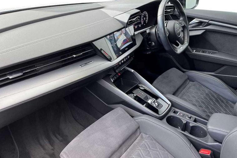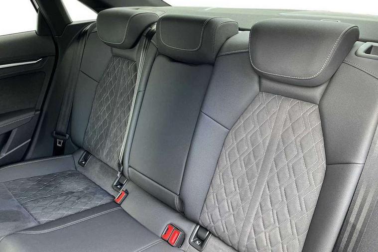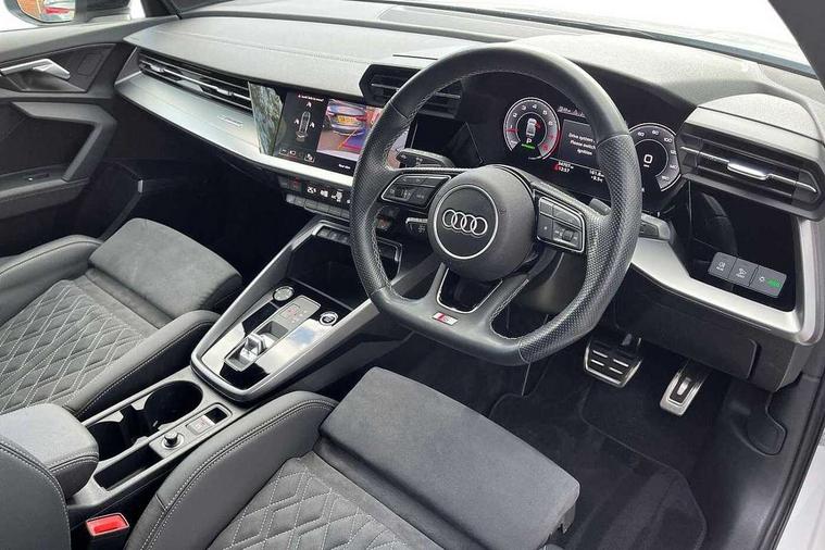 Audi connect emergency call and service, Audi drive select (Auto, Comfort, Dynamic, Efficiency and Individual), Audi smartphone interface, Audi virtual cockpit plus - 12.3" dynamic digital instrument cluster, Automatic start/stop system with recuperation, Bluetooth interface, Collision avoidance assistant, Electromechanical power speed sensitive steering, Lane departure warning system, MMI Navigation Plus with high resolution 10.1" colour touch screen display, Service indicator, Voice control system with natural language interaction, Sports suspension, 2x USB Type C ports (for charging and data transfer), 6 passive loudspeakers, CD player, DAB Digital radio, 3rd brake light, Acoustic glass windscreen, Audi matrix LED headlights, LED rear lights, dynamic front and rear indicators and headlight cleaning system, Auto dimming frameless rear view mirror, Electrically adj heated/folding + automatically dimming exterior mirrors + automatic kerb side function for passenger side exterior mirror, Front electric windows, Illuminated door sills with aluminium inserts at the front with S logo, Integrated LED indicators in door mirrors, LED daytime running lights, Light and rain sensors, Model and engine designation badges at rear, Privacy glass - dark tinted rear window, rear door and side windows, Rear boot, Rear electric windows, Rear side wing doors, S roof spoiler, 12V socket and storage compartment in front centre console, 3 seat bench in 2nd row, 4 way electrically adjustable lumbar support for driver and front passenger, 40/20/40 split folding rear seat bench with cupholder, Black cloth headlining, Dual zone electronic climate control, Electrically adjustable front seats, Front and rear centre armrest in leather, Front and rear headrests, Front/rear floor mats, Heated front seats, Height and reach adjustable steering wheel, Illuminated vanity mirror, Interior lighting - glove compartment light and right hand side, Luggage compartment floor covering, Manual boot compartment lid, Single front passenger seat, Stainless steel pedals and front footrest in black, Aluminium interior elements pack - A3, Black styling pack - A3/S3, Dinamica microfibre/mono.pur 550 artificial leather pack - A3 Saloon, Extended ambient lighting pack - A3/S3 Saloon, LED interior lighting pack - A3 Saloon, 3x3 point rear seat belts, Driver and front passenger airbag with passenger airbag deactivation, Electronic Stabilisation Control (ESC) including ABS, ASR and EDL, First aid kit with warning triangle and 2 safety vests, Front side airbags with head airbags and interaction airbag, Hill hold assist, Pre-sense front with pedestrian and cyclist detection, Seatbelt monitoring, Tyre pressure loss indicator, Anti theft alarm, Anti-theft wheel bolts, Electronically operated child locks, Immobiliser, Remote control central locking, Aluminium air vent surrounds, Aluminium trim elements, Dark spectrum aluminium inlays, accent surfaces in the dashboard and centre console in platinum grey silk effect paint finish, 19" 5 arm trapezoid design alloy wheels in matt grey with diamond cut finish,