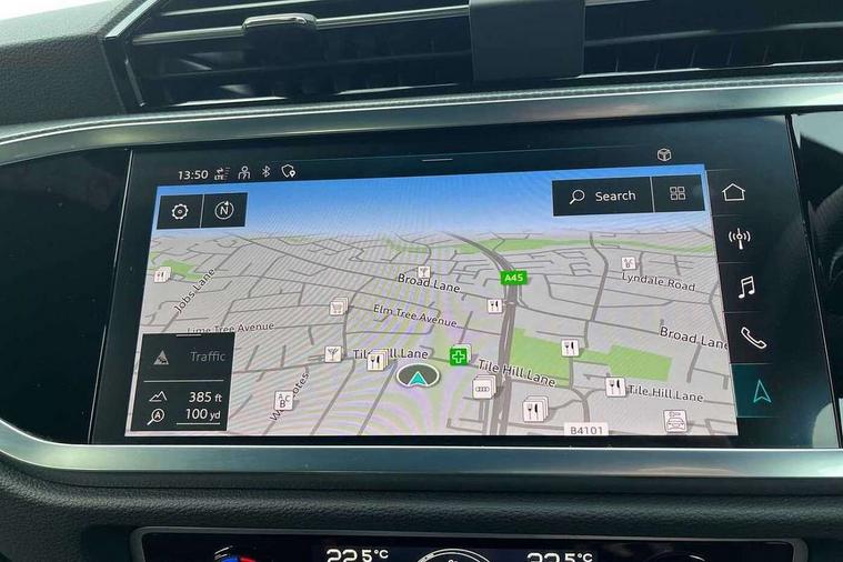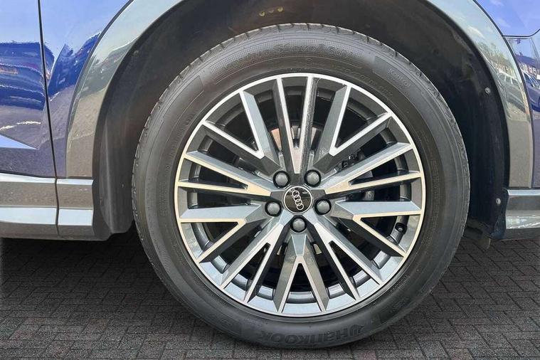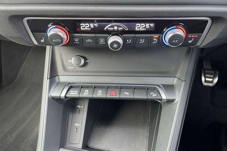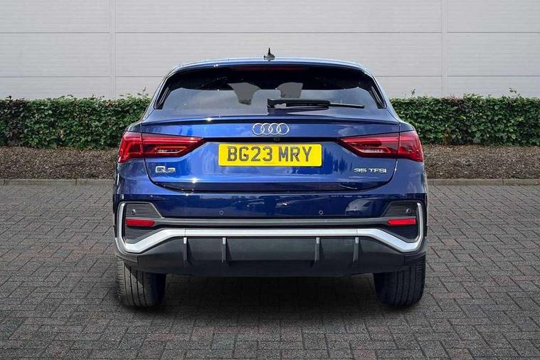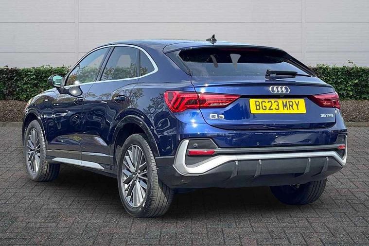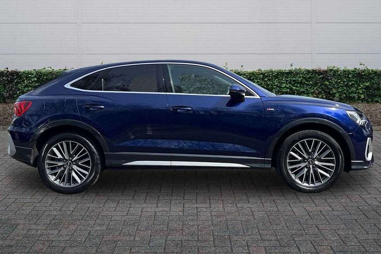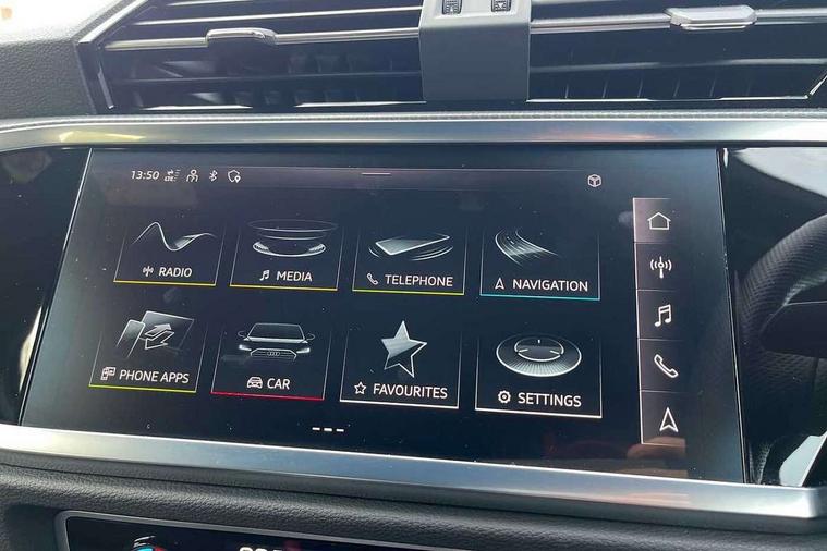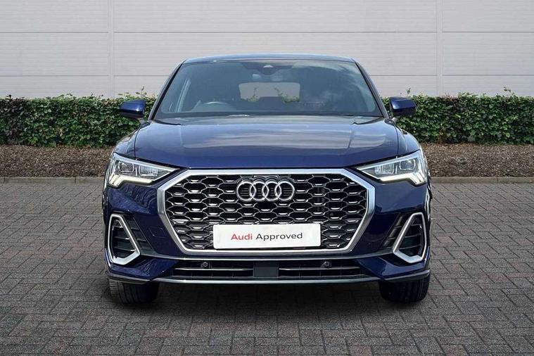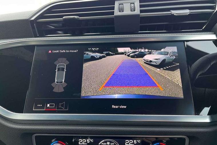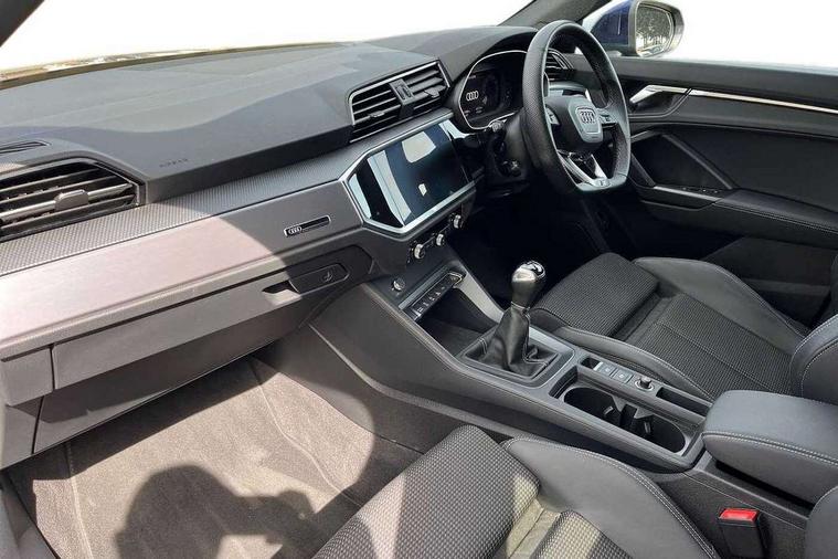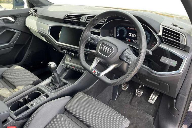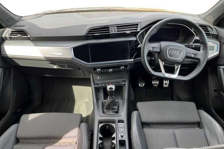 Audi drive select, Audi lane departure warning, Audi Virtual Cockpit - 10.25" display, Bluetooth interface, Camera based traffic sign recognition, Cruise control + speed limiter, Legal emergency call, MMI Navigation Plus with high resolution 10.1 inch touchscreen colour display, Power operated tailgate, Progressive steering, Rear parking sensors, Service interval indicator, Smartphone interface includes wireless Apple carplay/Android Auto, Start stop system with recuperation, Voice control system with natural language interaction, Sports suspension, 2 USB-C ports with charge and data functions, 6 passive loudspeakers, DAB digital radio module, Acoustic windscreen, Aluminium window trim, Auto dimming frameless rear view mirror, Diffuser grille in grained matt black, Diffuser trim in selenite silver, Electrically folding, adjustable and heated door mirrors with integrated LED side indicators and kerb view function for passenger side, Front and rear electric windows, Front fog lights, Front side air inlets in selenite silver, Front underbody protection in manhattan grey paint finish, Grille surround in aluminium silver matt, High gloss black finish B and C pillars, LED Dynamic rear indicators, LED headlights with LED daytime running lights, LED rear lights, LED third brake light, Privacy glass dark tinted rear and rear-side windows (from B-pillar backwards), Radiator grille in anthracite black with inlay in matt aluminium silver, Rain and light sensors, Rear side wing doors, Rear underbody protection in matt black, Rear wiper, S line badges on front wings, S line front and rear bumpers and side skirts in contrasting Manhattan grey paint finish, Side skirt insert in matt Platinium grey, Variable front intermittent wipers, 12V socket in rear centre console, 3 seat bench in 2nd row, 3 spoke leather multifunction steering wheel features S badging and grips in perforated leather with contrast stitching, 40:20:40 folding with manual adjustment for 60:40 forwards/backwards position and backrest angle, Adjustable rear seat bench/backrest with centre armrest and cupholder, Black cloth headlining, Dual zone electronic climate control, Front and rear black floor mats with contrast stitching, Front and rear headrests, Front and rear roof module including reading lights, Front centre armrest, Glove compartment lighting, Height and reach adjustable steering wheel, Illuminated door sill trims with S logo, ISOFIX child seat mounting for front passenger with airbag deactivation and outer rear seat including top tether attachment point for outer rear seats, Luggage compartment light right in white, Luggage compartment sill protection in stainless steel, Manual front seats with height adjustment, Perforated leather gearknob, Single front passenger seat, Stainless steel pedals, Ambient lighting pack - Q3, Non smoking pack - Q3, 3x3 point rear seatbelts, 6 airbags - Driver, front passenger, curtain and side windows, Audi pre-sense front with pedestrain and cyclist recognition, Electrically operated child locks on rear doors, Electromechanical parking brake, Electronic stabilisation control including ABS, ASR and EDL, Front seatbelt reminder, Hill descent control, Hill hold assist, Pre sense basic, Seatbelt monitoring, Tyre pressure warning, Warning triangle and first aid kit, Anti theft alarm, Anti theft wheel bolts, Immobiliser, Remote central locking, Aluminium look interior elements, Black dashboard, Dark matt brushed aluminium inlay, Detail dashboard around MMI touch colour display in glass look, black with surround in aluminium look, Leatherette door armrest,