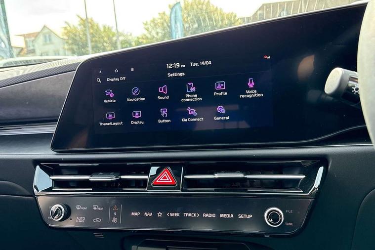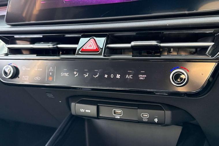 10.25" driver display screen, 10.25" touchscreen satellite navigation, Apple car play/Android Auto with voice control, Blind spot collision avoidance assist, Customisable Head Up Display, Drive mode select (Eco, normal, sport, snow), E-call, Emergency stop signalling system, Forward Collision-Avoidance Assist (FCA) 1.5 - City/Pedestrian/Cyclist/Junction turning, Front parking sensors, Highway Driving Assist (HDA), Intelligent speed limit assist, Kia Connect (UVO), Lane Following Assist (LFA), Lane keep assist, Motor driven power steering, Parking collision avoidance assist (PCA), Rear cross traffic collision avoidance assist (RCCA), Rear parking sensors, Remote smart parking assist, Reversing camera system, Safe exit warning (SEW), Smart cruise control with stop and go functionality, Smart power tailgate, Trip computer with distance/fuel consumption/average speed, Wireless Smartphone charger, 220v AC Inverter, 'Shark fin' mobile antenna, 6 speakers, Bluetooth with music streaming, DAB Digital radio, Steering wheel mounted controls, USB port for connection of a media device, Acoustic windshield, All round electric windows with drivers and front passenger auto up/down and safety function, Auto dimming rear view mirror, Automatic defog system, Automatic headlight control system, Black grille with chrome surround, Black window surrounds, Body colour bumpers, Body colour door mirrors, Body colour exterior door handles, Deluxe door scuff plates, Electrically adjustable and heated door mirrors with LED turn indicator, Electrically folding door mirrors, Front and rear chrome skid plates, Front fog lights, Gloss black wheel arches, Heated rear window, LED daytime running lights, LED Headlights, LED High mounted brake light, LED rear combination lights, Privacy glass - Rear windows and tailgate, Rain sensing front wipers, Rear fog lights, Rear roof spoiler, Rear side wing doors, Rear wiper, Roof rails, Solar glass windscreen, Sunroof with tilting and sliding function, Welcome and follow-me home light functionality, Windscreen Washer Level Warning, 12V socket in front, 12V socket in luggage compartment, 3 seat bench in 2nd row, 60:40 split remote folding rear seats, All-round height adjustable headrests, Alloy pedals, Artificial leather centre console storage box, Artificial leather steering wheel, Artificial leather upholstery, Automatic air conditioning, Centre console cupholder, Chrome coating interior door handles, Driver power adjusted memory seat, Driver/passenger sunvisors with illuminated vanity mirrors, Drivers seat power lumbar support, Front and rear door storage, Front passenger 1 x USB-C charging port, Front passenger power adjusted seat, Front passenger relaxation seat, Glove box, Heated front seats, Heated outer rear seats, Heated steering wheel, ISOFIX Child seat top tethers and anchor fixings, LED Front cabin, rear & luggage compartment lights, Luggage area load cover, Luggage board, Manually adjustable steering column, Paddle shifts, Power adjustable lumbar support on front passenger seat, Rear centre armrest with cupholder, Rear passenger 2 x USB-C charging ports, Seatback pocket - driver, Seatback pocket - front passenger, Shift by wire SBW, Single front passenger seat, Ventilated front seats, Ventiliation ducts to rear compartment, 3 point seatbelts on all seats, ABS, Automatic unlocking of doors in case of impact, Curtain and side airbags, Dual shell horn, Electric parking brake with auto hold function, Electronic stability control, Front airbags, Front passenger airbag cut-off switch, Height adjustable front seatbelts, Hill start assist control (HAC), Knee airbags, Seatbelt reminder warning, Traction control, Tyre pressure monitoring system, Customisable automatic door locking, Customisable automatic door unlocking, Deadlocks, Engine Start/Stop Button with Smart Entry System, Locking wheel nuts, Manual child locks, Rear occupant alert, Smart key with motion sensor, Thatcham category 2 security alarm and immobiliser, Visible vehicle identification number, Warranty - 7 Years/ 100, 000 miles, Centre fascia chopped carbon, 18" Alloy wheels, Tyre mobility kit,