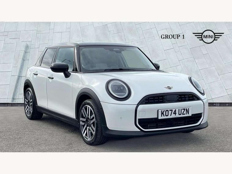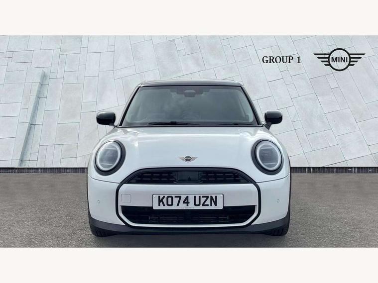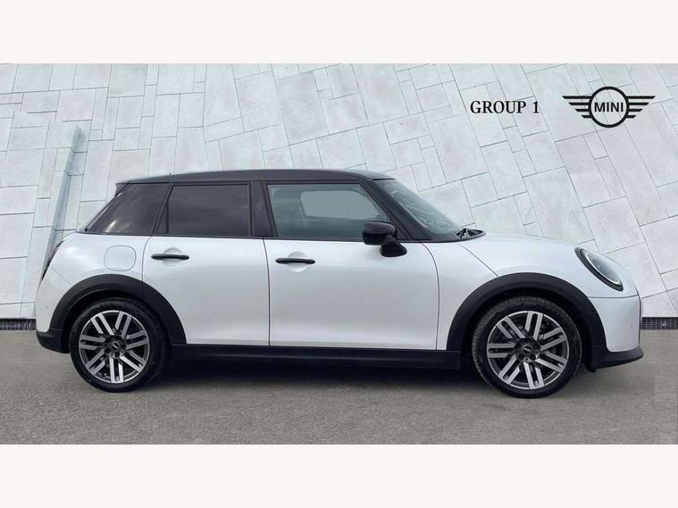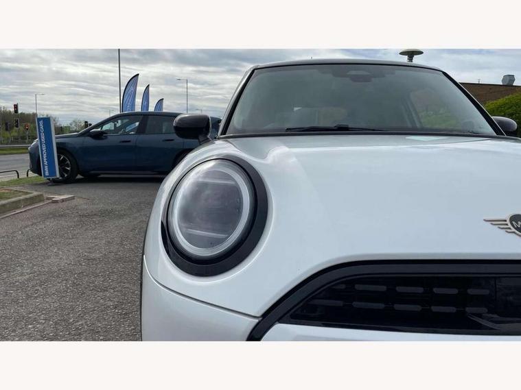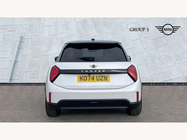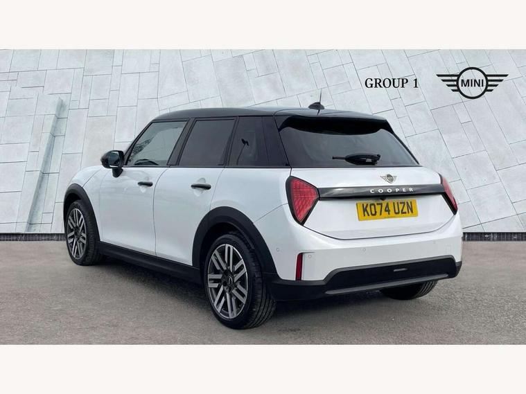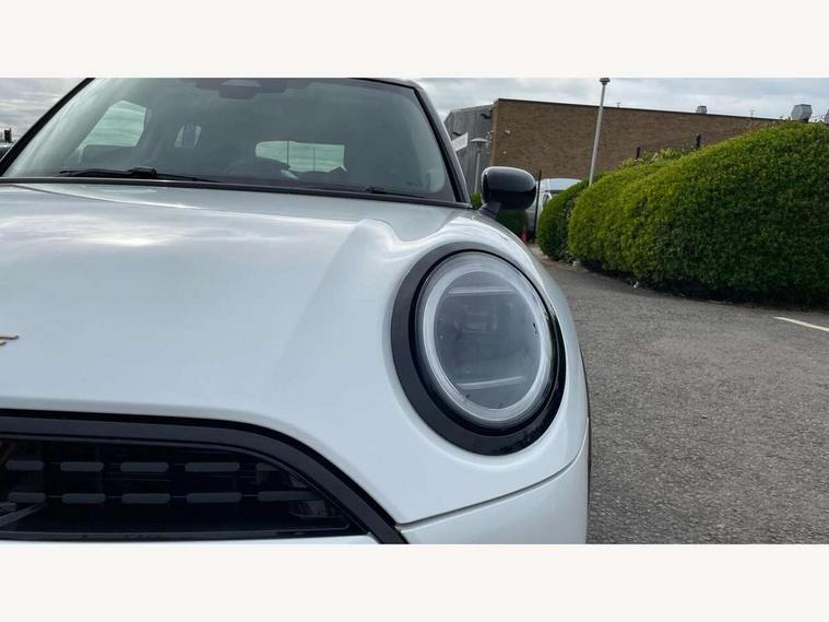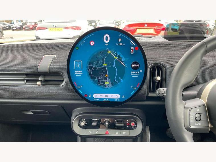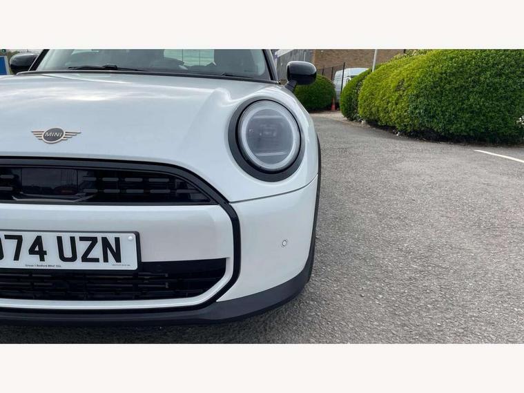 Central toggle bar, Circular OLED Screen, Compatible mobile phone bluetooth with audio streaming, Cruise control, Digital instrument cluster, Electro-mechanical speed dependant steering assistance, Emergency call service, MINI Experience Modes, Mini navigation system, On board computer, Service interval indicator, Tailgate, 7 speed steptronic transmission with double clutch, DAB Digital radio, Personal eSim, Auto headlights, Electric adjustable heated door mirrors, Electric front+rear windows, Heated rear window, Heated windscreen washer jets, LED 3rd brake light, LED daytime running lights, LED Headlights, LED indicator lights, LED rear lights, Rain sensor window wipers, Rear fog lights, Rear side wing doors, Rear window wiper, 2 zone automatic air conditioning, 3 seat bench in 2nd row, 60/40 rear seat bench, Ambient lighting, Cupholders, Front and rear floor mats, Front and rear head restraints, Front compact armrest, Heated steering wheel, Height adjustable passenger seat, Light headliner, Luggage compartment lighting, Single front passenger seat, Sport Vescin Steering Wheel black with vibrant silver accents, Sunvisors with vanity mirrors, Vescin/Cloth upholstery includes dash knit in black with blue accents, Driving assistant pack - Cooper Hatchback, Park assistant pack - Cooper Hatchback, 3 point seatbelts on all five seats, 6 Airbags - front, side, head and seat belt tensioners, Anti-lock braking system (ABS), Child locks on rear doors, DSC - Dynamic Stability Control, Electronic parking brake, Front and rear disc brakes, Front ISOFIX (iSize), Front passenger airbag deactivation, Traction control, Tyre pressure monitoring system, Alarm, Immobiliser, Remote central locking, Tyre repair kit,