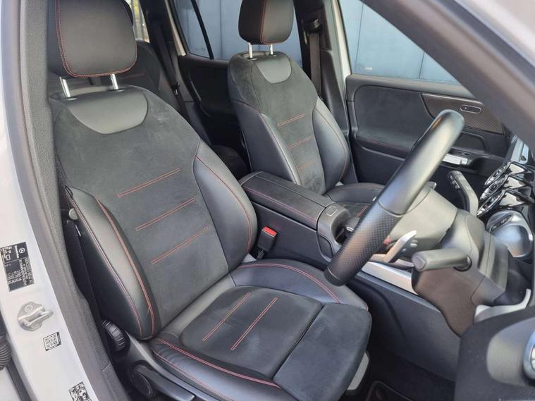 10.25" Digital instrument cluster display screen, 10.25" Digital media screen display, Active lane keeping assist, Attention assist - Monitors steering behaviour and long journey fatigue, Brake pad wear indicator warning light, Car wash mode, Cruise control with limiter, DYNAMIC SELECT with a choice of driving modes (ECO, Comfort, Sport and Individual), ECO start/stop function, Fluid level warning indicator for fuel, oil, coolant and washer fluid, Hard disk navigation, Hey Mercedes Voice activation, Lamp failure indicator, Mercedes me connect including emergency call system, accident recovery, breakdown and maintenance management, Mercedes me remote services, Outside temperature gauge, Owners manual and service booklet in English, Parameter steering system, Pre-installation of private car share, Preinstallation for parking damage notification, Radio aerial integrated into front and rear windshields, Service indicator (ASSYST), Smartphone integration with Apple CarPlay and Android auto, Speed limit assist, Traffic sign assist, Trip computer in multifunction display with current consumption indicator, Comfort suspension, Rear axle multi-link, DAB digital radio tuner, MBUX multimedia system with DAB digital radio and touchpad including satellite navigation, Mercedes Benz sound system (225 W) with 10 speakers, 1 central speaker, speakers on doors, a tweeter on door, one sub woofer + boost amplifier, Pre installation for Mercedes Benz Link, USB (type C) port in front stowage compartment, USB (type C) ports (2) in stowage compartment, Adaptive brake lights, Aerial for GPS, AMG bodystyling door panels black grained with chrome plated inserts, AMG bodystyling front apron with chrome splitter, AMG bodystyling rear apron with diffuser optics and chrome trim element, AMG specific front and rear bumper including underride guard in high gloss chrome, Auto headlights, Beltline strips and weather strip in chrome, Black door mirrors, Black roof rails, Body coloured bumpers, Body coloured door handles with chrome insert for keyless entry, Electric adjustable and heated door mirrors with integrated LED side indicators, Electric panoramic glass sunroof, Exhaust system with dual flow exhaust pipes (non-functional), Front and rear electric windows, Headlamp assist automatic headlamp activation, Heated glass rear windscreen + timer control, High level LED third brake light, Interior mirror with black reading lamps and frameless, LED daytime running lights, Multibeam LED headlamps and tail lamp with adaptive high beam assist, Privacy glass with dark tinting on rear side windows and rear window, Radiator grille with pins in chrome and single louvre with chrome insert, Rain sensor windscreen wipers, Rear fog lamp, Rear side wing doors, Rear wiper, Two visible tailpipe trim elements exhaust, 3 seat bench in 2nd row, 3 spoke multifunction sport steering wheel in nappa leather, Air conditioning - Two zone thermotronic luxury automatic climate control with display, AMG sports pedals with brushed stainless steel surfaces and black rubber studs, Artico man-made leather/Microcut microfibre upholstery with red contrast stitching, Automatic child seat recognition sensor, Black floor mats with AMG lettering, Black roof lining, Electrically adjustable front memory seats including lumbar support, Fore/aft adjustment rear seats, Freight packaging with tie-down hooks, Front centre armrest with stowage, Front door sills with illuminated changeable cover, Front passenger grab handle with brushed side silver chrome, Front sports seats with adjustable head restraints, Galvanished gear shift paddles on steering wheel, Heated front seats, Height/reach adjustable steering column, Interior lighting - 64 colour Ambient lighting, Luggage net on driver/front passenger seat backrest, Net in front passenger footwell, Rear armrest with two integral cup holders for drinks, Rear seat easy entry, Single front passenger seat, Stowage compartment in centre console, Stowage compartment with retractable cover, Third row of seats for two people on rear seat, Touchpad on center console, Twin front cup holders, Two outer rear seat isofix and top tether child seat fixing points, Interior lighting with light and sight pack - GLB, Keyless go comfort pack - GLB with easy pack tailgate, Memory package - GLB, Mirror pack - GLB, Parking pack - GLB, 3 rear 3 point seatbelts, Active bonnet pedestrain safety measure which detects an impact and raises bonnet by 65mm, Active brake assist includes forward collision warning system with autonomous braking, Adaptive brake assist with hold function and hill start assist, Airbags - kneebag for driver, Anti-lock braking system (ABS) with brake assist, Childproof locks manually operated for rear doors and electrically operated for rear power windows, Crash responsive emergency lighting, Curve dynamic assist, Driver and front passenger head and sidebags, Driver and front passenger windowbags, Dual stage driver and front passenger airbags, Electronic parking brake, Electronic stability programme with acceleration skid control, Front and rear seatbelt reminder, Front brake callipers with Mercedes Benz lettering, Front passenger seat occupancy sensor, Tyre pressure monitoring system, Warning triangle and first aid kit, Guard 360 degree vehicle protection - Anti theft alarm system, tow away protection with visual, acoustic warning and alarm, Interior monitoring system, KEYLESS-GO Spanner communicates with the vehicle within two metres of the door, Remote central locking and crash sensor with emergency opening function, Thatcham category 1 alarm system with immobiliser and interior protection, Vehicle key with decorative surround in chrome, Black air vents with chrome surround, Carbon structure trim, 20" AMG multi spoke light alloy wheels painted in high gloss black with high sheen rim flange, Summer tyres, Tirefit tyre sealant kit,