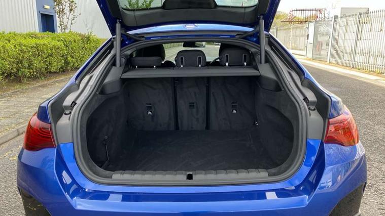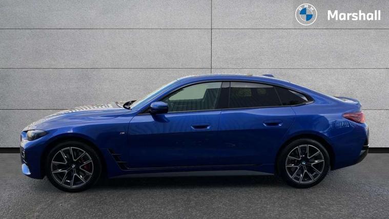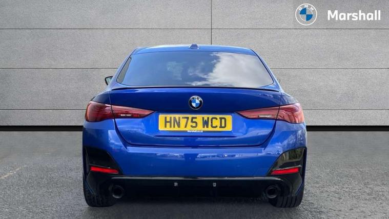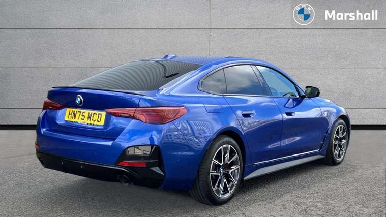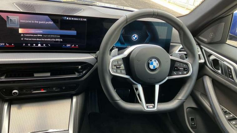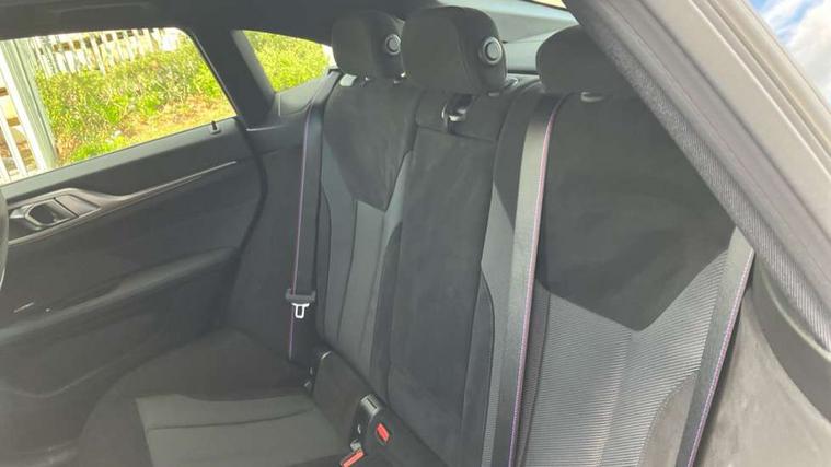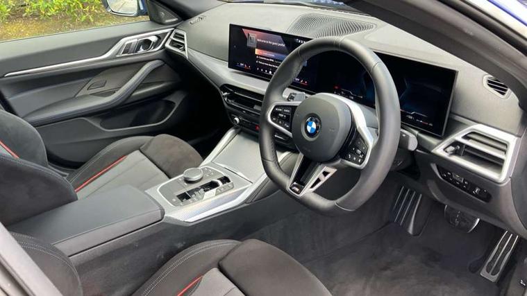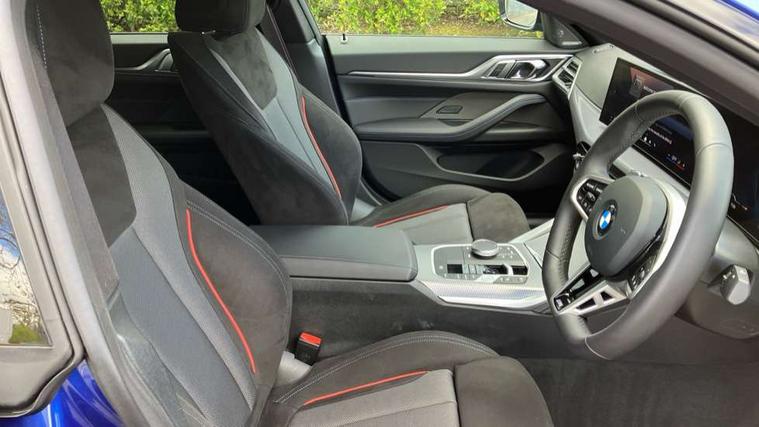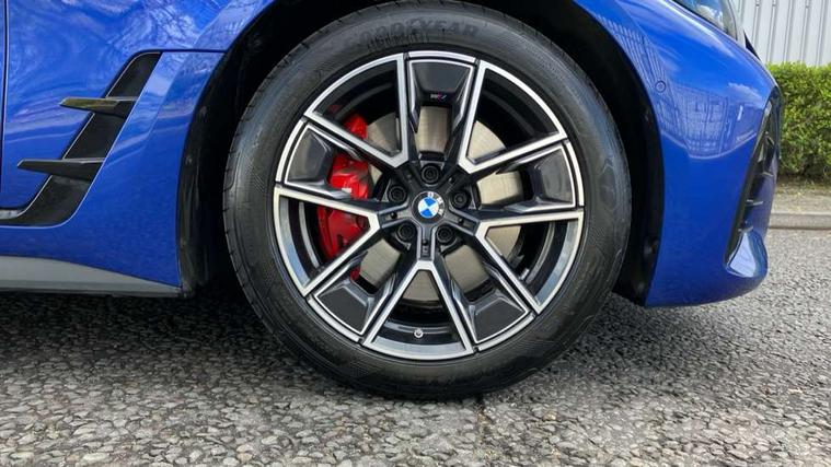 Active guard plus, Attentiveness assist, Automatic start/stop function, BMW ConnectedDrive online services, BMW iDrive controller on centre console, BMW service history, BMW Teleservices, Brake pad wear indicator in front and rear, Check Control warning system for monitoring of lights and door/luggage compartment open warning, Condition based service, Electric bootlid, Electric power steering with Servotronic steering optimised at all speed ranges, Instrument cluster with speedometer with mph readout, tachometer, fuel gauge and oil temperature gauge, Integrated owners handbook, Language version English, Oil sensor for level and grade, On board computer - average speed, fuel consumption, outside temp display with acoustic warning, clock/date, service interval, odometer/trip meter, Run flat indicator, Shifting point display, Start/stop button in black, Variable sport steering, 8 speed automatic steptronic transmission with gearshift paddles, Balanced 50/50 weight distribution, Double joint spring strut front axle, Drive experience mode switch - Comfort mode, ECO PRO mode and SPORT mode, Electronic differential lock control (EDLC), Low centre of gravity, Petrol Particulate Filter, Stroke dependent dampers, DAB tuner, Personal eSim, Acoustic glazing, Automatic headlight beam throw control with load dependent regulating reaction, dynamic compensation of braking dive and acceleration squat, Automatic windscreen wipers and automatic headlight, BMW radiator grille with mesh grille, end face of the nuggets in aluminium matt and frame in chrome matt, Body colour fuel filler flap, Body colour roof fin, Bonnet and tailgate badge, Electric folding wing mirrors - Driver side electrochromic, auto anti dazzle function & front passenger side auto parking function without anti dazzle, Electric windows - front and rear, with open/close fingertip control, anti trap facility and comfort closing function all round, Follow me home headlights, Front and rear bumper system, Front apron plastic in body colour, Green tinted heat protection glazing, Illuminated bow type door handles in body colour drivers side with door lock, Interior rear view electrochromatic mirror with automatic anti dazzle function, LED 3rd brake light, LED daytime running lights, LED front fog lights, LED front indicators, Licence plate panel integrated into front bumper and tailgate, Low and high beam headlights in Bi-LED, M designation on front side panels, left and right, M Sport entry door sill strips, One piece front bumper cover including towing eye cover in body colour, Preparation for high beam assistant, Rear side wing doors, Rear wiper, Reversing light, Side frame trim strip black matt, Two part LED tailights in L-shape with components in smoked glass, brake light, LED turn indicator and rear fog light, Visible exhaust tailpipe finisher, Visible VIN plate, Welcome lights in interior and door handle area, Widened track and increased camber values for max transverse dynamics, agility and steering precision, Windscreen washer jets concealed underneath bonnet, 12V power socket in front centre console, 2 front cupholder in centre console with clamping elements and matt black inlay, 3 rear headrests, 3 seat bench in 2nd row, 3 spoke flat bottom M sport leather multifunction steering wheel, 3 zone automatic air conditioning, 4 pieces lashing eyelets in luggage compartment, 40:20:40 split folding rear seat, folding head restraint of centre seat and rear centre armrest with two cupholders, Anthracite headlining, Armrest integrated in front and rear door trim + front centre console armrest, Battery in luggage compartment, BMW ID, Extended storage - 2x Dual USB Type C 3A charging function in the rear centre console for the rear, Extended storage - Luggage compartment partition net on left side trim panel, Bag hook on both sides of the luggage compartment, Extended storage - Multifunction hook, Extended storage - Trailer tow hitch button in black (extendable trailer tow hitch) on the right hand side, Four grab handles integrated in roof lining, Front and rear door pockets, Front footwell lights, Heated driver and front passenger seats, Height adjustable front headrests, Illuminated armrest storage compartment, Illuminated glove compartment with separate small compartment, Interior light and front reading light, Luggage compartment light, Single front passenger seat, Steering column adjustment - Infinitely variable in height and length, Sunvisors with illuminated vanity mirrors and ticket pocket, Through load system, Toolkit located in luggage compartment, Velour front floor mats, Ambient lighting pack - 4 Series, BMW Live Cockpit Plus pack - 4 Series, Connected professional package - 4 Series, M High gloss shadowline exterior trim pack - 4 Series, M sport exterior styling pack - 4 Series, Park assist pack - 4 Series, 3 point seatbelts on all seats, BMW emergency call, Brake energy regeneration, Braking pre-tensioning, Child locks, Child seat ISOFIX attachment for the two outer rear seats, Crash sensor activating of airbags, Unlocking doors, hazard warning lights, interior light, safety battery terminal, Driver and front passenger side airbags, integrated in the door side seat backrest bolsters for all seat variants, Driver/Front Passenger airbags, Dry braking, Dynamic brake control, Dynamic stability control + (DSC+) - Anti-lock Braking System (ABS) with brake assist and cornering brake control + Automatic Stability Control (ASC), Dynamic Traction Control - DTC, Electric parking brake including automatic hold function and automatic release of the parking brake when driving off, Front and rear ventilated brake disc, Front passenger manual airbag deactivation, Head airbags for all 4 outer seats, Hill start assistant, Seat belt security check for driver and front passenger, Seat belt with belt stopper, pyrotechnic belt tensioners and belt force limiters, Seat occupancy detection for driver and passenger side, Side impact protection, Tyre pressure 