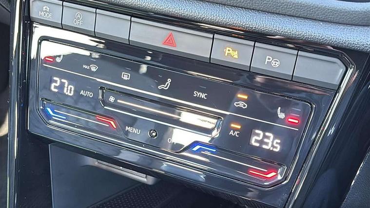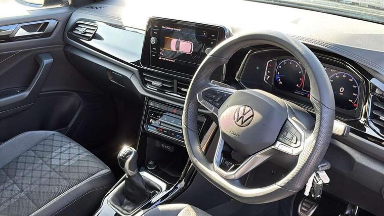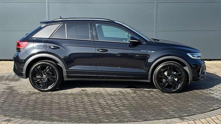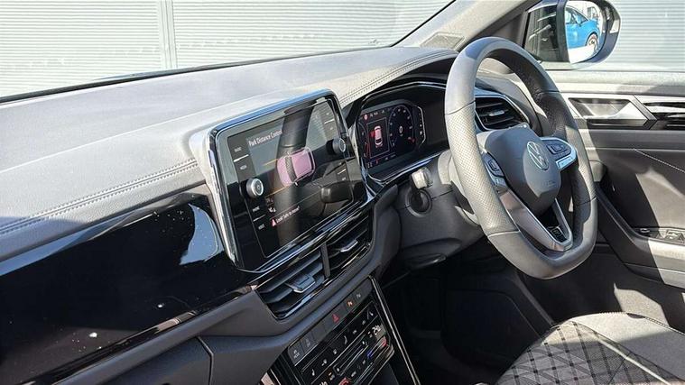10.25" Digital cockpit pro, Advanced driver attention and drowsiness monitor, Emergency call service, Lane keeping system Lane Assist, Mobile phone interface, Modified key software - reduce switch off time for key status change to Long no motion, Online services, Park assist including front and rear parking sensors, Power assisted speed sensitive steering, Service interval indicator, Tailgate/trunk lid release from outside, Think blue trainer driver tips and journey analysis, Warning sound and light for front seatbelts unfastened, Wireless app connect, Battery regeneration during braking, Rear shock absorption chassis with increased ride height, Start/stop function with battery regeneration, DAB Digital radio, Diversity antenna for FM reception, Front and rear 6 speakers, Music playback - MP3, WMA and AAC files, Premium USB cable in choice of either Apple or Android smartphone compatibility, SD card slot, Simultaneous pairing of 2 compatible mobile devices, Title and cover art display, We Connect and We Connect Plus functionality, Auto dimming interior rear view mirror, Automatic hazard lights activation under emergency braking, Automatic headlight control with LED separate daytime running lights with coming/leaving home function, Dynamic cornering light, Electrically adjustable and heated door mirrors, Extended roof spoiler, Exterior mirrors aspherical on driver side, convex on front passenger side, External USB type C socket and charging sockets, Front windscreen wiper with intermittent wipe and 4 position delay, Heated rear window, Illuminated front grille, IQ LED matrix headlights, LED 3rd brake light, LED rear number plate lights, LED rear tail lights with dynamic turn signal, Light mode for poor weather, rain, fog or snow, Power windows with comfort operation and circuit breaker, R-Line design body coloured bumpers, Rain sensor, Rear exhaust tailpipe, Rear fog light on one side and reversing lights on both sides, Rear side wing doors, Rear wash/wipe with intermittent wipe setting, Remote electrically foldable door mirrors, puddle lights and reverse activated passenger's door mirror, 12V power socket in centre console, 3 rear head restraints, 3 seat bench in 2nd row, 4 load lashing points in luggage compartment, Air care climatronic air conditoning system with active combination filter and 2-zone temperature control, Artvelours cloth upholstery, Black roof lining, Chrome plated radiator grille inserts, air vent surrounds and light switch surrounds, Door and side trim panel with leatherette insert, Drawer under drivers seat, Driver seat height adjust, Driver's seat lumbar support, Front + rear carpet mats, Front centre armrest, Front comfort sports seats, Front cupholders x 2, Front footwell illumination, Front reading light, Front scuff plates with R Line logo, Front seat back storage pockets, Glove compartment door with light, Instrument lighting, white adjustable panel illumination, Interior ambient lighting and surround lighting, Interior light delay, Isofix child seat preparation, Leather gearshift handle, Load-through provision with cup holder when folded down ('Unsplit rear seat bench, split folding backrest, with centre armrest), Luggage compartment lighting, Non-folding front passenger seat backrest, Passenger seat height adjuster, Passenger seat lumbar support, Single front passenger seat, Stainless steel pedals, Storage compartment in left and right luggage area, Storage compartment in rear doors, Storage compartments in driver and front passenger doors, Sunvisors with illuminated vanity mirrors, Variable boot floor, height adjustable and removable, Winter pack without heated windscreen washer jets - T-Roc, 3 point height adj front seatbelts + pretensioners, 3 point seatbelts in outer rear with ECE label, ABS, Child locks on rear doors, City emergency braking and pedestrian monitoring, Driver and front passenger airbag with front passenger airbag deactivation, Driver and front passenger safety-optimised head restraints, Drivers seatbelt reminder, Electronic parking brake, Electronic Stability Control (ESC) inc EDL (Electronic Differential Lock) and ASR (Traction Control), Front and rear passengers curtain airbag system including front side airbags, Front disc brakes, Hill start assist, Predictive pedestrian protection, Rear disc brakes, Two tone horn, Tyre pressure loss indicator, Volkswagen roadside assistance, Tool kit, Trims for alloy wheels, Tyre mobility kit including compressor and sealing foam,