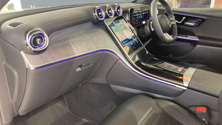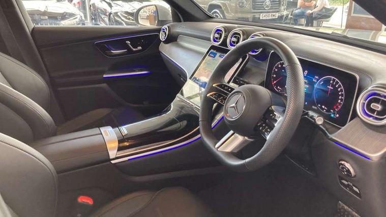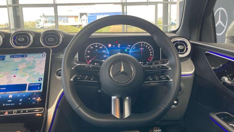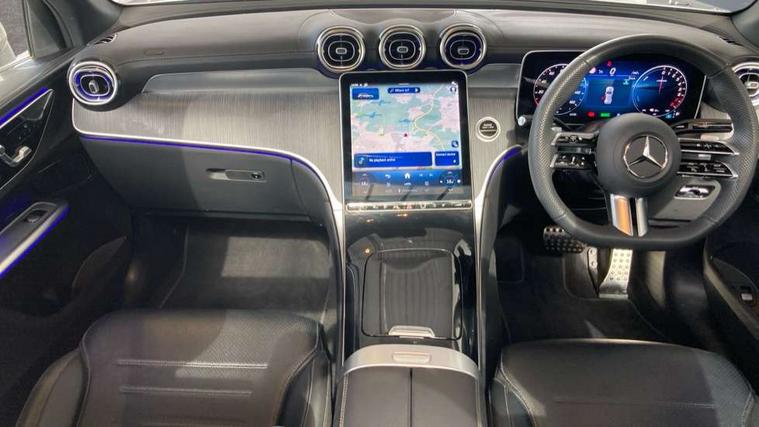 11.9" high resolution multimedia colour display, 12.3" Digital individually configurable instrument display, Acoustic presence indicator, Active lane keeping assist, Attention assist, Blind spot assist, Bluetooth interface for hands free telephone, Collision prevention assist plus, Cruise control with speedtronic variable speed limiter, Dashcam - front camera for video recording, Direct steer speed sensitive steering, DYNAMIC SELECT with a choice of driving modes (ECO, Comfort, Sport, Sport+ and Individual), eCall emergency call system, ECO start/stop function, Fingerprint scanner, Fluorescent jacket for driver, Hard disc navigation, Instrument display in miles with English lettering, MBUX augmented reality for navigation, MBUX navigation premium, MBUX voice control activated by keywords "Hey Mercedes", Mercedes me connect, Outside temperature display, Remote and charging services plus, Remote boot release, Road sign recognition system, Service indicator (ASSYST), Smartphone integration, Status display for rear seat belts in instrument cluster, Traffic sign assist, Trip computer, Wireless charging, 1 x type 2 and 3 phase 4m straight wallbox cable, 49 litre fuel tank, 4MATIC permanent four wheel drive, 7.4 kW monophase on board charger, 9G TRONIC plus automatic transmission, Alternating current charging system (AC charging), Comfort suspension, Petrol Particulate Filter (PPF), Self levelling suspension, DAB digital radio tuner, MBUX extended functions, Mercedes benz sound system, Pre installation for Mercedes Benz Link, Adaptive brake lights, Adaptive high beam assist plus, Aluminium look running boards with rubber studs, Aluminium roof rails, AMG bodystyling front apron, rear apron and side skirts, AMG Line exterior, Auto headlights, Body colour bumpers, Body colour door mirrors, Digital light LED headlights, Electrically adjustable door mirrors, Front and rear electric windows, Headlight washers, Heat insulating dark tinted glass, Heated rear window, High level LED brake light, Integrated LED daytime running lights, LED indicator lights, LED rear fog lights, LED tail lamp, Motor way mode function and locator lighting, Noise acoustic glass, Radiator grille with Mercedes Benz pattern and integreated Mercedes star and louvre in dark grey matt with chrome inlay and black frame, Rain sensor windscreen wipers, Range adjustable headlights, Rear side wing doors, Rear wiper, Transparent Bonnet, Two chrome plated tailpipe trim elements, Variable front intermittent wipers, Welcome and follow-me home light functionality, Wider wheel arch for AMG wheels, 3 seat bench in 2nd row, 40:20:40 split folding rear seats, Ambient lighting premium, AMG line interior, Artico man-made leather upholstery, Audio and onboard settings control on multifunction steering wheel, Automatic child seat recognition sensor, Black fabric roof lining, Black floor mats with AMG lettering, Double cup holder in centre console, Easy-pack removable load compartment cover, Electrically height/reach adjustable steering column, Front centre armrest with stowage compartment, Front head restraints, Galvanised steering wheel gearshift paddles, Heated front seats, Illuminated door sill panels with Mercedes Benz lettering, Illuminated glove compartment, Instrument panel and beltlines in ARTICO manmade leather in nappa look, Multifunction sports steering wheel in nappa leather, Rear centre headrest, Rear head restraints, Rear top tether child seat ISOFIX attachment, Single front passenger seat, Sports pedals with stainless steel surfaces and rubber studs, Sports seats, Sun visors, THERMATIC 2 zone automatic climate control, Anti theft protection package - GLC, Boot comfort package - GLC, Exterior chrome package - GLC, Interior chrome package - GLC, Interior lighting pack - GLC, Keyless-Go comfort package - GLC, Memory pack - GLC, Mirror pack - GLC, Parking package with 360 degree camera - GLC, Seat comfort package - GLC, Stowage space package - GLC 300e/300de, USB Plus Pack - GLC, 3 rear 3 point seatbelts, Active braking assist, Anti-lock braking system (ABS), ASR traction control, Automatic front passenger airbag deactivation, Black seat belts, Brake calipers with Mercedes-Benz lettering + perforated brake discs, Child proof door locks, Dual-stage airbags - driver and front passenger, driver knee bag and window bags for driver, front passenger and rear passengers, Electronic parking brake, Electronic stability programme (ESP) with curve dynamic assist and cross wind assist, Front and rear seatbelt reminder, Front passenger seat occupancy sensor, Front seatbelt pretensioners, Hill start assist, Tyre pressure monitoring system, Warning triangle and first aid kit, Automatic door locking, Guard 360 degree vehicle protection plus, Interior protection/immobiliser, Remote central locking, Centre console in metal structure finish, Metal structure trim, 20" AMG 5 spoke aerodynamically optimised light alloy wheels in painted black with high sheen finish, Summer tyres, TIREFIT with tyre inflation compressor,