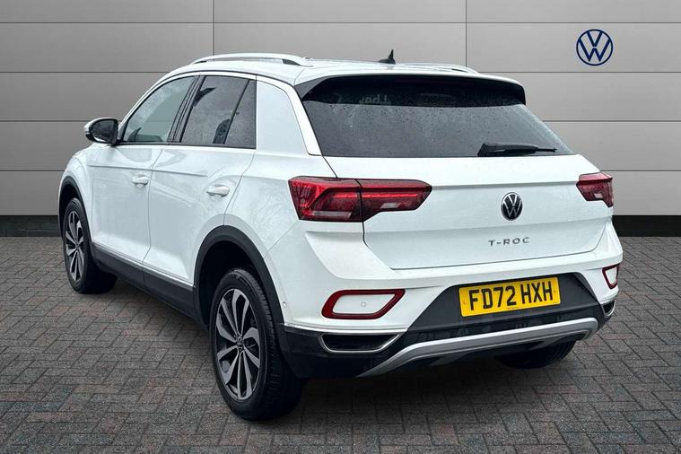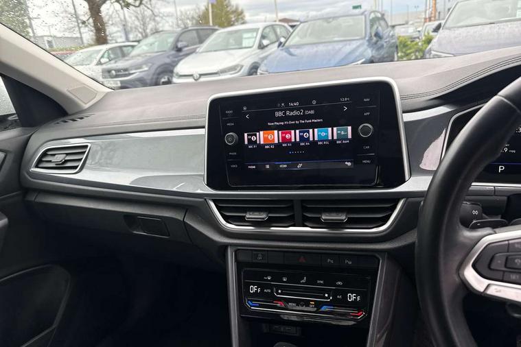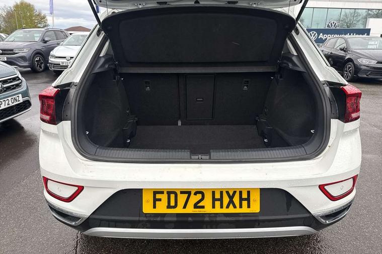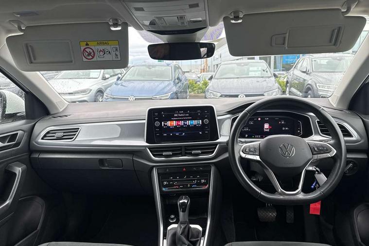 10.25" Digital cockpit pro, Bluetooth mobile phone interface, Driver alert system with fatigue detection, Driver tips and journey analysis, Emergency call service, Lane keeping system Lane Assist, Modified key software - reduce switch off time for key status change to Long no motion, Online services, Park assist including front and rear parking sensors, Service interval indicator, Tailgate/trunk lid release from outside, Think blue trainer driver tips and journey analysis, Warning sound and light for front seatbelts unfastened, Wireless app connect, Battery regeneration during braking, Start/stop function with battery regeneration, Diversity antenna for FM reception, Front and rear 6 speakers, Music playback - MP3, WMA and AAC files, Premium USB cable in choice of either Apple or Android smartphone compatibility, SD card slot, Simultaneous pairing of 2 compatible mobile devices, Title and cover art display, We Connect and We Connect Plus functionality, 3rd brake light, Auto dimming interior rear view mirror, Automatic hazard lights activation under emergency braking, Automatic headlight control with LED separate daytime running lights with coming/leaving home function, Body colour sports bumpers with silver metallic underbody fascia, Dynamic headlight range control with self adjusting whilst driving, Extended roof spoiler, Exterior mirrors aspherical on driver side, convex on front passenger side, External USB type C socket and charging sockets, Front windscreen wiper with intermittent wipe and 4 position delay, Heated rear window, LED Plus headlamps, LED rear combination lamps, LED rear number plate lights, LED tail lamp rear comination lamps, Light mode for poor weather, rain, fog or snow, Power windows with comfort operation and circuit breaker, Rain sensor, Rear exhaust tailpipe, Rear fog light on one side and reversing lights on both sides, Rear side wing doors, Rear wash/wipe with intermittent wipe setting, Remote electrically foldable door mirrors, puddle lights and reverse activated passenger's door mirror, 12V power socket in centre console, 3 rear head restraints, 3 seat bench in 2nd row, 4 load lashing points in luggage compartment, Air care climatronic air conditoning system with active combination filter and 2-zone temperature control, Chrome plated radiator grille inserts, air vent surrounds and light switch surrounds, Door and side trim panel with leatherette insert, Drawer under drivers seat, Front + rear carpet mats, Front centre armrest, Front comfort sports seats, Front cupholders x 2, Front footwell illumination, Instrument lighting, white adjustable panel illumination, Interior ambient lighting and surround lighting, Interior light delay, Isofix child seat preparation, Leather gearshift handle, LED interior light with switch off delay/dimmer and 2 front/rear LED reading lights, Load-through provision with cup holder when folded down ('Unsplit rear seat bench, split folding backrest, with centre armrest), Luggage compartment lighting, Non-folding front passenger seat backrest, Single front passenger seat, Storage compartment in left and right luggage area, Storage compartment in rear doors, Storage compartments in driver and front passenger doors, Sunvisors with illuminated vanity mirrors, Variable boot floor, height adjustable and removable, Driver assistance pack without proactive passenger protection - T-Roc, 3 point height adj front seatbelts + pretensioners, 3 point seatbelts in outer rear with ECE label, ABS, Child locks on rear doors, Driver and front passenger airbag with front passenger airbag deactivation, Driver and front passenger safety-optimised head restraints, Drivers seatbelt reminder, Electronic parking brake, Electronic Stability Control (ESC) inc EDL (Electronic Differential Lock) and ASR (Traction Control), Front and rear passengers curtain airbag system including front side airbags, Front assist with city emergency braking and pedestrian monitoring, Front seat side impact airbags, Predictive pedestrian protection, Rear disc brakes, Single tone horn, Tyre pressure loss indicator, Volkswagen roadside assistance, Alarm with interior protection, Anti-theft alarm system with interior monitoring, backup horn, and towing protection, Remote central locking with SAFELOCK, radio remote control with 2 remote control folding keys, Trims for alloy wheels,