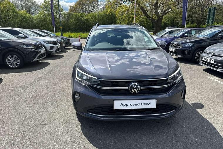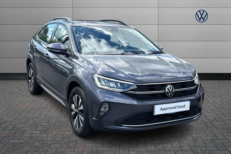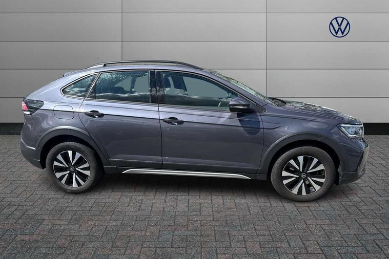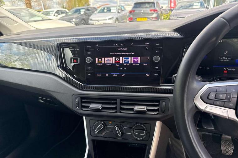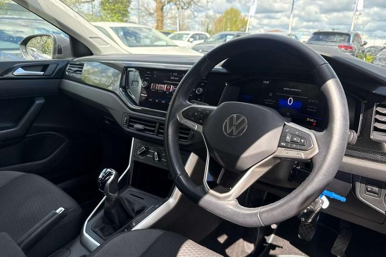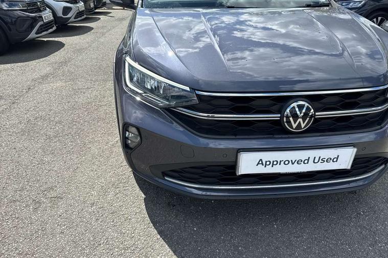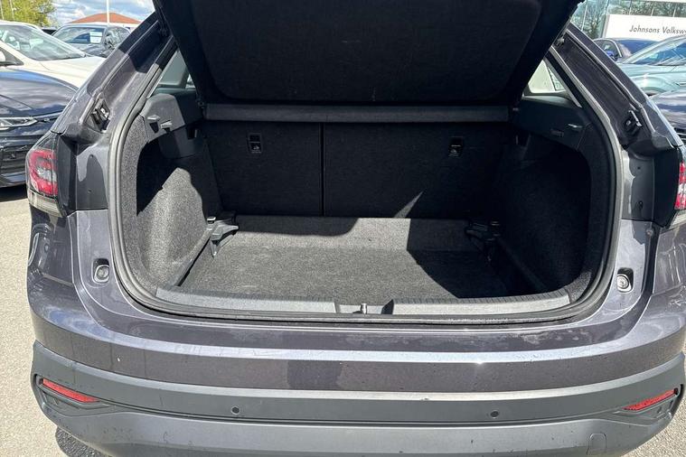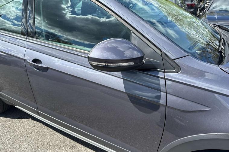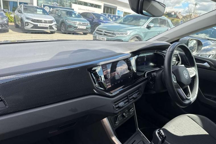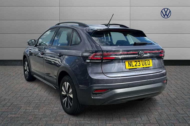Driver alert system, e-Call (emergency call), Power Steering, Travel assist including emergency assist, Washer fluid level indicator, Wireless Charging including Bluetooth, Start-stop system with battery regeneration (recuperation - energy recovery during braking), WeConnect plus, Ambient lighting with logo projection, Aspherical driver's exterior mirror, Auto headlights, Body coloured bumpers, Body coloured exterior mirror housings and door handles, Electric windows, External USB type C socket and charging sockets, Front fog lamps with cornering function, Headlight range control, Heat insulating glass windscreen, LED headlamps, LED rear combination lamp, LED third brake light, Left convex exterior mirror, Power folding adjustable/heated exterior mirrors and front passenger exterior mirror lowering function, Rear fog light on one side, reversing light on both sides, Rear side wing doors, Rear wash/wipe with intermittent wipe setting, 'Slash/ Austin' Cloth upholstery, 12V socket in centre console, 2 front reading lights, 3 rear head restraints, 3 seat bench in 2nd row, Black carpets, Child seat anchor for child seat system i-Size, 2x top tether and child seat anchor in front on front passenger side, Door and side trim panels in titan black, Driver and front passenger seat height adjustment, Front centre armrest, Handbrake lever handle in leather, Height and reach adjustable steering wheel, Leather trimmed gear knob, Leather wrapped multifunction steering wheel, Luggage compartment floor, Luggage compartment light, Lumbar support for driver's and front passengers seat, Seat covers in titanium black, Single front passenger seat, Split folding backrest with centre armrest and unsplit rear seat bench, Storage compartment under front seats, Sun visors with illuminated vanity mirrors, Chrome Package - Taigo, Drivers assistance pack - Taigo, Light and Sight pack including High beam assist - Taigo, 2 x 3-point seatbelts/outer rear seats with ECE label, 3-point seat belts in front with pretensioner and height adjustment, 3-point seatbelt for centre rear seat, Driver and front passenger airbags with front passenger airbag de-activation, front side and curtain airbags, Driver and front passenger safety-optimised head restraints, Electronic stability control, Extended and predictive pedestrian/ cyclist protection, Front and rear disc brakes, Front curtain and side airbags with center airbag, Hill start assist, Manual rear child locks, Single tone horn, Tyre pressure loss indicator, Anti-theft alarm system with interior monitoring, backup horn, and towing protection, Anti-theft wheel bolts, Lava stone black gloss/matt decorative inserts in dash and front door panels, Low rolling resistance tyres,