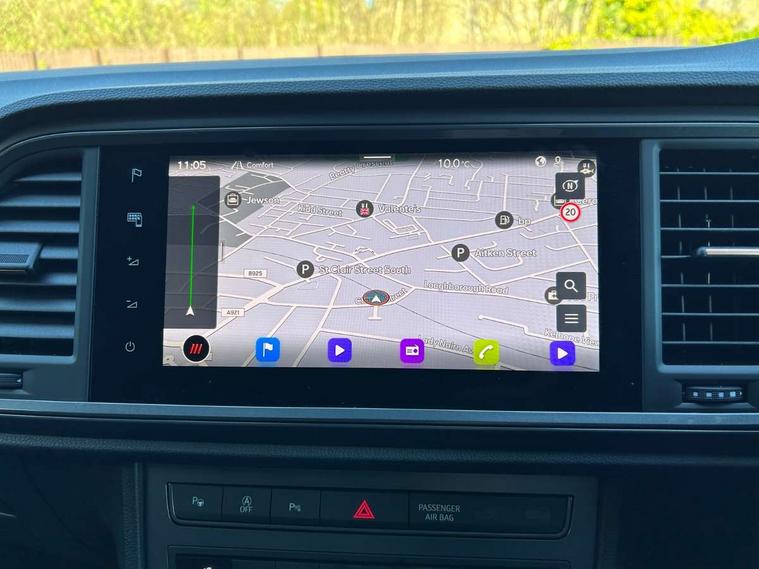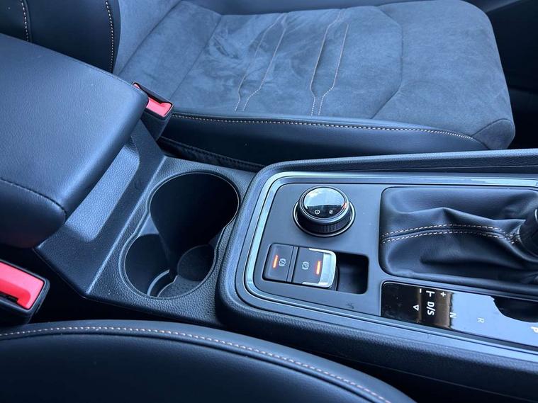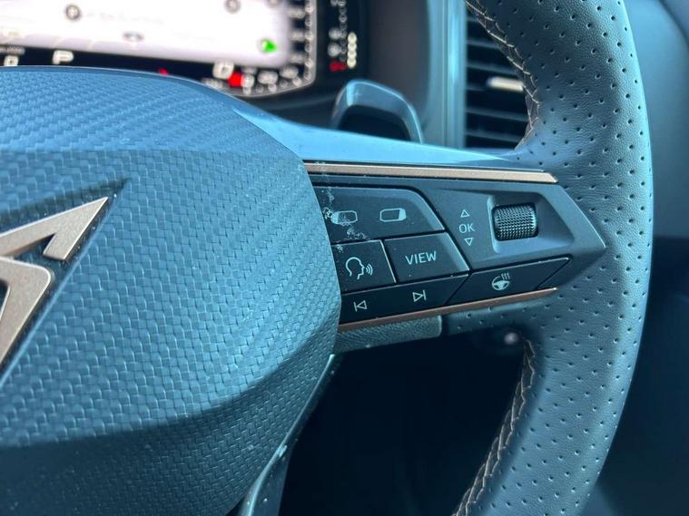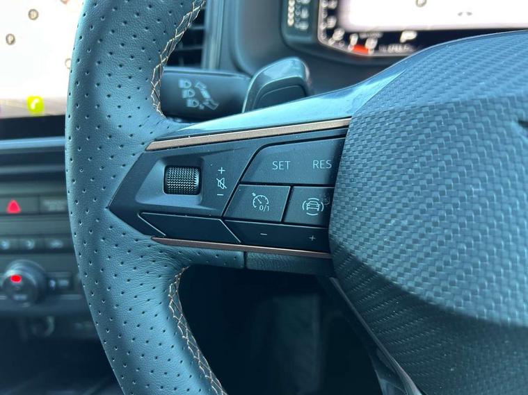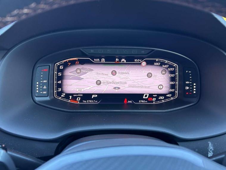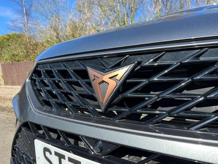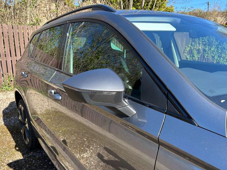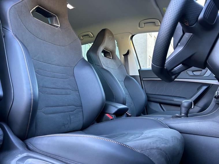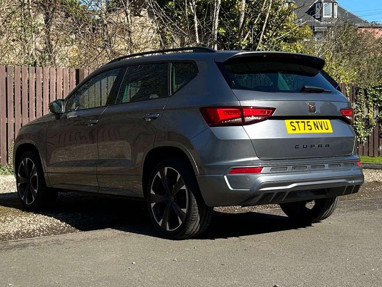 Cruise control system with speed limiter, Digital cockpit, Driving profile selection and conventional shock absorber, E-call, Outside temperature gauge, Progressive power assisted steering, Self parking functionality (includes front and rear parking sensors), Trip computer, wired and wireless full link smartphone integration, Front and rear shock absorption, chassis with increased ride height, Steering wheel mounted audio/phone controls, Body colour bumpers with dark aluminium diffusor, Body coloured wheel arch surrounds, Dark tinted rear windows, Daytime running lights, Door mirrors with welcome CUPRA light silhouette, Dynamic headlight range control with self adjusting whilst driving, Electric adjustable/heated/folding door mirrors, Front and rear electric windows, Front grille frame in chrome, Full LED headlamps with lens and LED front fog lamps with cornering function, Gloss black door mirrors, Gloss black roof rails, Gloss black side mouldings, Gloss black side window trim, Illuminated aluminium front door sill, LED rear tail lights with dynamic indicators, Rear fog lights, Rear side wing doors, Rear spoiler, Rear wash/wipe, Specific CUPRA design front bumper, Standard rear exhaust tailpipes, Third brake light, 12V socket in front, 3 seat bench in 2nd row, 60/40 split folding rear seat, Aluminium pedals, Bucket sport seats in dinamica upholstery, Cupra steering wheel emblem, Document holder under right front seat, Dual zone climate control, Front and rear head restraints, Front centre armrest, Front seat back storage pockets, Grey roof lining, Heated steering wheel, Height adjustable driver and passenger seat with lumbar adjustment, ISOFIX points in outer rear seats with top tether anchorage points, Leather steering wheel and gear knob, Multicoloured ambient lighting with LED interior illumination, Pedal cluster, Rear armrest and easy back seat release mechanism from boot, Single front passenger seat, Sports steering wheel, Steering wheel mounted gearshift paddles, Storage compartment in roof console for sunglass, Storage compartment under driver's seat, Convenience pack - Ateca, Interior lighting pack - Ateca, Navigation system plus pack with DAB - Ateca, Safety and driving pack - Ateca, 3x3 point rear seatbelts, ABS, Traction control system (TCS), Electronic stability control (ESC) and Electronic differential lock system (XDS), Airbags - Driver and front passenger airbag with deactivation, front side, two curtain and driver's knee airbags, Black brake callipers with CUPRA logo, Electric parking brake with auto hold function, Front and rear seatbelt reminder, Front assist with autonomous emergency braking, Hill hold control, Manual rear child locks, Single tone horn, Tiredness recognition system, Tyre pressure monitoring system, Alarm, Keyless entry, Locking wheel bolts, 19" Sport machined alloy wheels in black/silver,