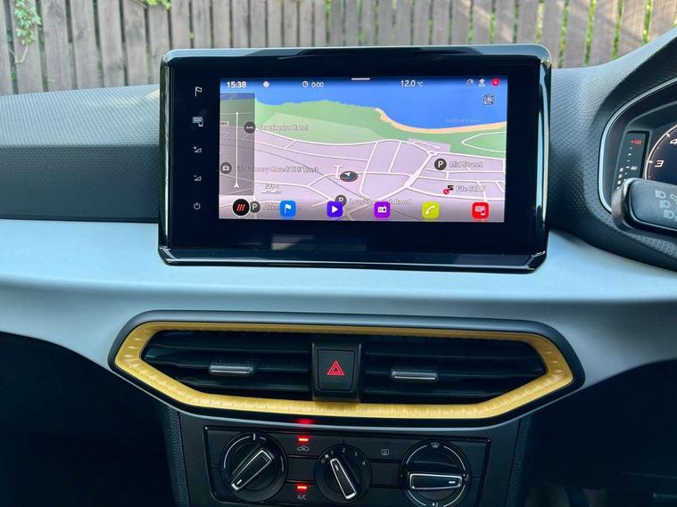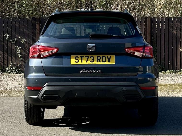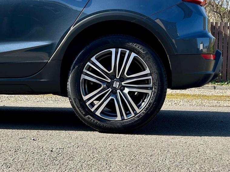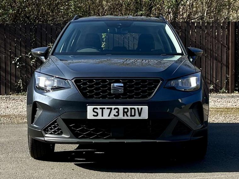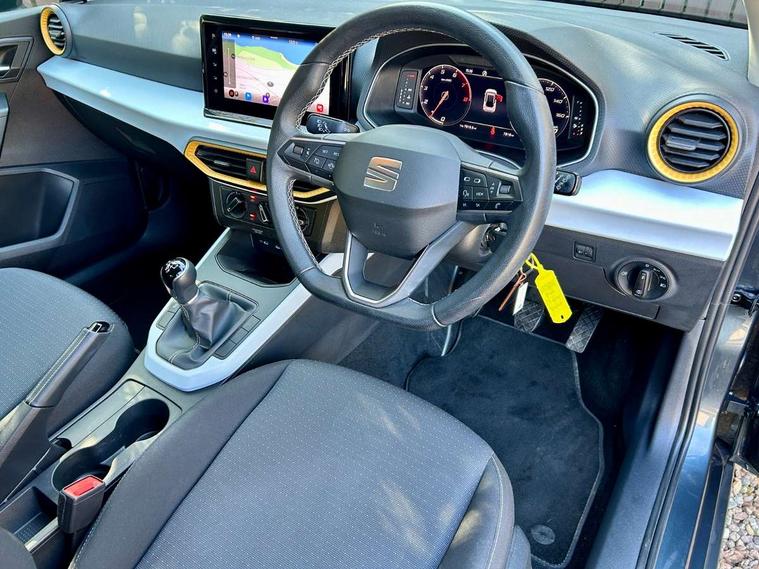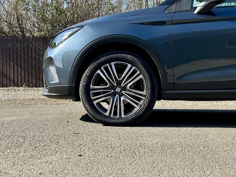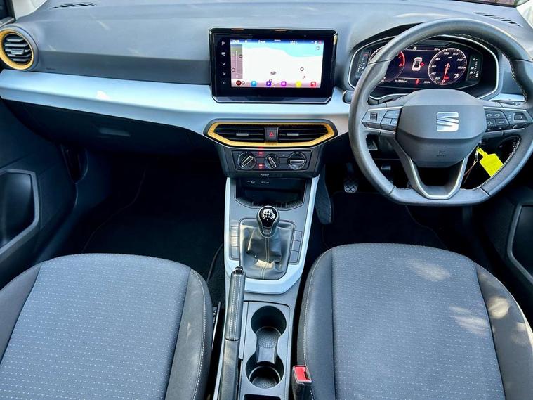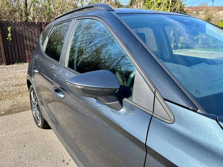 'Lights On' Reminder warning buzzer, 8" Digital cockpit, Cruise control and speed limiter, Digital clock, E-call, Electric speed sensitive power steering, Full Link Smartphone Integration with Mirror Link, Apple Car Play, Google Android Auto with USB Type C cable for Apple and Android compatibility, Lane keeping system, Low fuel warning light, Outside temperature display, Rear parking sensor, RPM counter, Seat connect with safety, service, remote and online, Trip computer, Wireless phone charger, 9.2" colour touchscreen with navigation system, voice control and USB port (type c), Bluetooth interface for hands free and audio streaming, DAB digital radio and AM/FM radio, Steering wheel mounted audio controls, Anti theft roof antenna, Automatic activation of hazard warning lights, Black roof rails and window surrounds, Body coloured bumpers, Body coloured door handle inserts, Body coloured door mirrors, Dimming rear view mirror, ECO LED automatic headlights and LED daytime running lights, Electric adjustable door mirrors, Electric front/rear windows, Hidden exhaust pipe, Licence plate lights, Protective side mouldings, Rain sensing wipers, Rear fog lights, Rear side wing doors, Rear spoiler, Rear window wash/wipe, Third brake light, Visible VIN plate, Windshield wiper with intermittent control and potentiometer, 2 cupholders, 3 seat bench in 2nd row, 60/40 split folding rear seat, Air conditioning, Cloth upholstery, Double boot floor, Driver sunvisor with covered mirror + card holder, Dust/pollen filter, Gear shift indicator, Grey interior roof, Height adjustable front seats, Height/reach adjustable steering column, Illuminated boot, Instrument lighting with brightness control, ISOFIX points in outer rear seats with top tether anchorage points, Leather steering wheel/gear knob/handbrake, Passenger sunvisor with vanity mirror, Single front passenger seat, Two front and three rear height adjustable headrests, Interior chrome pack - Arona, 3 point seatbelts on all rear seats, ABS, Active front headrests, Child locks on rear doors, Driver and front passenger airbags with front passenger airbag de activation, front side and curtain airbags, Electronic stability control, Emergency Brake Assist (EBA) and front assist, Front and rear seatbelt reminder, Hill hold control, Multi-Collision braking, Tiredness recognition system, Traction control, Tyre pressure monitoring system, Electronic engine immobiliser, Locking wheel bolts, Remote central locking + deadlocks, Titan black dashboard, 17" Dynamic machined alloy wheels,
