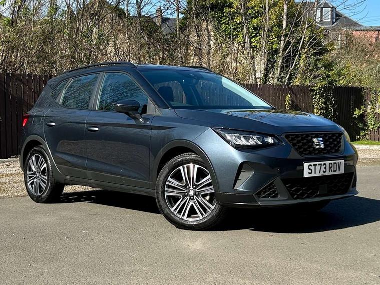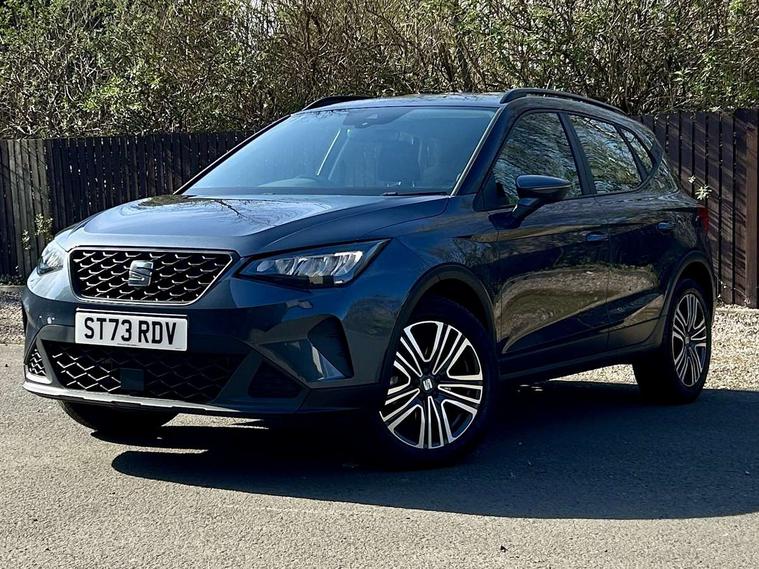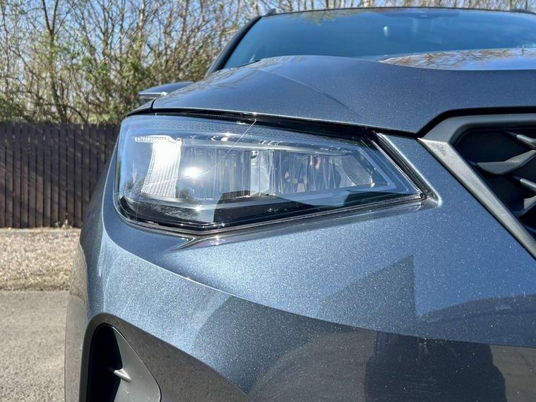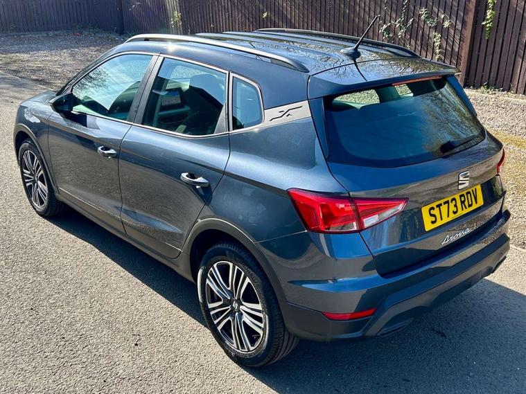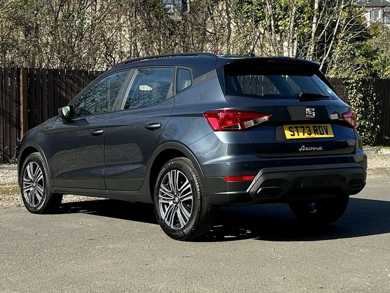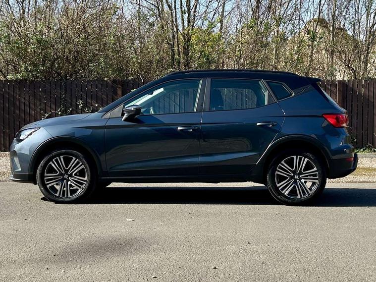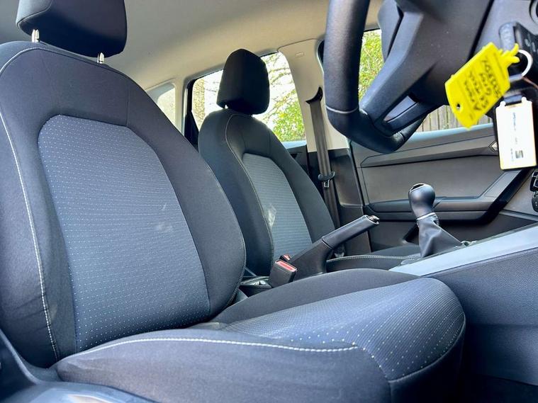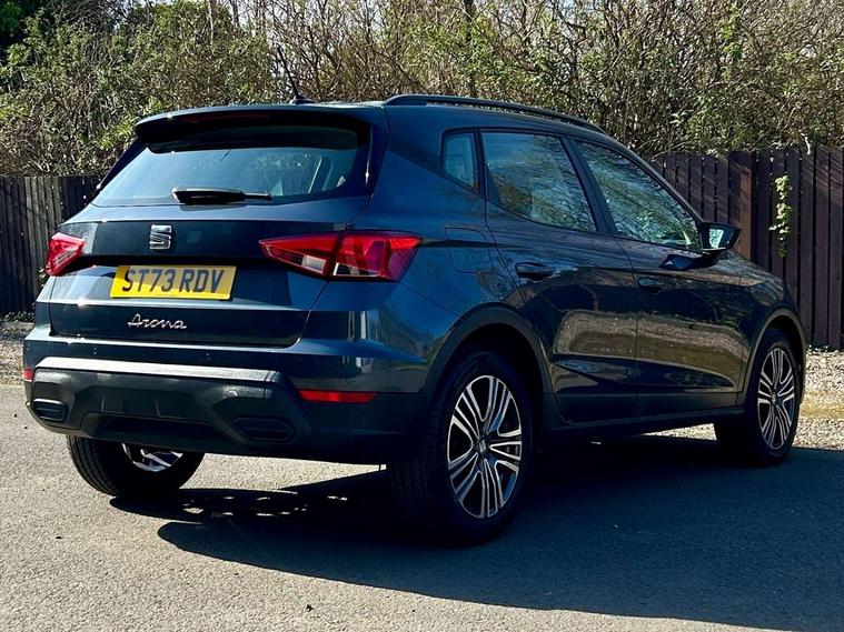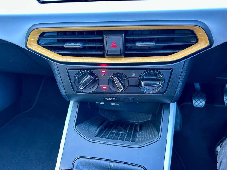 'Lights On' Reminder warning buzzer, 8" Digital cockpit, Cruise control and speed limiter, Digital clock, E-call, Electric speed sensitive power steering, Full Link Smartphone Integration with Mirror Link, Apple Car Play, Google Android Auto with USB Type C cable for Apple and Android compatibility, Lane keeping system, Low fuel warning light, Outside temperature display, Rear parking sensor, RPM counter, Seat connect with safety, service, remote and online, Trip computer, Wireless phone charger, 9.2" colour touchscreen with navigation system, voice control and USB port (type c), Bluetooth interface for hands free and audio streaming, DAB digital radio and AM/FM radio, Steering wheel mounted audio controls, Anti theft roof antenna, Automatic activation of hazard warning lights, Black roof rails and window surrounds, Body coloured bumpers, Body coloured door handle inserts, Body coloured door mirrors, Dimming rear view mirror, ECO LED automatic headlights and LED daytime running lights, Electric adjustable door mirrors, Electric front/rear windows, Hidden exhaust pipe, Licence plate lights, Protective side mouldings, Rain sensing wipers, Rear fog lights, Rear side wing doors, Rear spoiler, Rear window wash/wipe, Third brake light, Visible VIN plate, Windshield wiper with intermittent control and potentiometer, 2 cupholders, 3 seat bench in 2nd row, 60/40 split folding rear seat, Air conditioning, Cloth upholstery, Double boot floor, Driver sunvisor with covered mirror + card holder, Dust/pollen filter, Gear shift indicator, Grey interior roof, Height adjustable front seats, Height/reach adjustable steering column, Illuminated boot, Instrument lighting with brightness control, ISOFIX points in outer rear seats with top tether anchorage points, Leather steering wheel/gear knob/handbrake, Passenger sunvisor with vanity mirror, Single front passenger seat, Two front and three rear height adjustable headrests, Interior chrome pack - Arona, 3 point seatbelts on all rear seats, ABS, Active front headrests, Child locks on rear doors, Driver and front passenger airbags with front passenger airbag de activation, front side and curtain airbags, Electronic stability control, Emergency Brake Assist (EBA) and front assist, Front and rear seatbelt reminder, Hill hold control, Multi-Collision braking, Tiredness recognition system, Traction control, Tyre pressure monitoring system, Electronic engine immobiliser, Locking wheel bolts, Remote central locking + deadlocks, Titan black dashboard, 17" Dynamic machined alloy wheels,
