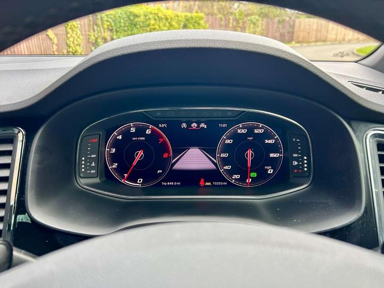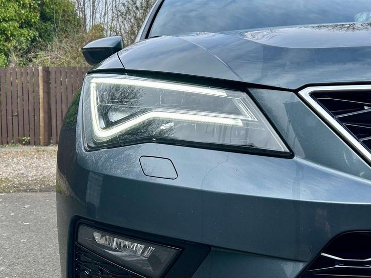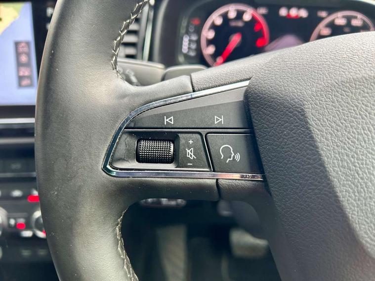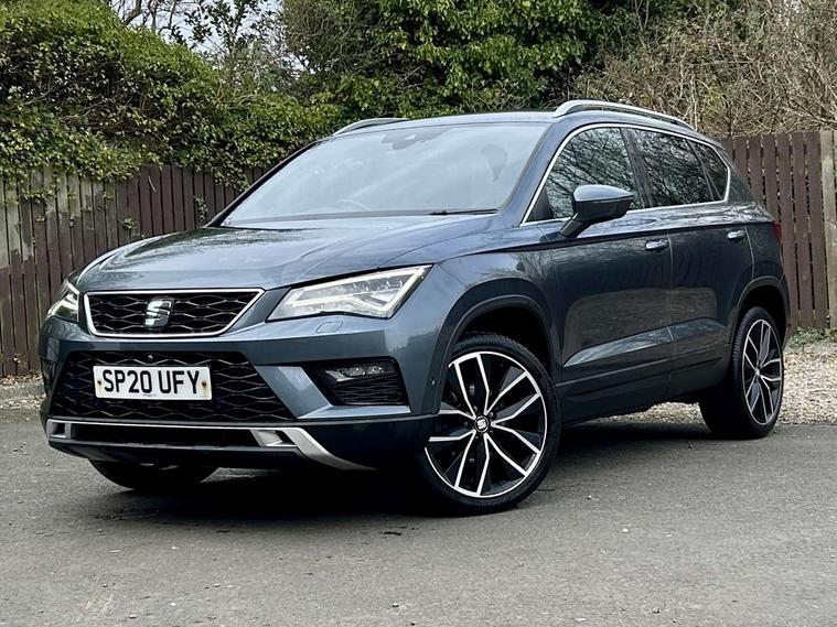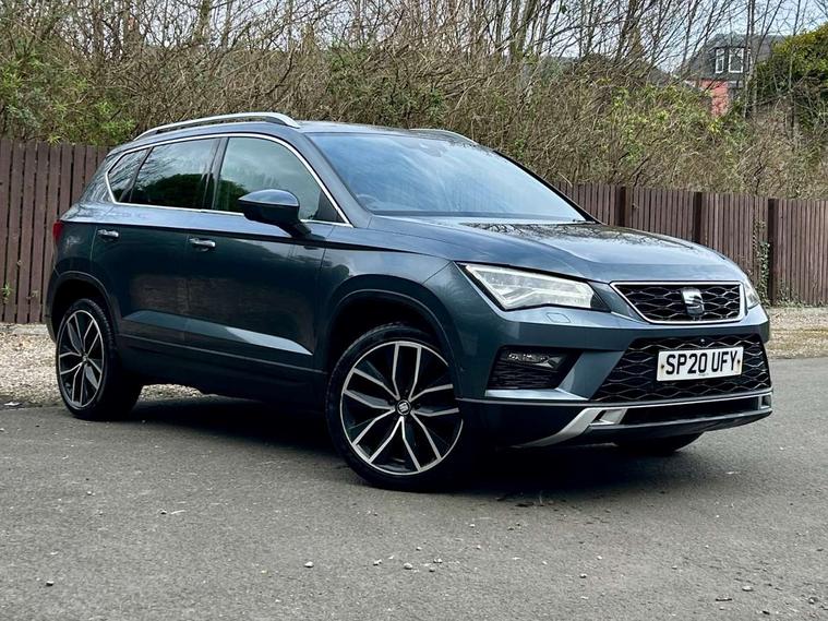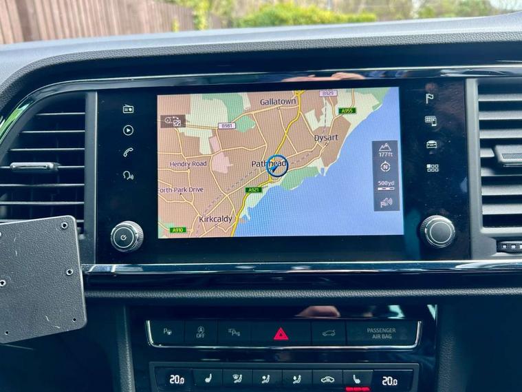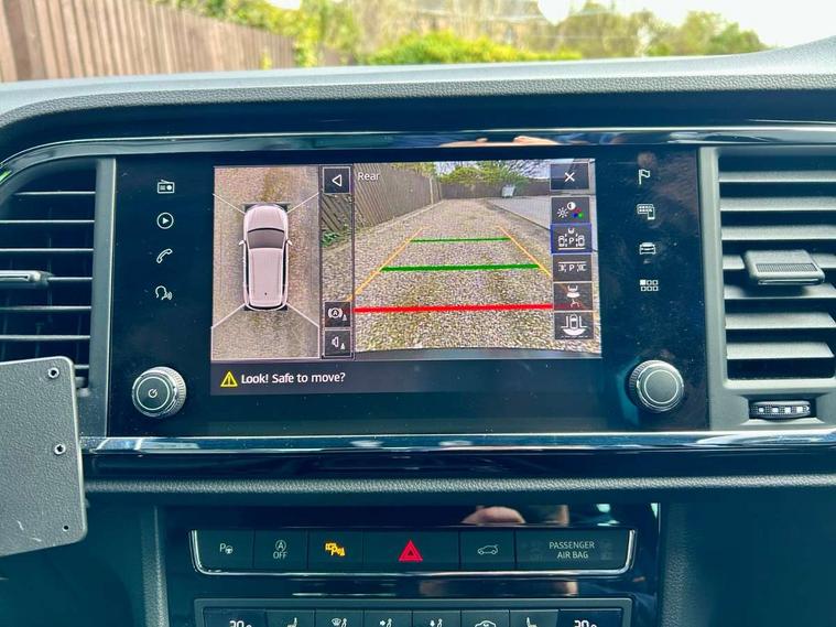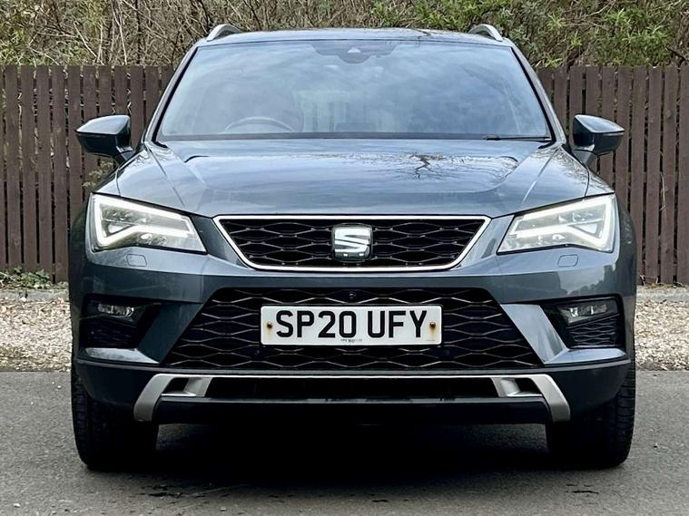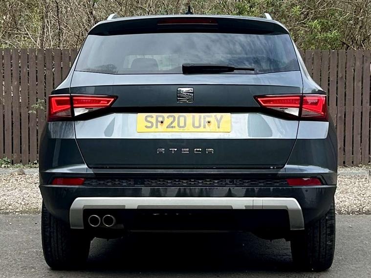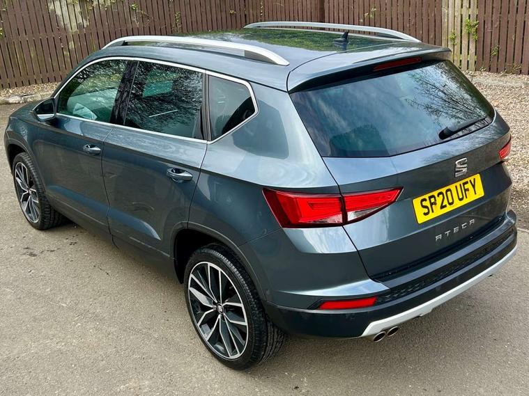 'Lights On' Reminder warning buzzer, Adaptive cruise control, Digital clock, Digital cockpit, Driver alert system, Electric tailgate with virtual pedal, Front assist city emergency braking and pedestrian protection, Full Link Smartphone Integration with Mirror Link, Apple Car Play, Google Android Auto, Low fuel warning light, Multi function display, Outside temperature gauge, Power assist steering, Rear view camera, Remote fuel flap release, RPM counter, Satellite navigation system, SEAT drive profile with driving experience button, SEAT logo boot release, Self parking functionality (includes front and rear parking sensors), Top view camera, Trip computer, Wash water level indicator, Comfort suspension, XDS electronic differential lock, SEAT USB media cable, Steering wheel mounted audio/phone controls, Aluminium front door sills, Armrest with air outlet in rear, Auto dimming rear view mirror, Auto headlights with automatic coming and leaving home function, Black wheel arch extensions, Body colour bumpers, Body colour door handles, Body colour door mirrors, Chrome front grille frame, Chrome roof rails, Chrome side window trim, Dark tinted rear windows, Door mirrors with welcome light silhouette, Electric adjustable/heated/folding door mirrors, Frameless interior mirror, Front and rear electric windows, Front grille in glossy black, Full LED headlights, Headlight washers, Heated windscreen, Illuminated aluminium front door sill with trim logo, LED daytime running lights, LED front fog lights, Rear fog lights, Rear LED tail lights, Rear wash/wipe, Twin chromed exhaust pipes, Visible dual exhaust pipes, 12V socket in front, 4 Lashing eyes in boot, 60/40 split folding rear seat, Adjustable front armrest with storage compartment, Ambient spot lighting and front footwell illumination, Black roof lining, Driver and passenger seats, height-adjustable, with lumbar adjustment and height-adjustable headrests, Driver and passenger sun visor, covered and illuminated mirror, driver sun visor with card holder, Dual zone climate control, Front and rear head restraints, Front courtesy lights, Front cupholders, Front reading lights, Front seat back storage pockets, Gear shift indicator, Heated front seats, Illuminated boot, Illuminated glovebox, Instrument lighting with brightness control, ISOFIX points in outer rear seats with top tether anchorage points, Leather steering wheel and gear knob, Leather upholstery with front sports seats, Multicoloured ambient lighting with LED interior illumination, Rear armrest and easy back seat release mechanism from boot, Rear reading lights, Steering wheel gearshift paddles, Storage box under drivers seat, Advanced Driving Assistance Pack - Ateca Xcellence, Convenience pack - Ateca, Navigation system pack - Ateca, Winter Pack - Ateca, 3x3 point rear seatbelts, ABS, Automatic post collision braking, Driver/Front Passenger airbags, Drivers knee airbag, Electronic parking brake with auto hold, Electronic stability control, ESP+EBA, Front and rear seatbelt reminder, Front passenger airbag deactivation, Front side airbags, Hill hold control, Tiredness recognition system, Traction control, Twin curtain airbags, Tyre pressure monitoring system, 2 folding remote keys with window open/close function, Immobiliser, Keyless entry and go and connectivity hub with wireless charger, Locking wheel bolts, Remote central locking, Volumetric alarm with back up horn, Chrome interior detailing, 19" Exclusive machined bi-colour alloy wheels,