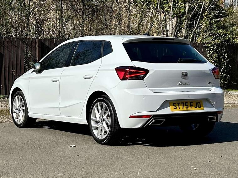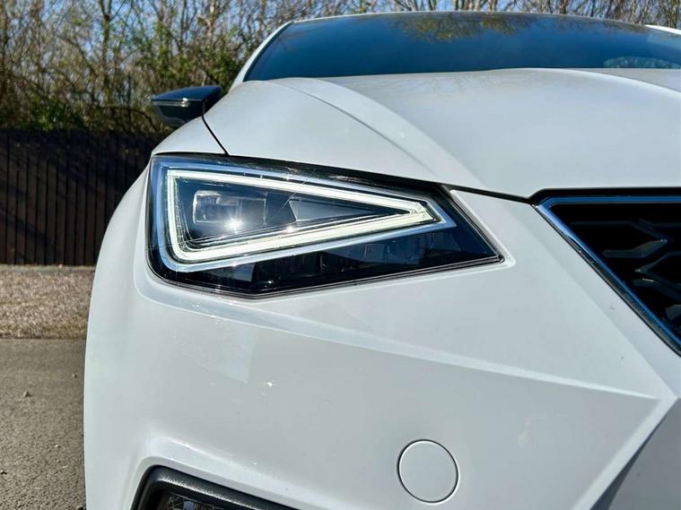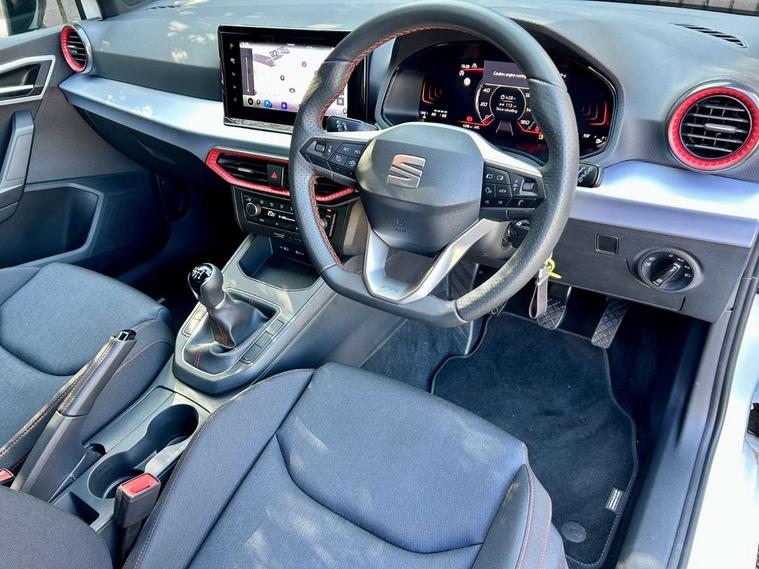 'Lights On' Reminder warning buzzer, 8" Digital cockpit, 9.2" touchscreen navigation system with type C USB socket, Voice control and DAB/AM/FM radio, Auto start and stop system, Bluetooth audio streaming with handsfree system, Digital clock, E-call, Full link smartphone integration with mirror link, wireless apple carplay, Google android auto + USB Type C cable for apple and android devices, Lane assist, Low fuel warning light, Outside temperature gauge, Power Steering, Rear parking sensor, Seat connect plus with safety, service, remote and online, SEAT drive profiles and ECO function, SEAT logo boot release, Speed limiter, Traffic sign recognition, Trip computer, Sports suspension, Auxiliary input socket, Radio/MP3 player, SD card slot, Steering wheel mounted controls, Anti theft roof antenna, Auto dimming rear view mirror, Automatic rain sensing wipers, Black door mirror caps, Body colour bumpers, Body colour door handles, Brilliant black window surrounds, Dark tinted rear windows, Electric adjustable/heated/folding door mirrors, Electric front windows, Electric headlight adjustment, Electric rear windows, Front/rear fog lights, FULL LED automatic headlights with dynamic headlight range control, coming and leaving home, LED daytime running lights, LED 3rd brake light, LED tail lights, Rear roof spoiler with FR twin exhausts, Rear side wing doors, Rear wiper, 3 seat bench in 2nd row, 60/40 split folding rear seat, Ambient interior lighting, Chrome detailing and black headlining, Cloth upholstery, Dual zone climate control with combination filter, Front courtesy lights, Front cupholders x 2, Front reading lights, Gear shift indicator, Glovebox, Height adjustable front and rear headrests (five), Height adjustable front seats, Height/reach adjust steering wheel, Illuminated air vent surrounds, Illuminated boot, Instrument lighting with brightness control, Isofix, Leather multifunction flat bottomed sports steering wheel, Passenger sunvisor, Single front passenger seat, Sports seats, Sunvisors with mirror and driver side card holder, Safety and driving pack (S) - Ibiza, 3 point seatbelts on all 3 rear seats, ABS, Active front headrests, Child locks on rear doors, Electronic stability control, Energy recovery system, Front driver and passenger side airbags with curtain airbag and front passenger airbag deactivation, Hill hold control, Multi-Collision braking, Seat belt reminder for front and rear seats, Tiredness recognition system, Tyre pressure monitoring system, Locking wheel bolts, Perimeter alarm and interior monitoring with backup horn and tow away protection, Remote central locking + deadlocks, 17" Alloy wheels in Brilliant silver,