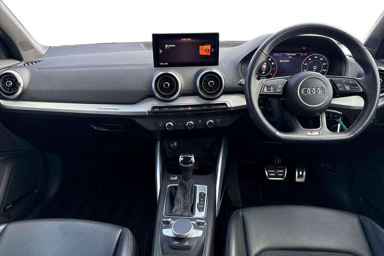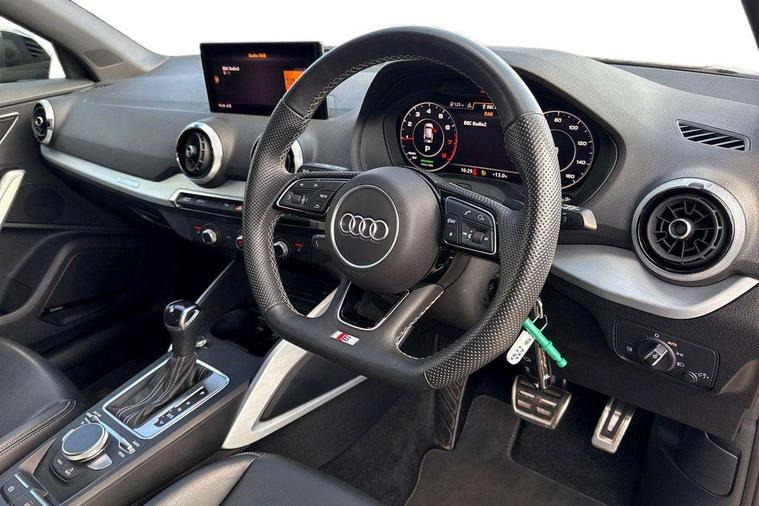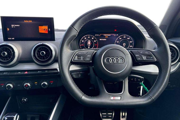 3D map display, Audi connect navigation and infotainment includes innovative services, Audi connect remote and control connects your vehicle to your smartphone, Audi drive select: S tronic - power steering assistance + engine + gearshift (modes: comfort, auto, dynamic, efficiency, individual), Audi smartphone interface - Apple carplay/Android Auto, USB connect, 2xSDXC card readers, voice control for navi, telephone, music and 3rd party apps, Audi virtual cockpit, Automatic start/stop system with recuperation, Bluetooth interface includes bluetooth audio streaming, Cruise control, E-call, Jukebox hard drive memory for music (10GB), MMI navigation plus with 8.3" colour MMI screen and MMI touch, Natural voice recognition, Power operated tailgate, Progressive steering, Rear parking sensors, Sport suspension, 6 passive loudspeakers, DAB Digital radio, Audi beam, Auto dimming rear view mirror, Black window trims, Bumper in full body colour paint finish, Electrically adjustable, folding, auto dimming and heated door mirrors with integrated LED side indicators, Front windscreen with grey tinted sunband, LED daytime running lights, LED headlights with dipped beam, high beam, position lights, indicators, LED rear lights, LED third brake light, Privacy glass - dark tinted rear and rear side windows from B-pillar backwards, Rear side wing doors, Rear wiper, Variable front intermittent wipers, Wheel arch trims in manhattan grey, 12v socket in front, 3 seat bench in 2nd row, 3 spoke flat bottomed multi-function leather sport steering wheel with gear shift paddles, 4-way electric lumbar support for front seats including manual seat height adjustment for both front seats, 60/40 split folding rear seat bench, Black carpets, Black cloth headlining, Front and rear head restraints, Front centre armrest, Front sport seats, Front/rear floor mats, Height/reach adjust steering wheel, Illuminated door sill trims with S logo, ISOFIX child seat mounting in front passenger and rear outer seats, Manual air conditioning, Single front passenger seat, Stainless steel pedals, Tool kit, Black styling pack - Q2, 3x3 point rear seatbelts, 6 airbags - Front, curtain and front side airbags, Electromechanical parking brake, Electronic stabilisation control including ABS, ASR and EDL, Front passenger airbag deactivation, Hill hold assist, Pre-sense front with pedestrian recognition, Seatbelt monitoring, Tyre pressure warning light with visual and acoustic warning, Warning triangle and first aid kit, Anti theft alarm, Anti theft wheel bolts, Electronically operated child locks, Remote central door locking, Aluminium interior element, Black dashboard, Matt brushed aluminium trim inlays,