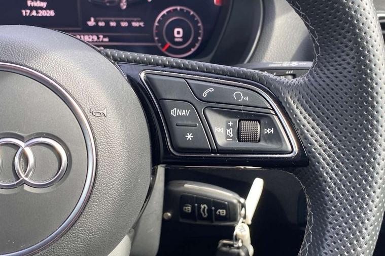 Audi connect navigation and infotainment includes innovative services, Audi connect remote and control connects your vehicle to your smartphone, Audi drive select - Power steering assistance + engine + gearshift, Audi drive select with efficiency, Audi smartphone interface, Audi virtual cockpit, Automatic start/stop system with recuperation, Bluetooth interface includes bluetooth audio streaming, Cruise control, E-call, MMI navigation plus with MMI touch, Power operated tailgate, Progressive steering, Rear parking sensors, 2 x SDXC card reader, 6 passive loudspeakers, DAB Digital radio, Auto dimming rear view mirror, Black window trims, Body colour door mirrors, Electrically adjustable, folding, auto dimming and heated door mirrors with integrated LED side indicators, Front windscreen with grey tinted sunband, LED daytime running lights, LED headlights with LED rear lights, LED third brake light, Rear side wing doors, Rear wiper, S Line badges on the front wings, S Line body styling - front and rear bumpers, side skirts, radiator grille, rear diffuser insert and front air intakes, Variable front intermittent wipers, Wheel arch trims in manhattan grey, 12V socket in front, 3 seat bench in 2nd row, 3 spoke multi-function leather steering wheel with S badging, 4-way electric lumbar support for front seats including seat height adjustment for both front seat, 60/40 split folding rear seat bench, Black cloth headlining, Front and rear head restraints, Front centre armrest, Front/rear floor mats, Height/reach adjust steering wheel, Illuminated door sill trims with S logo, ISOFIX child seat mounting in front passenger and rear outer seats, Manual air conditioning, Single front passenger seat, Stainless steel pedals, 3x3 point rear seatbelts, 6 airbags - Front, curtain and front side airbags, Electromechanical parking brake, Electronic stabilisation control including ABS, ASR and EDL, Front passenger airbag deactivation, Hill hold assist, Pre-sense front with pedestrian recognition, Seatbelt monitoring, Tyre pressure warning light, Warning triangle and first aid kit, Anti theft alarm, Anti theft wheel bolts, Electronically operated child locks, Remote central door locking, Aluminium interior element, Matt brushed aluminium trim inlays, Tool kit,
