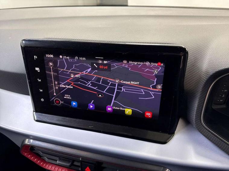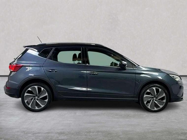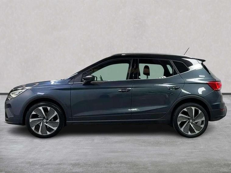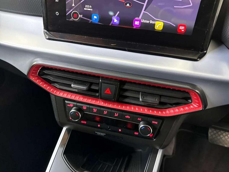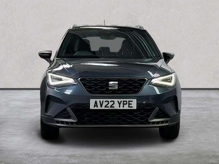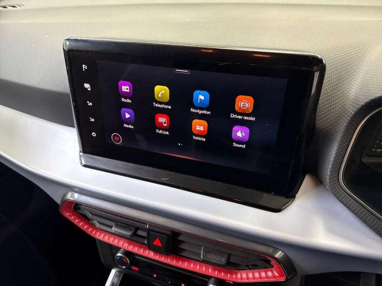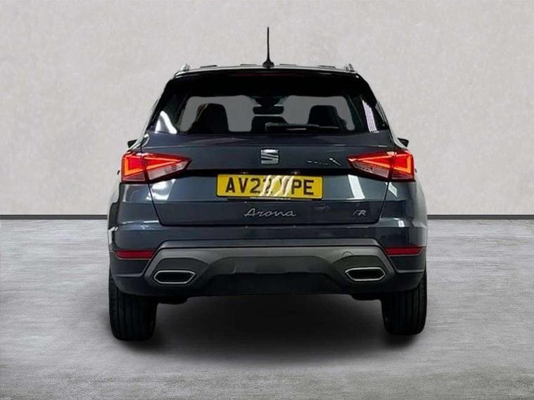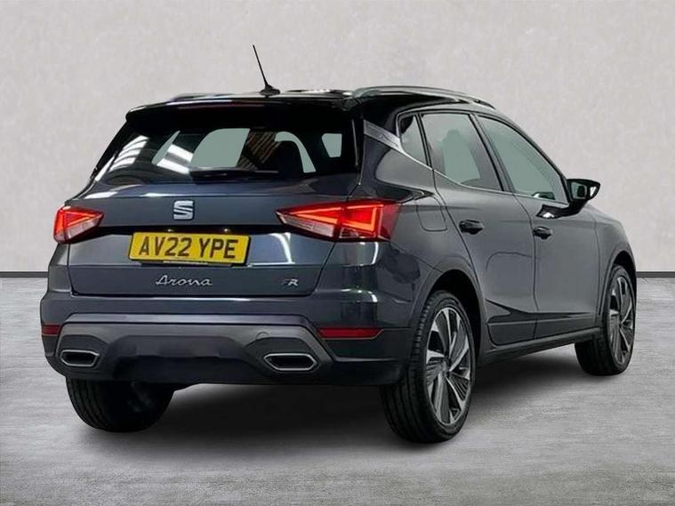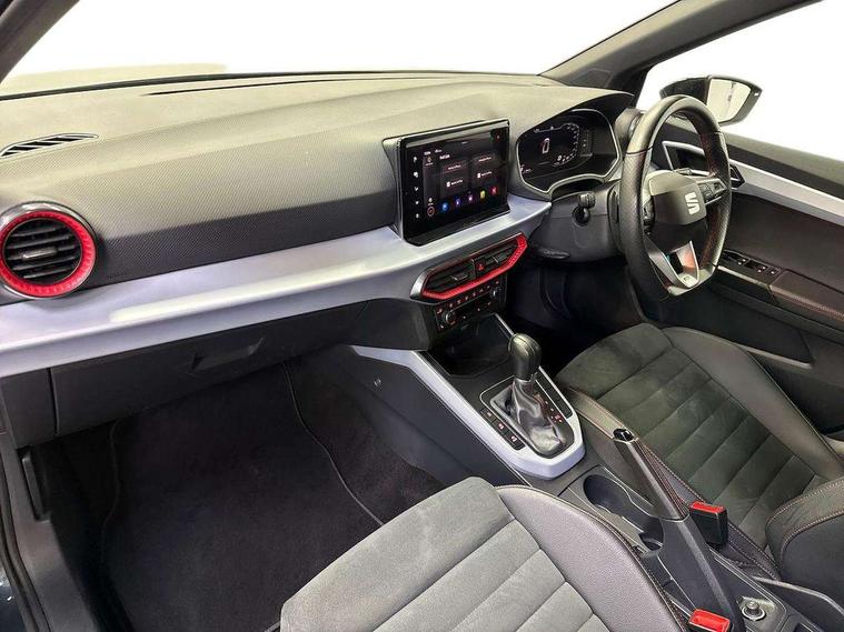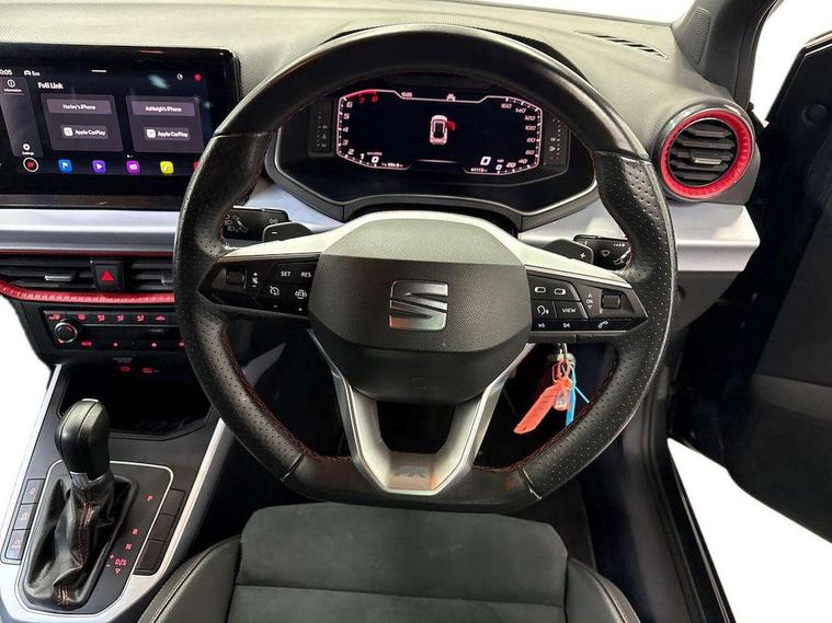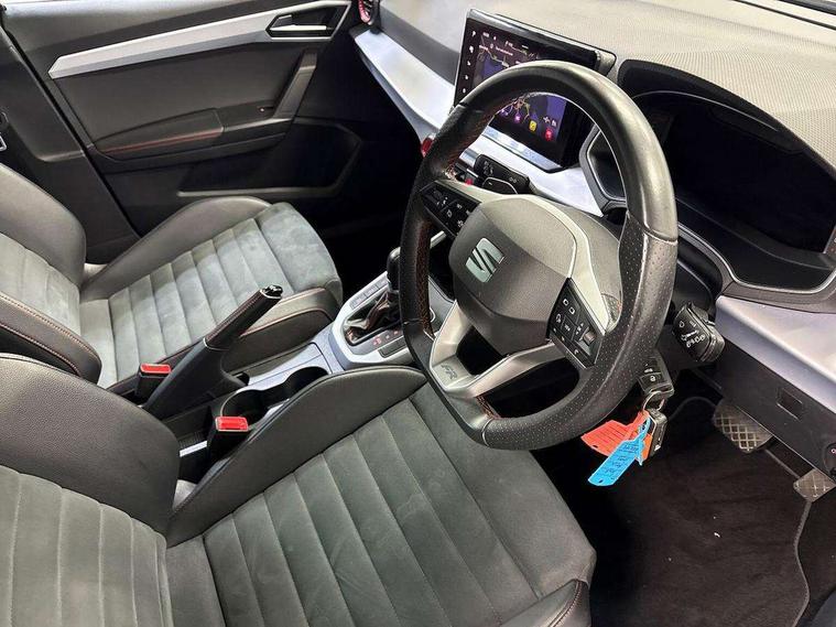 'Lights On' Reminder warning buzzer, 10" Digital cockpit, Digital clock, E-call, Electric speed sensitive power steering, Full Link Smartphone Integration with Mirror Link, Apple Car Play, Google Android Auto with USB Type C cable for Apple and Android compatibility, Low fuel warning light, Outside temperature display, Rear parking sensor, RPM counter, Seat connect with safety, service, remote and online, SEAT Drive profile - Four different models normal-sport-eco-individual, steering response, throttle response and gear shifts mode, Trip computer, Bluetooth interface for hands free and audio streaming, DAB digital radio and AM/FM radio, Steering wheel mounted audio controls, Anti theft roof antenna, Auto dimming interior rear view mirror, Automatic activation of hazard warning lights, Body coloured bumpers, Body coloured door handle inserts, Chrome roof rails and window surrounds, Dark tinted rear windows, Electric front/rear windows, Electrically adjustable, heated and folding door mirrors, Front fog lights with cornering function and rear fog light, FULL LED automatic headlights with dynamic headlight range control, coming and leaving home, LED daytime running lights, LED rear tail lights and licence plate lights, Protective side mouldings, Rain sensing wipers, Rear side wing doors, Rear spoiler, Rear window wash/wipe, Roof colour door mirrors, Third brake light, Twin exhaust pipe styling hidden exhaust pipe, Visible VIN plate, Windshield wiper with intermittent control and potentiometer, 2 cupholders, 3 seat bench in 2nd row, 60/40 split folding rear seat, Aircare filter, Black interior roof, Double boot floor, Driver sunvisor with covered mirror + card holder, Dual zone climate control, Front comfort seats, Front courtesy light with 2x front and 2x rear reading lights, Front seat back storage pockets, Gear shift indicator, Heated front seats, Height adjustable front seats, Height/reach adjustable steering column, Illuminated boot, Instrument lighting with brightness control, Interior ambient lighting, Interior light in footwell, central console and door panel, ISOFIX points in outer rear seats with top tether anchorage points, Microsuede cloth upholstery, Passenger sunvisor with vanity mirror, Perforated flat bottomed leather steering wheel/gear knob/handbrake with red stitching and FR logo, Single front passenger seat, Steering wheel mounted gearshift paddles, Two front and three rear height adjustable headrests, Connectivity pack plus - Arona, Interior chrome pack - Arona, 3 point seatbelts on all rear seats, ABS, Active front headrests, Child locks on rear doors, Driver and front passenger airbags with front passenger airbag de activation, front side and curtain airbags, Electronic stability control, Emergency Brake Assist (EBA) and front assist, Front and rear seatbelt reminder, Hill hold control, Multi-Collision braking, Tiredness recognition system, Traction control, Tyre pressure monitoring system, Alarm with back-up horn, Electronic engine immobiliser, Locking wheel bolts, Remote central locking + deadlocks, Tow away protection, Titan black dashboard, 18" Performance Cosmo grey matt alloy wheels,