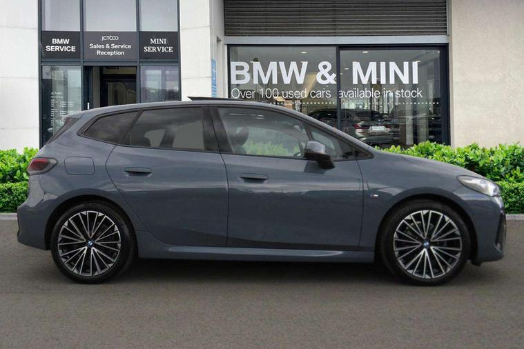 Active Guard, Attentiveness assist, Automatic powered tailgate, Automatic start/stop function, BMW Online services, BMW Operating system 9 with BMW Maps, real-time traffic information, in-car experiences, remote services and smartphone integration, BMW Teleservices, Brake pad wear indicator in front and rear, Condition based service, ConnectedDrive Services, Drive off assistant, Flat air vents on instrument panel in high gloss black, adjustable slats with elements in pearl chrome, iDrive controller, Instrument cluster with speedometer with miles per hour read out, tachometer and fuel gauge, Language version English, On board computer - average speed+fuel consumption, service interval, clock/date, odometer/trip meter, outside temperature display and ice warning, Parking assistant with active park distance control, reversing assistant, lateral parking aid and rear view camera, Servotronic variable electric power steering (EPS), Widescreen display, Wireless charging, Drive performance control with ECO PRO comfort + sport mode, Gear selector switch with toggle operation, M Adaptive suspension, Performance Control, Petrol Particulate Filter, Steptronic transmission with double clutch and gear shift paddles, 2x USB Type C ports in front centre console for charging and data transfer, 2x USB Type C ports in rear centre console for charging, DAB Digital radio, Welcome sound upon opening of the front driver or passenger door, Air inlet middle part on front apron in lines specific design with trim strip in satinised aluminium, Automatic headlights, Black rear bumper trim strip, BMW emblem, engine compartment lid and tailgate, Body colour roof mouldings, Body coloured door mirror caps, Contoured rear roof spoiler in vehicle colour with side aeroblades in black high-gloss, Driver side exterior mirror lighting with BMW logo projection, Dynamic brake lights, Electric adjustable heated door mirrors, Electric windows - front and rear, with open/close fingertip control, anti-trap facility and comfort closing, Folding door handles integrated flush with surface, Front and rear windscreen wipers with heated front washer nozzles, Front bumper cover with independent design in body colour with inserts in black high gloss, Front bumper design elements in satinised aluminium, Front door exit lights, Front door sill finishers aluminium inserts with M inscription, Front entry sills with aluminium inserts + BMW inscription, Front oramental grille with radiator grille bars in satinised aluminium, Heated rear window, Hidden exhaust pipe, High gloss shadow line, Home light, Key with M identification, LED Daytime running lights and parking lights with turn indicators, LED number plate light, LED third brake light in rear spoiler, M identification on sides, Manual headlight range control, Model inscription on right tailgate, Rain sensor, Rear bumper cover with independent design in body colour with inserts in black high gloss, Rear side wing doors, Shark fin antenna, Side sill covers with independent design in Body colour, Trailer stabilisation logic, Trims on front and rear bumper covers colour-coordinated with side window graphic, Visible VIN plate, Welcome lighting, Window washer nozzle for rear view camera, 12V socket in right side trim panel, 2 bag hooks in luggage compartment, 2 front reading lights, 2 open cup holders in front centre console, 2x 12V power socket in luggage compartment and front centre console, 3 seat bench in 2nd row, Ambient lighting front and rear, Automatic two zone climate control air conditioning, Bottle trays in all doors, Child seat ISOFIX attachment for two outer rear seats and front passenger seat with anchorage points, Driver and front passenger sports seats, Embellishers on steering wheel spokes in pearl chrome, Four grab handles integrated in roof lining, Front and rear door pockets, Front and rear footwell lighting, Front and rear side armrest integrated into door trim, Front centre console storage compartment, Front head restraints, Glovebox with light, Heated front seats, Height adjustable 3 rear head restraints, Interior door handle recess light on all doors, Luggage compartment lighting, M Anthracite headlining, M specific floor mats, M sport leather steering wheel, Manual adjustment of seat height, fore/aft position, seat depth, backrest tilt and head restraint height, Map pockets, Mechanical rear seats with fore/aft adjustment, Middle centre console storage compartment, Multi-function controls for steering wheel, One piece parcel shelf opens together with tailgate and removable, Rear cloth hooks, Single front passenger seat, Stainless steel pedals, Steering wheel column manual adjustment, Storage compartment lighting in centre console and storage tray in centre stack, Storage compartment net in left side trim panel, Storage compartment with folding cover under centre console armrest cushion, Sunvisors with illuminated vanity mirrors, 3 point seatbelts on all seats, front pyrotechnic belt tensioners, stopper and belt force limiters, rear coded belt buckles, Airbag - Front driver and passenger, front and rear head, front side, curtain head protection, manual deactivation of front passenger airbag possible, Anti lock braking system (ABS) with brake assist, Automatic hold function, BMW emergency call, Brake drying, Braking readiness, Child proof locking system in rear door, Cornering brake control, Crash Sensor - activates hazard/interior lighting + unlocks doors, DSC - Dynamic Stability Control, Dynamic brake control, Dynamic Traction Control - DTC, Electromechanical parking brake, Energy recovery system, Front disc brakes, Integrated braking system, PC iBrake PostCrash approach control warning with light braking function, Rear disc brakes, Tyre pressure monitoring system, Warning triangle and first aid kit, Anti theft alarm system, Closing system with central locking, Drive away door locking, Engine immobiliser, Locking wheel bolts, Front centre console trim in high gloss black wi