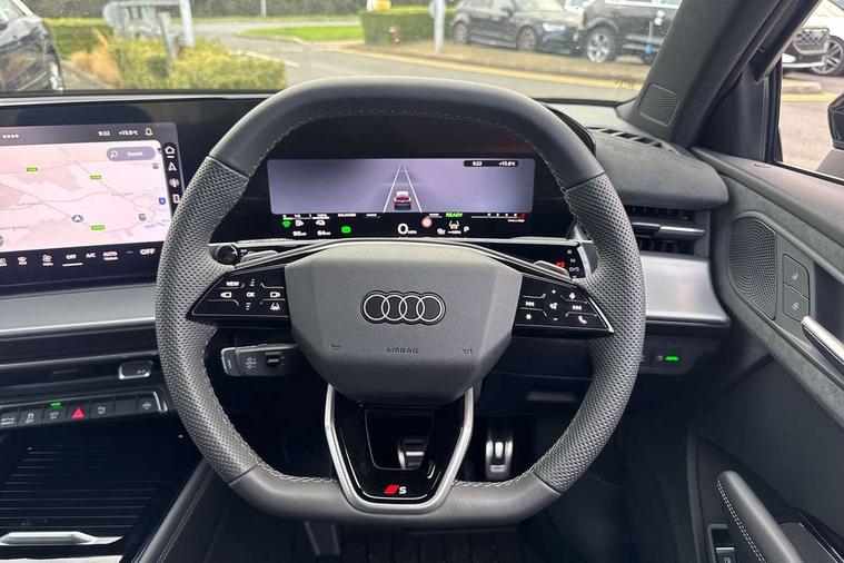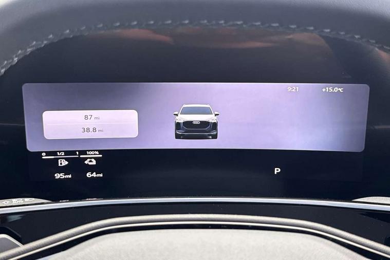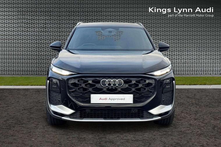Adaptive cruise control, Audi connect emergency call and service, Audi connect remote and controls, Audi drive select (Balanced/Individual, effeciency, comfort and dynamic), Audi virtual cockpit plus - 11.9" display, Bluetooth interface, Camera based traffic sign recognition, Driver attention and fatigue monitor with driver monitoring, Front cross traffic assist, Lane departure warning with emergency assist, Panoramic curved display with 12.8" MMI navigation plus and MMI touch, Park assist plus with parking system and 360 display, Phonebox light with wireless charging, Reversing camera, Smartphone interface includes wireless Apple carplay/Android Auto, Start/stop system, Swerve assist and turn assist, Traffic sign based speed limiter, Voice control system with natural language interaction, 3 pin 10 amp domestic charging cable, Charging socket CCS type 2, Comfort suspension, Compact charging system, Industrial connector CEE 32A, 230V, Mode 3 charging cable for public charging, 22 KW (AC), Petrol Particulate Filter, 2 USB-C ports with charge and data functions, Audi sound system with 10 loudspeakers, subwoofer, 8 channel amplifier with 260 watts, DAB digital radio module, Acoustic glass for front door windows, Acoustic windscreen, Aluminium roof rails, Aluminium window trim, Audi Q3 lettering on the B-pillars, Auto dimming door mirrors, Auto dimming rear view mirror, Body colour door mirrors, Contrasting finish in volcano grey, Electrically folding, adjustable and heated door mirrors with integrated LED side indicators and kerb view function for passenger side, Full paint finish, Illuminated door sills with aluminium inserts at the front with S logo, LED daytime running lights, LED headlights plus with LED rear lights pro with continous light strip, illuminated Audi rings, rear, LED third brake light, Loading sill protector in stainless steel, Main beam assist, Privacy glass - dark tinted rear window, rear door and side windows, Projection light in the exterior mirrors - Projects a graphic element onto the ground, Q3 badging on the rear, Rain and light sensors, Rear side wing doors, Rear window, rear door windows and rear side windows in clear glass, Rear wiper, Sports bumpers, 3 seat bench in 2nd row, 3 spoke flat top and bottomed leather multi function sport steering wheel with gear shift paddles and "S" badging, 3-zone deluxe automatic air conditioning, 4 way lumbar support for the front seats - electric with horizontal and vertical adjustment in four directions, Black cloth headlining, Convenience auxiliary air conditioning, Front and rear floor mats, Front and rear headrests, Front centre armrest, Heated front seats, Height and reach adjustable steering wheel, Interior storage compartment, Leather/artificial leather upholstery combination with S emblem + front sports seats, Luggage compartment lid, electrically opening and closing, Manual front seats with height adjustment, Rear seat bench plus with split folded 40:20:40, Single front passenger seat, Stainless steel pedals, Steering wheel operating unit, gloss black, Storage compartment in front centre console, Ambient lighting package pro - Q3, S line exterior styling pack - Q3, 3x3 point rear seatbelts, Acoustic vehicle alerting system, Convenience key with safelock, Driver and front passenger airbag with passenger airbag deactivation, Electromechanical parking brake, Electronic stabilisation control including ABS, ASR and EDL, First aid kit with warning triangle and high visibility vests, Front emergency brake assist, Hill hold assist, i - Size child seat mounting on the front passenger side and i - Size and top tether on the outer rear seats, Power operated child locks, Seatbelt monitoring, Three point automatic belts with belt tensioner and height adjustment, Tyre pressure loss indicator, Anti theft wheel bolts, Remote central locking, Thatcham approved category 1 anti theft alarm, Dark aluminium divergence inlay, Interior elements in dinamica microfibre, Interior trims in aluminium look, Tool kit and Jack, Tyre repair kit,