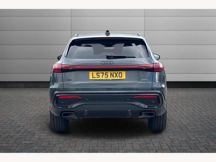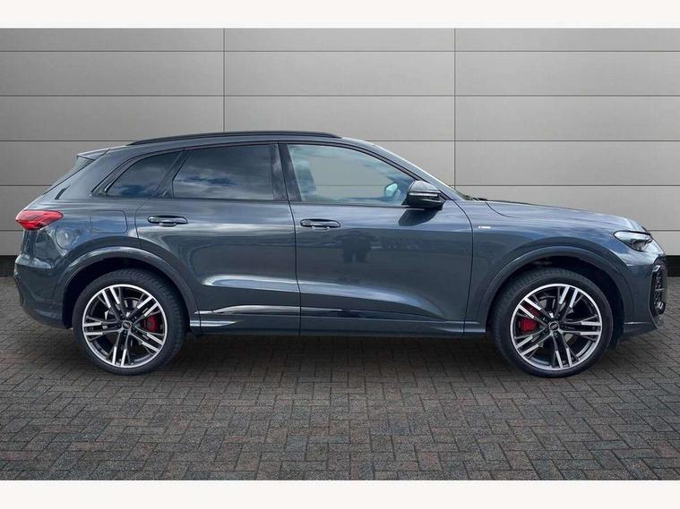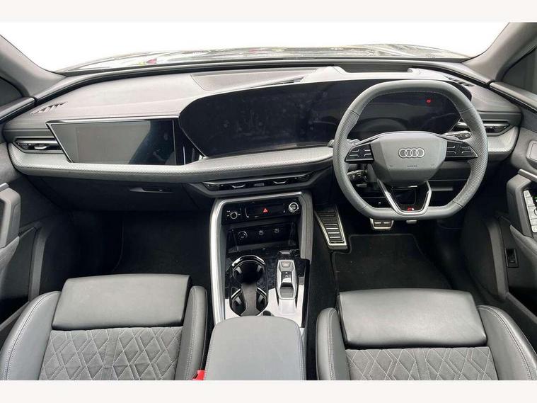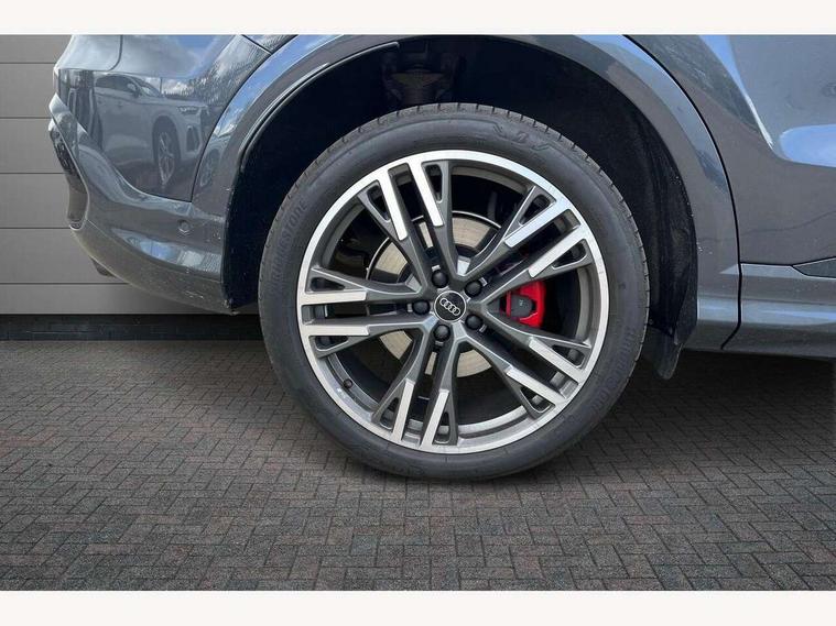 Adaptive cruise control, Advanced driver attention alert, Audi application store, Audi connect emergency call and service, Audi drive select, Audi smartphone interface, Audi virtual cockpit plus with 11.9" OLED colour display, Camera based traffic sign recognition, Fatigue monitor, Front cross traffic intersection assist, Lane change assistant with exit warning system, rear cross traffic alert and rear turn assist, Lane departure warning with emergency assist, MMI 10.9" front passenger touch display, MMI navigation plus with high resolution 14.5" OLED touchscreen colour display, Park assist plus, Parking system plus with 360 display, PAS, Reversing camera, Swerve assist and turn assist, Top view camera, Traffic sign based speed limiter, 2 USB-C ports in both the front and rear, Audi sound system impressive sound with 8 loudspeakers including centre speaker and subwoofer, 6-channel amplifier with a total output of 180 watts, DAB Digital radio, Smartphone compartment with wireless charging, Active digital light signatures - Six additional combinations of active daytime running light signature, Auto dimming rear view mirror, Black roof rails, Coming/leaving home lighting function, Electrically adjustable heated and folding + automatically dimming exterior mirrors, Exhaust tailpipes in dark chrome, Front and rear electric windows, Front door sill trims with aluminium inlays, illuminated with 'S' logo, Full body paint finish, Grill frame, inlay and front air inlets in matt anthracite chrome, Headlight cleaning system, Heated rear window, High beam assist, High gloss window surrounds, LED rear lights pro incl. dynamic rear indicators and illuminated light strip with animated coming and leaving home function, Logo projection light in exterior mirrors, Matrix LED headlights, Memory function for door mirrors, Privacy glass, Projection third brake light for rear window in LED, Radiator grille in phantom black, Rear and side windows with heat insulating glass, Rear honeycombe grille in matt black with inlay in matt anthracite chrome, Rear side wing doors, Rear wash/wipe, S Line badge on the front wings, Towbar preparation, Windscreen with acoustic glazing, 3 rear head restraints, 3 seat bench in 2nd row, 3 spoke leather steering wheel with multi-function buttons with touch control, flattened on top and bottom, with S badging and contrast stitching, 4 way electric lumbar support for driver and front passenger, 40:20:40 split folding rear seat bench with centre armrest and cup holders, Comfort centre armrest front, Deluxe 3 zone electronic climate control, Dinamica microfiber/leather upholstery with diamond stitching, Electrically adjustable front seats with memory function for driver's side, Front and rear floor mats, Front sport seats with integrated head restraints, Headlining in black cloth, Heated front seats, i-Size child seat mounting on the front passenger side and outer rear seats, i-Size and top tether on the outer rear seats, Interior trim in aluminium look, Luggage compartment lid, electrically opening and closing, Manual steering column adjustment, S embossed logo on front sport seats, Single front passenger seat, Softwrap in Dinamica, Stainless steel pedals and footrest, Steering wheel grips in perforated leather and shift paddles, Ambient lighting package plus - Q5, Black styling package plus - Q5, Storage and luggage compartment pack - Q5, 3x3 point rear seatbelts, ABS, Acoustic vehicle alerting system, Convenience key with safelock, Driver and front passenger airbag with passenger airbag deactivation, Electric child safety locks, First aid kit with warning triangle and high visibility vests, Front emergency brake assist, Front side airbags with head airbag system and front interaction airbag, Hill hold assist, Occupant detection in rear seat area, Proactive passenger protection system for front, sides and rear, Red brake calipers, Side airbags in front and rear with head airbag system and front interaction airbag, Tyre pressure loss indicator, Anti theft alarm, Anti-theft wheel bolts, Remote control key with SAFELOCK and keyless go, Accent surfaces and control buttons in gloss black, Black dashboard with contrast stitching, Steel grey seat stitching, Upper and lower interior elements in dinamica microfiber, Tyre repair kit,