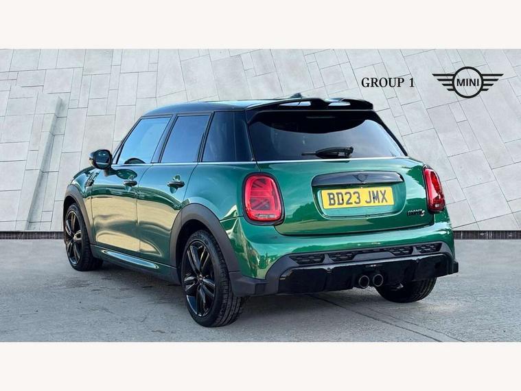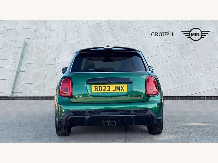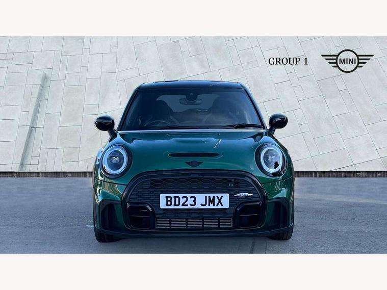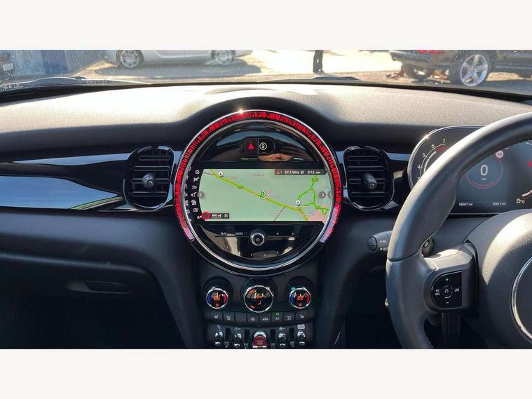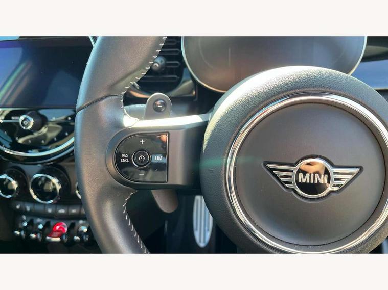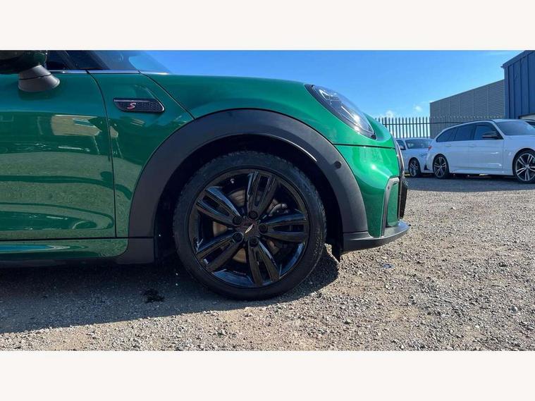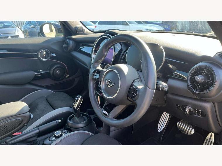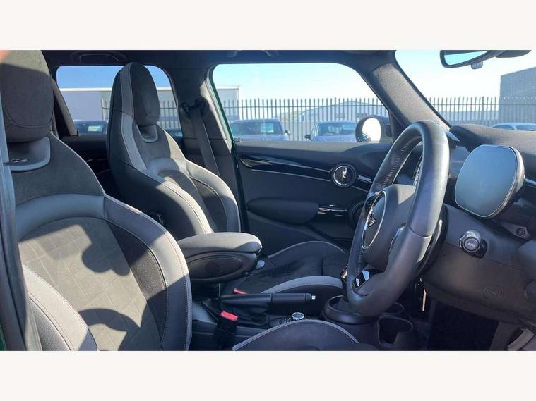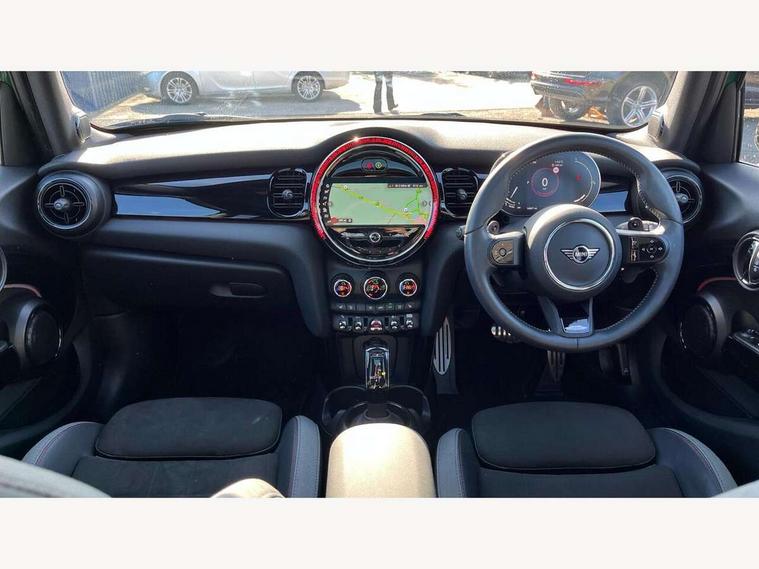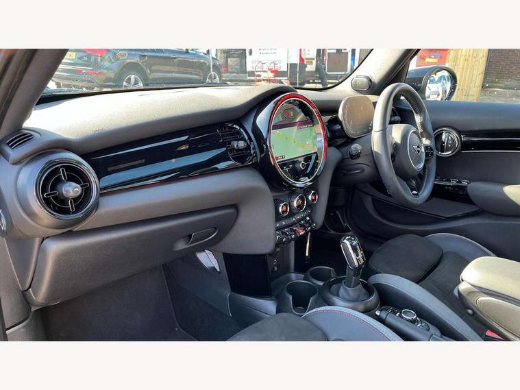 Apple CarPlay, Automatic start/stop function with brake energy recuperation, Compatible mobile phone bluetooth with audio streaming, Electro-mechanical speed dependant steering assistance, Flexible car sharing preparation, MINI Driving Modes - centre toggle switch to control driving setting (sport, mid and green), Mini E-call, MINI TeleServices, On board computer, Rear park distance control, Service interval indicator, Adaptive suspension, Double Vanos system, Fully variable valve control, Gear change indicator display, High precision injection, Performance Control, Steptronic sport transmission with double clutch and steering wheel paddles, 8.8" touchscreen with LED ring, FM tuner and DAB digital radio, 3rd brake light, Automatic headlight activation switch, Bonnet scoop, Dynamic brake lights, Electric front+rear windows, Heated rear window, Heated windscreen washer jets, JCW Aerodynamic kit - Front and rear bumpers with sporty JCW styling and part-painted side sills with MINI John Cooper Works door sill finishers, John Cooper Works rear spoiler, Metal door sill strips with Cooper S imprint, Model logo Cooper S on right of tailgate, Radiator grille chrome border with honeycomb structure including S Badge, Rain sensor window wipers, Rear fog lights, Rear LED lights with union jack design, Rear side wing doors, Rear window wiper, Side scuttle panel with integrated indicator, Sun/heat protection glass, Two central exhaust tailpipes with chrome finisher, White indicator lenses, 12V Accessory socket in centre console, 3 seat bench in 2nd row, 4 lashing eyes in luggage compartment, 60/40 split folding rear seat, Anthracite headliner including grab handles and clothes hooks, Carbon black colour line - Knee roll and door armrest, Chrome interior highlights, Cupholders, Front and rear isofix with front passenger airbag deactivation, Front and rear velour floor mats, Glove compartment, Height and length steering column adjustment, Interior lighting with 12 different colours across the dashboard, underneath door bezel with illuminated laser-engraved design on central display, JCW Sport seats with integrated headrests, adjustable thigh support and John Cooper Works logo, Leatherette gearshift lever and handbrake gaiters, LED reading lights, vanity mirror lights, front foot well light and spotlight on front seats, Mechanical seat adjustment - forward/back & backrest for front seats and driver seat height adjust, Multifunction steering wheel, Single front passenger seat, Sport leather steering wheel with speed limiter and audio/communication controls, Storage compartments in doors, Storage pocket on back of front seats, Sunvisors with vanity mirrors, Tool kit, Walknappa leather steering wheel with grey seam and John Cooper Works badge on Piano Black lower steering wheel spoke, Piano black exterior pack - Mini Hatchback Cooper S, 3 point seatbelts on all five seats, 6 Airbags - front, side, head and seat belt tensioners, Anti-lock braking system (ABS), Child locks on rear doors, DSC - Dynamic Stability Control, Front and rear disc brakes, Hill start assist, Two tone horn, Tyre pressure monitoring system, Alarm system with tilt sensor, monitoring doors, bonnet interior and tailgate, Electronic vehicle immobiliser, Start/stop toggle with keyless go, Piano black interior trim,