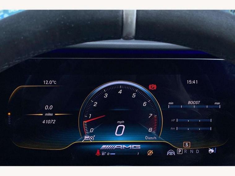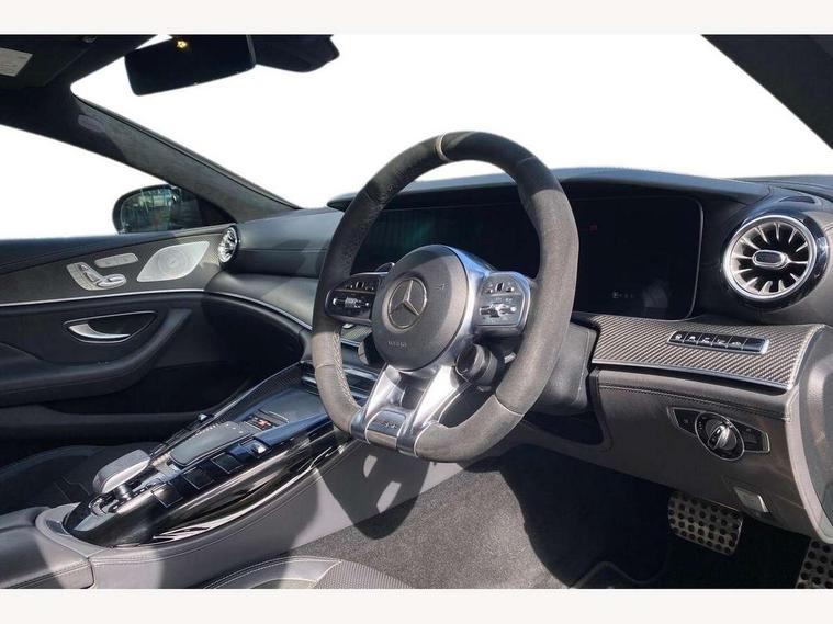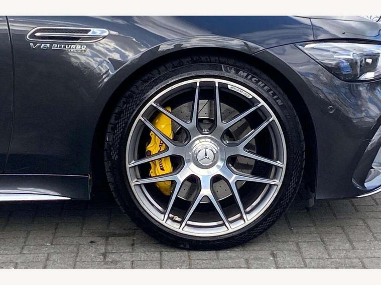AMG drive unit, AMG track pace, Attention assist - Monitors steering behaviour and long journey fatigue, Blind spot assist, COMAND Online HDD nav, media interface, MP3/USB, 12.3" display, voice control, 10GB music, SD card, 3D map, Live traffic info, bluetooth, WLAN hotspot, Concierge service, Crosswind Assist, Digital operating instructions, Dual bonded widescreen cockpit consisting of an instrument and media display with AMG main menu and start up screen, Easy-pack tailgate, ECO start/stop function, Head up Display, Mercedes me connect including emergency call system, accident recovery, breakdown and maintenance management, PAS, Rear seat belt status indicator, Service indicator (ASSYST), Smartphone integration with Apple CarPlay, Touchpad integrated into the centre console with clear haptic feedback, Traffic sign assist, Wireless charging system for mobile devices, 80 litre fuel tank, AMG performance 4MATIC+, AMG rear axle steering, AMG Ride Control sports suspension with adjustable damping system, Lithium-ion battery, Petrol Particulate Filter, 2 USB ports in the rear, Burmester 14 speaker surround sound system, DAB digital radio tuner, Active aerodynamics with AIRPANEL in the front apron, Adaptive brake lights, AMG Performance exhaust, AMG specific radiator grille, Automatically dimming rear view mirror and driver's exterior mirror, Body colour bumpers, Bonnet with powerdomes, Electric windows with pre-safe closing function, Heated rear window with timer, LED tail lights with sequential turn signals, Model designation on the front wings and boot lid, Multibeam LED headlights with adaptive highbeam assist plus, Privacy glass, Rain sensor windscreen wipers, Solid roof, Specific side skirts painted in the vehicle colour with inserts in silver chrome, V8 BITURBO lettering on front wings, 12V socket in centre console and in boot, Ambient lighting with choice of 64 colour settings, AMG brushed stainless steel sports pedals with rubber studs, AMG floor mats with AMG lettering, AMG sports seats with embossed AMG emblem in the head restraints and bezel in silver chrome with AMG lettering, Automatic child seat recognition sensor, Comfort ventilated front seats, ENERGIZING comfort control, Flat bottom AMG lettering Performance steering wheel in black DINAMICA microfibre/silver chrome gearshift, touch control, 12 o'clock marking, Front and rear AMG brushed stainless steel illuminated door sill panels with AMG lettering, Front and rear cupholders, Front centre armrest with stowage, Front seats full electric adjustment fore/aft/height, inclination and seat cushion adjustment, four way electric lumbar/height adjust head restraint, Glasses stowage compartment, Glove compartment - lockable, air conditioned and illuminated, Heated front seats, Heated rear seats, Pull out sun visors with vanity mirror, illuminated and pivotable side window, Air balance pack - AMG GT, AMG Dynamic plus package - AMG GT, Anti theft protection pack - AMG GT, Front seat comfort package - AMG GT, Front seat memory pack - AMG GT, Keyless Go package - AMG GT, Mirror package - AMG GT, Parking package - AMG GT, 2 three point rear seatbelts, 3 stage electronic stability programme, Acceleration skid control, Airbags - driver and front passenger, Airbags - front sidebags, Airbags - kneebag for driver, Airbags - windowbags, Anti lock braking system (ABS) with brake assist, Automatic front passenger airbag deactivation, Black seat belts, Brake calipers with AMG lettering painted in yellow, Brake pad wear indicator front brakes, Electric parking brake, First aid kit, Front and outer rear seats seatbelt pre-tensioners with belt force limiters and automatic belt height adjustment, ISOFIX child seat for two outer seats, Predictive pedestrian protection, Tyre pressure monitoring system, Warning triangle, Alarm system with immobiliser and interior protection -Thatcham category 1, Keyless Go starting function, Remote central locking, Soft door close, Dashboard upper section in artico man-made leather, Summer tyres, TIREFIT with tyre inflation compressor,