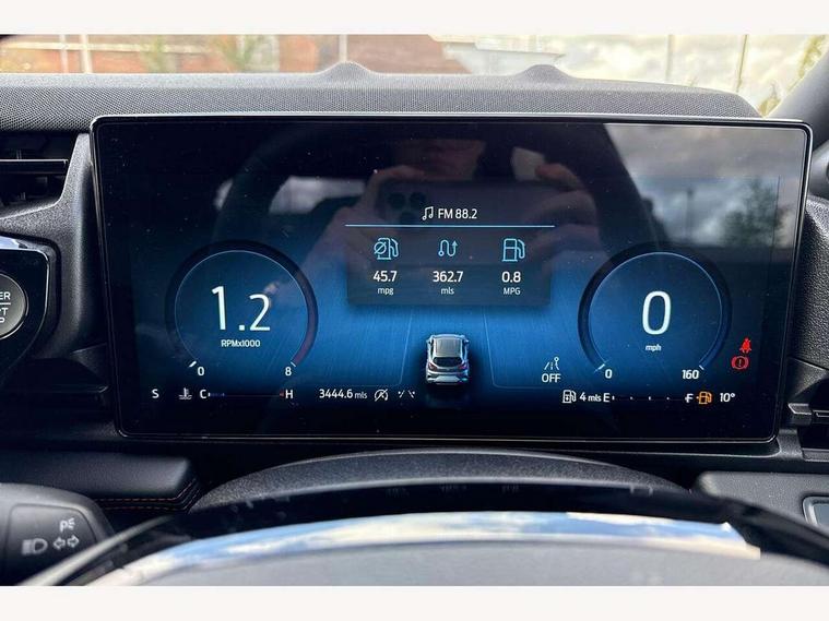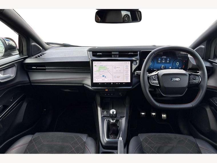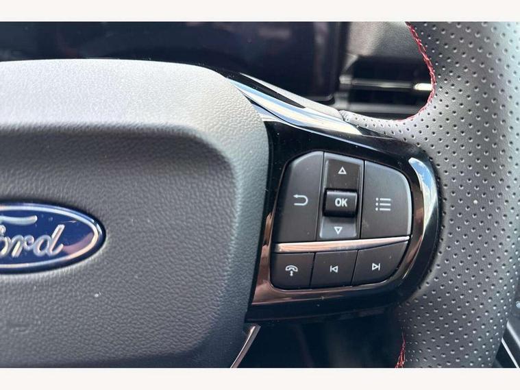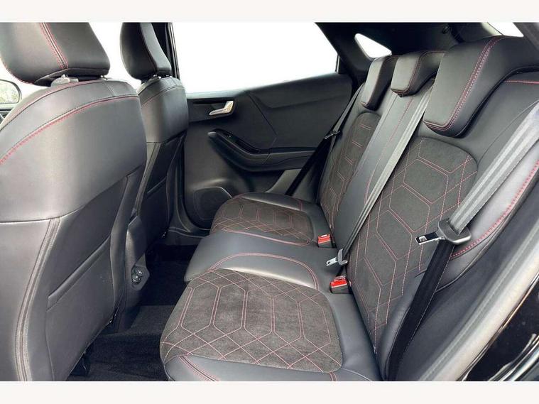Driver impairment monitor, Emergency call service, Ford easy fuel, Full digital 12.8" instrument cluster, Lane keeping aid with lane departure warning, Power assist steering, Selectable drive modes(Normal, Eco, Sport, Slippery and Trail), Speed sign recognition, Sport suspension, 12" landscape touchscreen display with wireless apple car play and android auto premium B&O audio system with 10 speakers, Ford pass connect and emergency assistance, Ford SYNC4 with connected navigation, Automatic headlights with rain sensing wipers and auto high beam, Front fog lamps, LED daytime running lights, LED rear lamps, LED third brake light, Power foldable heated door mirrors with puddle lamps and puma logo protection, Quickclear heated windscreen, Rear privacy glass, Rear side wing doors, Rear wiper, ST-Line X body styling kit, 3 seat bench in 2nd row, 4 way lumbar support for passenger seat, Centre console with armrest and stowage, Electronic automatic temperature control (EATC), Ford megabox extended bootspace, Front and rear head restraints, Front floor mats, Manual 4 way driver seat adjust with lumbar adjustment, Single front passenger seat, ST-Line X Premium synthetic leather upholstery, Comfort pack with power lift tailgate - Puma, 3 rear seatbelts, Child safety lock, Electronic stability control (ESC) and hill start assist, Pre-collision assist with autonomous emergency braking, pedestrian/cyclist detection & post-collision braking, Tyre pressure monitoring system (TPMS), Thatcham alarm,