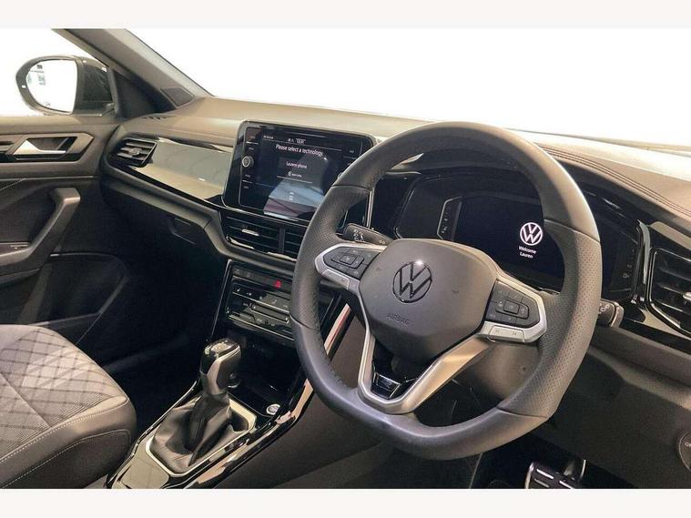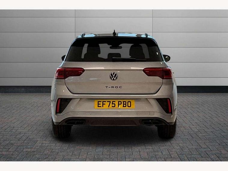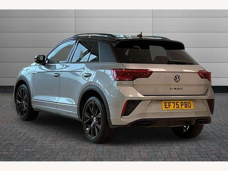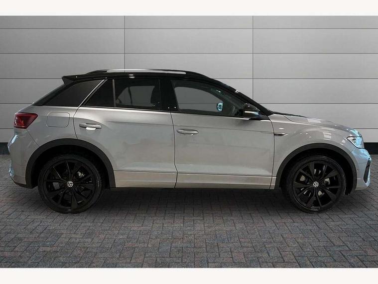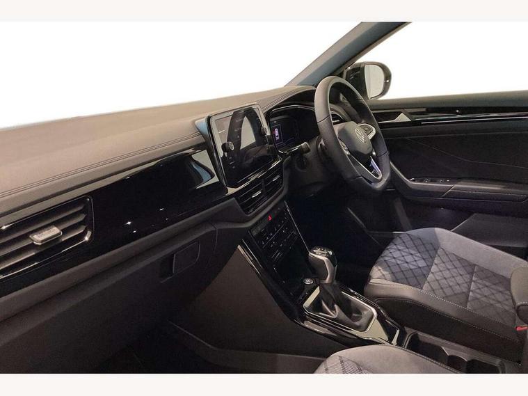 10.25" Digital cockpit pro, Advanced driver attention and drowsiness monitor, Emergency call service, Lane keeping system Lane Assist, Mobile phone interface, Modified key software - reduce switch off time for key status change to Long no motion, Online services, Park assist including front and rear parking sensors, Power assisted speed sensitive steering, Rear view camera, Service interval indicator, Tailgate/trunk lid release from outside, Think blue trainer driver tips and journey analysis, Warning sound and light for front seatbelts unfastened, Wireless app connect, Battery regeneration during braking, Rear shock absorption chassis with increased ride height, Start/stop function with battery regeneration, DAB Digital radio, Diversity antenna for FM reception, Music playback - MP3, WMA and AAC files, SD card slot, Simultaneous pairing of 2 compatible mobile devices, Title and cover art display, We Connect and We Connect Plus functionality, Advanced dynamic light assist for LED matrix headlights, Auto dimming interior rear view mirror, Automatic hazard lights activation under emergency braking, Black roof rails, Dynamic cornering light, Dynamic headlight range control with self adjusting whilst driving, Electrically adjustable and heated door mirrors, Extended roof spoiler, Exterior ambient lighting, Exterior mirrors aspherical on driver side, convex on front passenger side, External USB type C socket and charging sockets, Front windscreen wiper with intermittent wipe and 4 position delay, Heated rear window, Illuminated front grille, IQ LED matrix headlights, LED 3rd brake light, LED rear number plate lights, LED rear tail lights with dynamic turn signal, LED separate daytime running light, Light mode for poor weather, rain, fog or snow, Power windows with comfort operation and circuit breaker, Privacy glass for rear side windows and rear window, R-Line design body coloured bumpers, Rain sensor, Rear exhaust tailpipe, Rear fog light on one side and reversing lights on both sides, Rear side wing doors, Rear wash/wipe with intermittent wipe setting, Remote electrically foldable door mirrors, puddle lights and reverse activated passenger's door mirror, Tilting and sliding panoramic sunroof with rear panoramic sunroof, 12V power socket in centre console, 3 rear head restraints, 3 seat bench in 2nd row, 4 load lashing points in luggage compartment, Air care climatronic air conditoning system with active combination filter and 2-zone temperature control, Chrome plated radiator grille inserts, air vent surrounds and light switch surrounds, Door and side trim panel with leatherette insert, Drawer under drivers seat, Front + rear carpet mats, Front centre armrest, Front comfort sports seats, Front cupholders x 2, Front footwell illumination, Front reading light, Front scuff plates with R Line logo, Front seat back storage pockets, Glove compartment door with light, Instrument lighting, white adjustable panel illumination, Interior ambient lighting and surround lighting, Interior light delay, Isofix child seat preparation, Leather gearshift handle, Load-through provision with cup holder when folded down ('Unsplit rear seat bench, split folding backrest, with centre armrest), Luggage compartment lighting, Non-folding front passenger seat backrest, Single front passenger seat, Stainless steel pedals, Storage compartment in left and right luggage area, Storage compartment in rear doors, Storage compartments in driver and front passenger doors, Sunvisors with illuminated vanity mirrors, Variable boot floor, height adjustable and removable, Black design pack - T-Roc black edition plus, Easy open package with safelock - T-Roc, Sport pack with sports suspension - T-Roc, 3 point height adj front seatbelts + pretensioners, 3 point seatbelts in outer rear with ECE label, ABS, Child locks on rear doors, City emergency braking and pedestrian monitoring, Driver and front passenger airbag with front passenger airbag deactivation, Driver and front passenger safety-optimised head restraints, Drivers seatbelt reminder, Electronic parking brake, Electronic Stability Control (ESC) inc EDL (Electronic Differential Lock) and ASR (Traction Control), Front and rear passengers curtain airbag system including front side airbags, Front disc brakes, Hill start assist, Predictive pedestrian protection, Rear disc brakes, Two tone horn, Tyre pressure loss indicator, Volkswagen roadside assistance, Keyless locking and starting system keyless access with safelock, Gloss deep iron dash trim, 19" Misano black diamond turned alloy wheels with low rolling resistance and anti theft wheel bolts, Tool kit, Trims for alloy wheels, Tyre mobility kit including compressor and sealing foam,