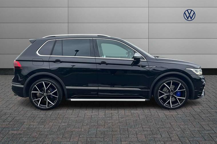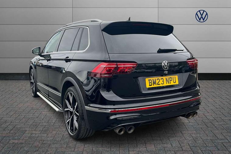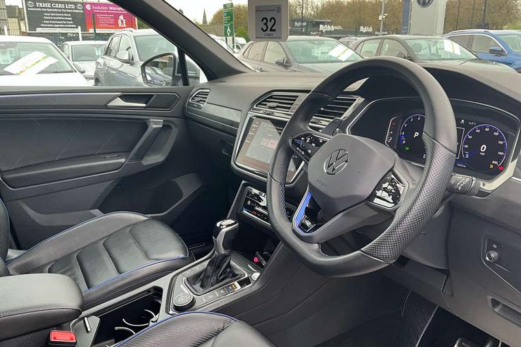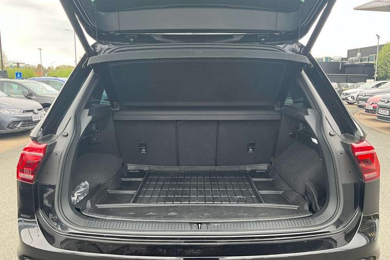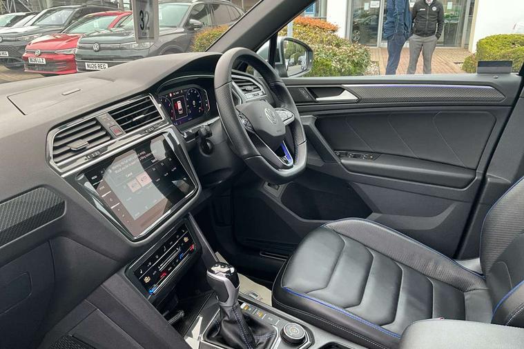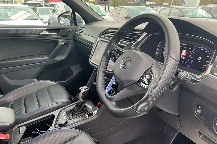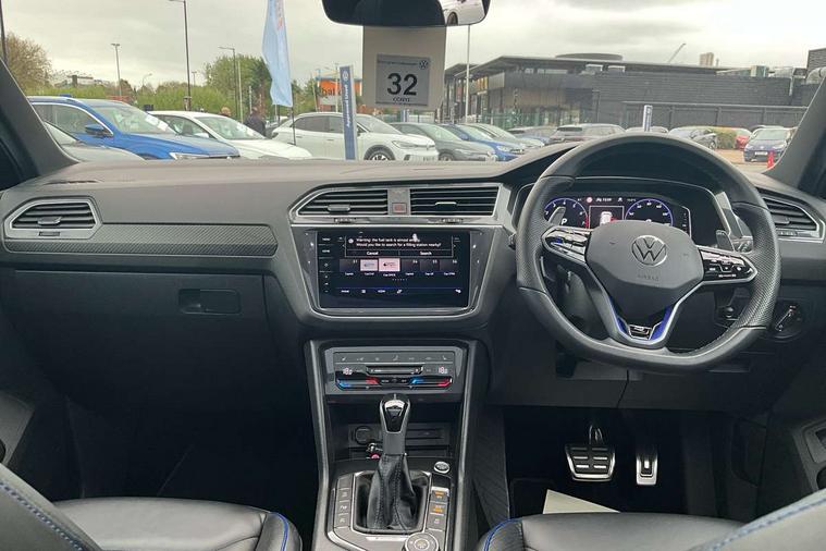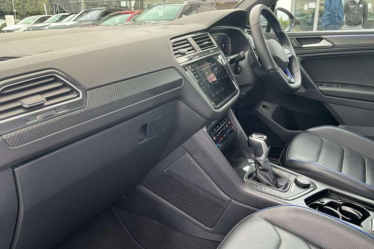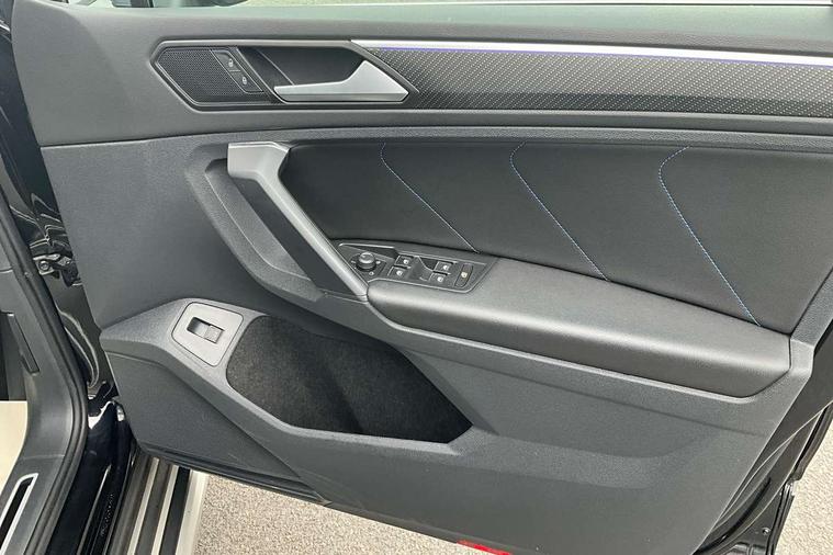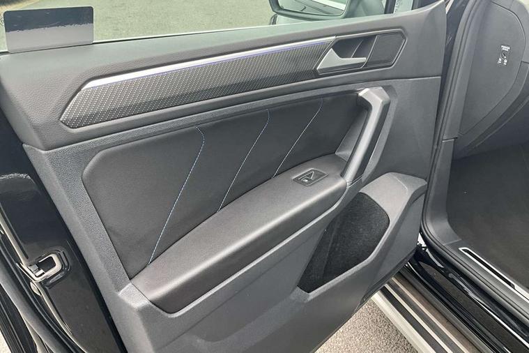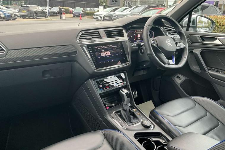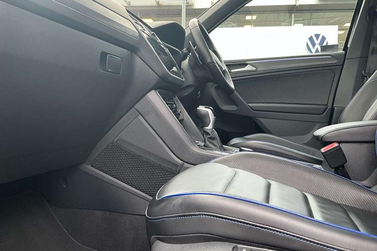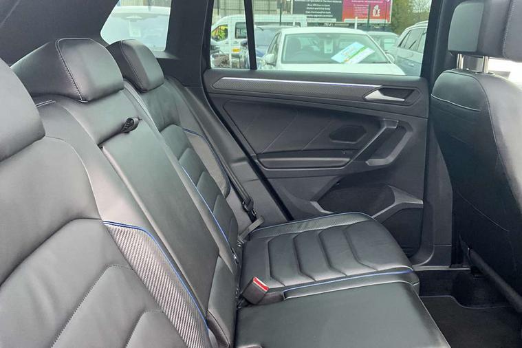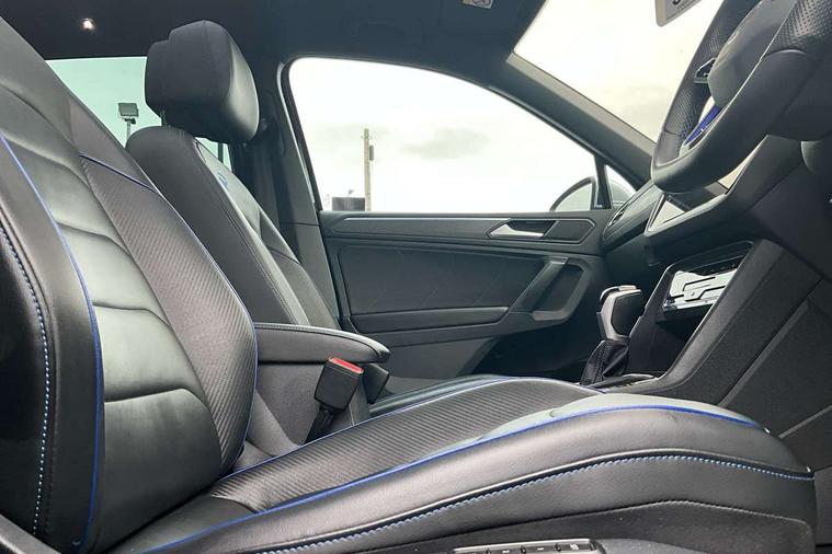 Adaptive cruise control ACC stop and go including speed limiter, App-Connect incl. App-Connect Wireless for Apple CarPlay and Android Auto, Bluetooth phone integration system, Distance control assist, Driver alert system, Driver profile selection, Dynamic road sign display, eCall emergency call system, Electromechanical speed sensitive power steering, Engine start/stop button, Instrument cluster mph speedometer Great Britain, Lane keeping system Lane Assist, Lights on warning, Motorised electric tailgate operated via key fob, drivers door and foot movement under tailgate, Multifunction front facing camera, Outside temperature display, Premium multifunction display with multi colour display, Rev counter, Revision / skills operating concept travel assistant, Service interval indicator, Speed limit display, Start/stop system with regenerative braking, Tailgate/trunk lid unlocking from outside, Trip computer, Warning sound and light for doors and tailgate open, ACC - Adaptive chassis contol with adaptive dampers, All wheel drive - 4Motion, Battery regeneration during braking, XDS electronic differential lock for improved traction and handling, Diversity antenna for FM reception, SD card slot, Simultaneous pairing of 2 compatible mobile devices, SMS functionality - read, compose and send SMS messages using touch-screen display, Title and cover art display, USB C ports, Auto dimming interior rear view mirror, Automatic headlight control system, Body colour door handles, Body coloured door mirrors with integrated indicators, Chrome matt mirror covers, Chrome moldings on the side windows, Coming/leaving home lighting function, Dynamic headlight range control, Front and rear electric windows, Front illuminated door sills with R logo, Heated rear window, High level 3rd brake light, IQ light-Adv high beam, Dynamic light assist for LED matrix headlamp+LED separate DRL+DCL, dark red rear LED tech, Poor weather light+ cornering light, Laminated safety glass windshield, heat and sound insulating, LED rear number plate lights, License plate carrier in front and rear, Poor weather light and cornering light, Privacy glass for rear side windows and rear window, R-Logo light projection, R-Logo on radiator grille with side panels and rear, R-specific diffuser, painted black with cut out for trailer hitch, R-Specific front and rear bumpers, Rain sensor windscreen wipers, Rear fog lamp, Rear side wing doors, Rear spoiler in R style, Rear windscreen washer and wiper with interval delay, Side and rear windows in heat insulating glass, Silver anodised roof rails, Trailer Stability Programme, Windscreen wipers/ intermittent wipe + 4 position delay, 12V outlet in center console rear and in luggage compartment, 12V outlet in front and tray, 2 cup holders in front, 2 LED front reading lights, 2 LED rear reading lights, 3 bench rear seats in 2nd row, 3 rear headrests, 4 load lashing points, 40:20:40 split folding rear seats, Air Care Climatronic 3 zone automatic climate control with enhanced air filter and controls in the rear, Backrest release for left front seat, Black headlining, Climate control unit rear with touch function, Door and side trim panel in foam film, insert in leatherette, Floor mats with R-Logo and stitching, Front centre armrest, Front footwell illumination, Front seats head restraints (x-adjustment), Height adjustable front seats, Height/reach adjust steering wheel, Instrument lighting white adjustable panel illumination, Interior light with delay, Isofix Preparation 2 Rear child seats, Leather gear knob, Lighting door sill trim at front with R Logo, Lockable cooled glovebox, Luggage compartment lighting, Luggage net, Pedals and footrest in stainless steel, R Specific key caps, R-specific sport skin with R Logo in active Info dsiplay, R-taster (direct selection of race mode/ flap control), Rear bench seat asymetrically split folding, longitudinally movable and folding with load-through hatch and center armrest, Remote unlocking for rear seat backrest, Removable luggage cover, Removable rear headrests, Safety optimised front head restraints, Single front passenger seat, Sliding/reclining rear seats, Standard rear seat release, Storage compartment in driver's door, Storage compartment in passenger's door, Storage compartment in rear doors, Storage compartments in luggage area left and right, Storage tray on dashboard, Sun visors with illuminated vanity mirrors, Top sports seats integrated headrest, blue R-Logo in front seats, seat centre panels and outer rear seats in fabric inner side bolster art Velors, Variable boot floor, height adjustable and removable, Easy open and close pack with safelock - Tiguan, 3 point seat belt for centre rear seats, 3 point seat belts with seat belt pretensioners for the outer rear seats, Active bonnet, Curtain airbags for front and rear passengers, Driver/Front Passenger airbags, Drivers knee airbag, Electronic parking brake with auto hold, Electronic Stability Control with driver steering recommendation, ABS, ASR, EDL, EDTC and trailer stabilization, Front assist with autonomous emergency braking (for Adaptive Cruise Control ACC up to 130 mph), Front disc brakes, Front passenger airbag deactivation, Front side airbags, Height adjustable front 3 point seatbelts + pretensioners, Hill hold control, Manual child proof rear door locks, Pedestrian monitoring system, Power assisted brakes, Proactive passenger protection system in combination with front assist, Rear disc brakes, Rigid safety cell with front and rear crumple zones, Two tone horn, Tyre pressure monitoring system, Warning sound and light for front seat belts if unfastened, Anti theft alarm system with interior monitoring, backup horn and towing protection, Anti theft wheel bolts, Central locking system with safelock radio remote control and 2 remote control folding keys, Electronic engine immobiliser, Tool kit, Tyre mobility kit Includes 12V compressor and tyre sealant,