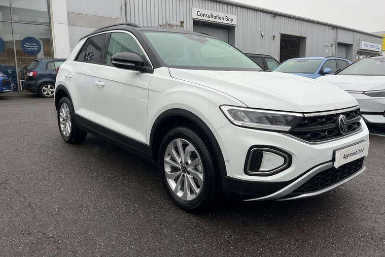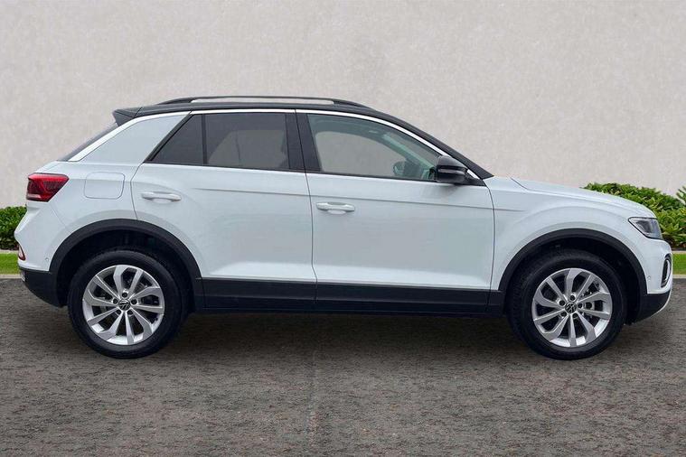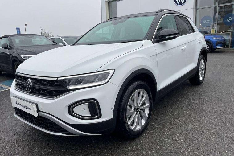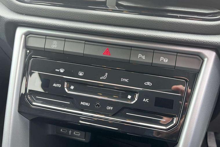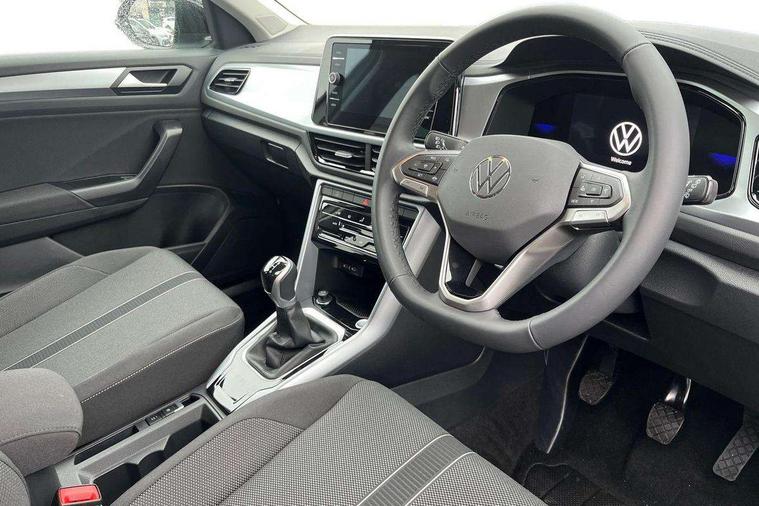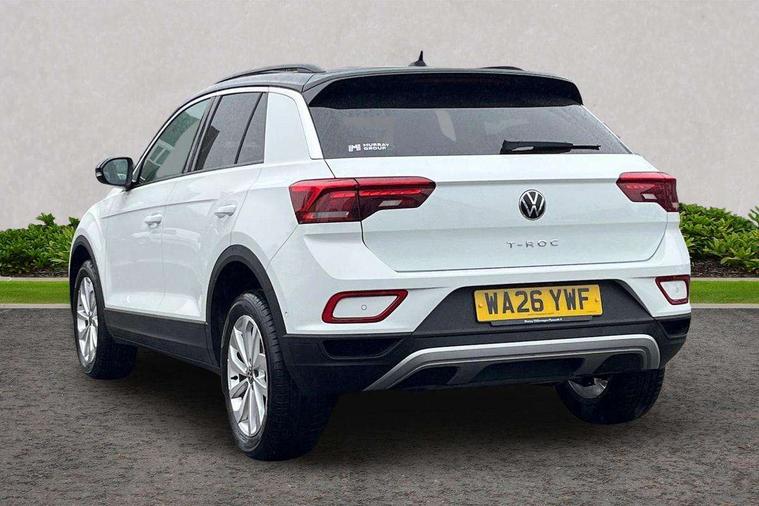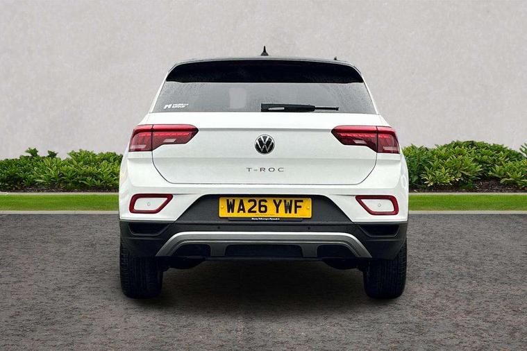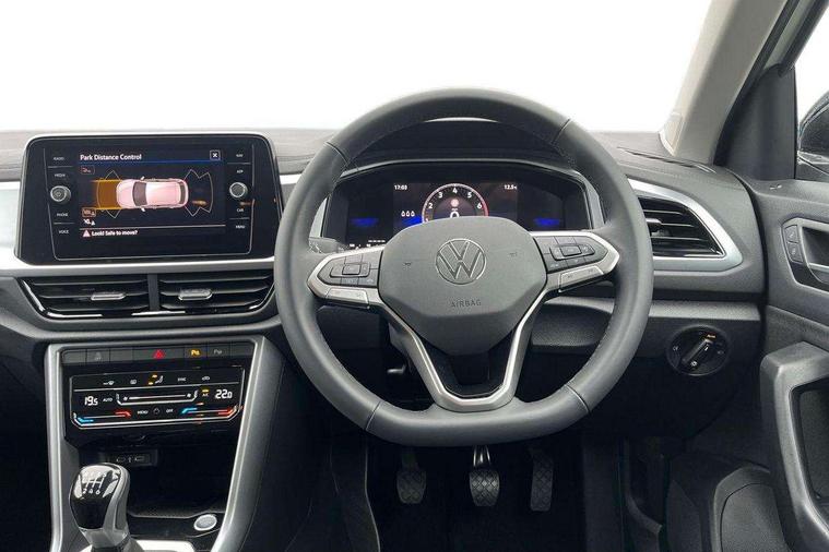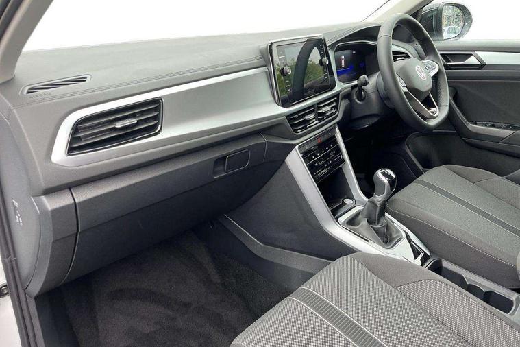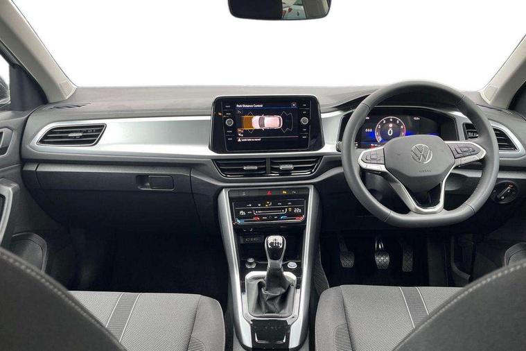 Advanced driver attention and drowsiness monitor, Dynamic road sign display, Emergency call service, Lane keeping system Lane Assist, Mobile phone interface, Modified key software - reduce switch off time for key status change to Long no motion, Online services, Park assist including front and rear parking sensors, Power assisted speed sensitive steering, Rear view camera, Service interval indicator, Tailgate/trunk lid release from outside, Think blue trainer driver tips and journey analysis, Warning sound and light for front seatbelts unfastened, Wireless app connect, Battery regeneration during braking, Front shock absorption, Rear shock absorption chassis with increased ride height, Start/stop function with battery regeneration, DAB Digital radio, Diversity antenna for FM reception, Music playback - MP3, WMA and AAC files, SD card slot, Simultaneous pairing of 2 compatible mobile devices, Title and cover art display, We Connect and We Connect Plus functionality, Auto dimming interior rear view mirror, Automatic hazard lights activation under emergency braking, Automatic headlight control with LED separate daytime running lights with coming/leaving home function, Black roof rails, Body coloured bumpers and radiator grille with chrome trim and front fog lamps with chrome bezel, Body coloured exterior mirror housings and door handles, Electrically adjustable and heated door mirrors, Extended roof spoiler, Exterior mirrors aspherical on driver side, convex on front passenger side, External USB type C socket and charging sockets, Front windscreen wiper with intermittent wipe and 4 position delay, Heated rear window, LED 3rd brake light, LED rear combination lamps, LED rear number plate lights, Power windows with comfort operation and circuit breaker, Privacy glass for rear side windows and rear window, Rain sensor, Rear exhaust tailpipe, Rear fog light on one side and reversing lights on both sides, Rear side wing doors, Rear wash/wipe with intermittent wipe setting, Remote electrically foldable door mirrors, puddle lights and reverse activated passenger's door mirror, 12V power socket in centre console, 3 rear head restraints, 3 seat bench in 2nd row, 4 load lashing points in luggage compartment, Air care climatronic air conditoning system with active combination filter and 2-zone temperature control, Black stitching for floor mats, Ceramique roof liner, Cloth upholstery, Door and side trim panel in cloth, Drawer under drivers seat, Driver/front passenger seat height adjustment, Front centre armrest, Front comfort sports seats, Front cupholders x 2, Front reading light, Front seat back storage pockets, Glove compartment door with light, Instrument lighting, white adjustable panel illumination, Interior ambient lighting and surround lighting, Interior light delay, Isofix child seat preparation, Leather gearshift handle, Load-through provision with cup holder when folded down ('Unsplit rear seat bench, split folding backrest, with centre armrest), Luggage compartment lighting, Lumbar support for driver's and front passengers seat, Non-folding front passenger seat backrest, Single front passenger seat, Storage compartment in left and right luggage area, Storage compartment in rear doors, Storage compartments in driver and front passenger doors, Sunvisors with illuminated vanity mirrors, Variable boot floor, height adjustable and removable, Driver assistance pack without proactive passenger protection - T-Roc Life/Match, 3 point height adj front seatbelts + pretensioners, 3 point seatbelts in outer rear with ECE label, ABS, Child locks on rear doors, City emergency braking and pedestrian monitoring, Driver and front passenger airbag with front passenger airbag deactivation, Driver and front passenger safety-optimised head restraints, Drivers seatbelt reminder, Electronic parking brake, Electronic Stability Control (ESC) inc EDL (Electronic Differential Lock) and ASR (Traction Control), Front and rear passengers curtain airbag system including front side airbags, Front disc brakes, Hill start assist, Predictive pedestrian protection, Rear disc brakes, Two tone horn, Tyre pressure loss indicator, Volkswagen roadside assistance, Alarm with interior protection, Keyless locking and starting system keyless access with safelock, Pewter matt decorative inserts for intrument panel, centre console and door panels at the front, Trims for alloy wheels,