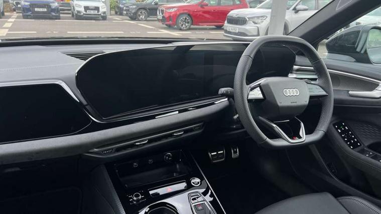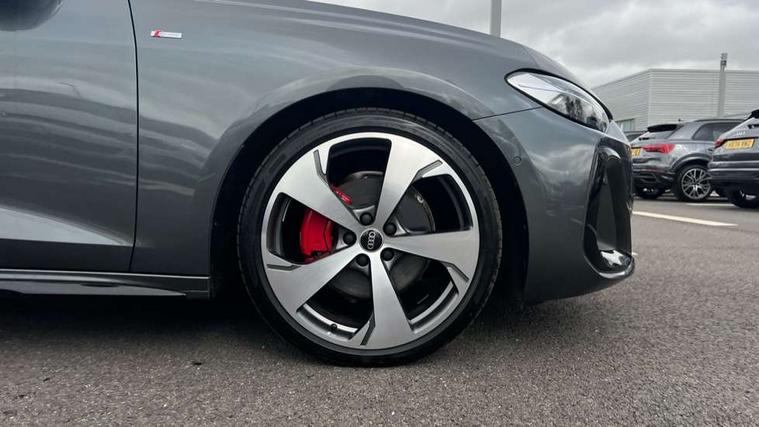 Adaptive cruise control, Advanced driver attention and fatigue montior, Audi application store, Audi assistant, Audi connect emergency call and service, Audi drive select, Audi virtual cockpit plus with 11.9" OLED colour display, Automatic start/stop system with coasting functionality, Camera based traffic sign recognition, Intersection assist, Lane change assistant with exit warning system, rear cross traffic alert and rear turn assist, Lane departure warning with emergency assist, MMI 10.9" front passenger touch display, MMI navigation plus with high resolution 14.5" OLED touchscreen colour display, Park assist plus, Parking system plus with 360 display, Progressive steering with servotronic, Smartphone interface, Swerve assist and turn assist, Top view camera, Traffic sign based speed limiter, Sports suspension lowered by 20mm, 2 USB-C ports in both the front and rear, Audi sound system impressive sound with 8 loudspeakers including centre speaker and subwoofer, 6-channel amplifier with a total output of 180 watts, DAB digital radio reception, Smartphone compartment with wireless charging, Aluminium window trims, Auto dimming rear view mirror, Black door handles, Black roof rails, Dark chrome-plated tailpipe trims, Door mirrors - electrically adjustable, heated, folding and auto dimming on both sides, Front and rear electric windows, Front door sill trims with aluminium inlays, illuminated with 'S' logo, Headlight cleaning system, High beam assist, LED daytime running lights, LED rear lights pro incl. dynamic rear indicators and illuminated light strip with animated coming and leaving home function, LED third brake light, Matrix LED headlights with eight light signatures selectable via the MMI or the myAudi app, Privacy glass, Rear and side windows with heat insulating glass, Rear side wing doors, Rear wash/wipe, S Line badges on the front wings, S line bumpers, radiator grille and diffuser in phantom black and diffuser insert in matt anthracite, White rhombus logo projection light in exterior mirrors, Windscreen with acoustic glazing, 3 rear headrests, 3 seat rear bench, 3 spoke leather steering wheel with multi-function buttons with touch control, flattened on top and bottom, with S badging and contrast stitching, 3-zone automatic climate control, 40:20:40 split folding rear seat bench with centre armrest and cup holders, Comfort front centre armrest, Electrically adjustable front seats, Front and rear floor mats, Front sport seats with integrated headrest and S embossed logo, Headlining in black cloth, Heated front seats, i-Size child seat mounting on the front passenger side and outer rear seats, i-Size and top tether on the outer rear seats, Luggage compartment lid, electrically opening and closing, Manual steering column height and depth adjustment, Memory function for driver seat, Single front passenger seat, Stainless steel pedals and footrest, Steering wheel grips in perforated leather and shift paddles, Ambient lighting package plus - A5, Black styling package plus - A5, 3x3 point rear seat belts, Acoustic vehicle alerting system, Convenience key with safelock, Driver airbag, Electric child safety locks, First aid kit with warning triangle and vests, Front emergency brake assist, Front passenger airbag, Front passenger airbag deactivation, Hill hold assist, Occupant detection in rear seat area, Proactive passenger protection system for front, sides and rear, Red brake calipers, Seat belt monitoring with rear seat occupant reminder, Side airbags in front and rear with head airbag system and front interaction airbag, Tyre pressure loss indicator, Anti theft alarm, Anti-theft wheel bolts, Keyless Go, Accent surfaces and control buttons in gloss black, Black dashboard with contrast stitching, Softwrap in Dinamica with contrast stitching, Upper and lower interior elements in dinamica microfiber, 20" 5 arm fold design Audi sport alloy wheels in silk matt grey and gloss turned finish, Tyre repair kit,