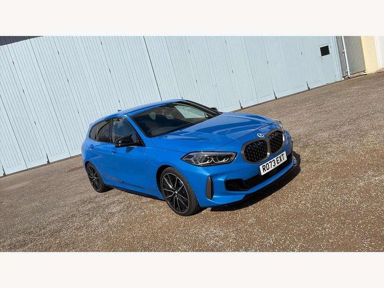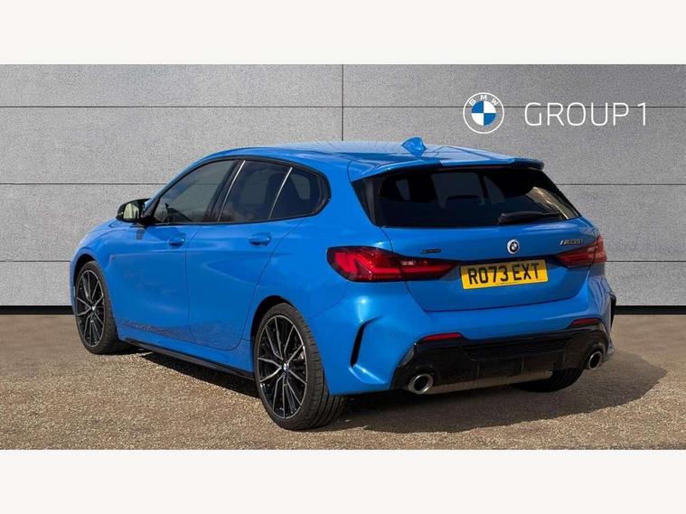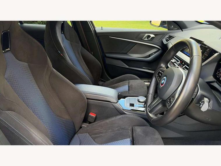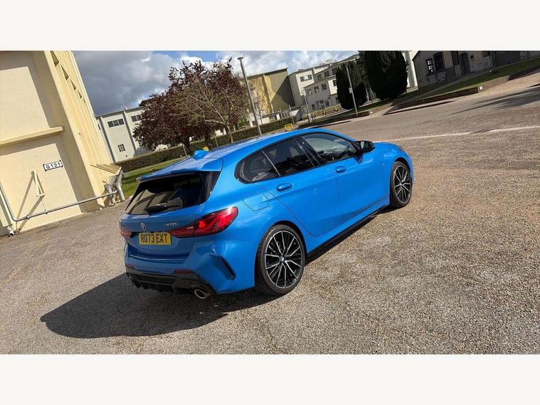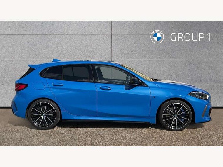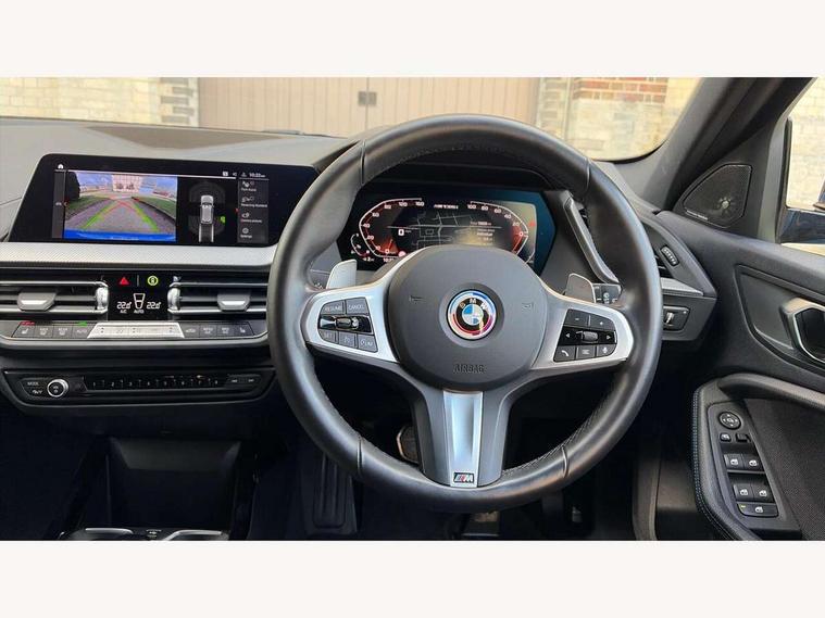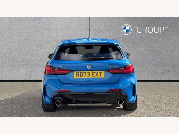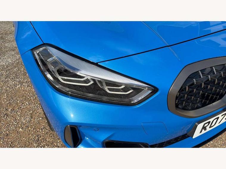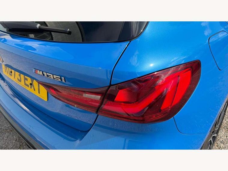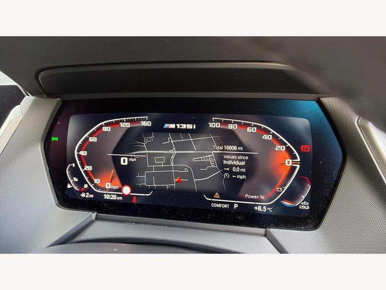 Active guard plus, Attentiveness assist, BMW ConnectedDrive online services, BMW Teleservices, Check Control warning system for monitoring of lights and door/luggage compartment open warning, Cruise control with speed limiter, Eco pro mode, Electric power steering, Electro hydraulically controlled multi-plate clutch transfers drive to rear axle and with power take-off device located on the front differential., Energy efficient operating strategy, Front axle single joint with specific axle kinematics to minimise drive influences on steering + provide increased rigidity agile driving behaviour, Gearshift time display in manual mode, Integrated owners handbook, Lane departure warning system, M Sports steering with M135i xDrive specific settings, Oil sensor for level and grade, On board computer, Optimum shift indicator, Personal Profile, Pull away assistant, Rigidly mounted rear subframe - Multi link construction with separate spring / damper configuration and excellent driving characteristics, Speed limit Info including no-overtaking indicator, Sporty fast gear shifting in sport mode, Aluminium lightweight construction, Anti roll bar front and rear, Balancer shaft, Double VANOS, Drive Performance Control, Eight speed sport automatic transmission with gearshift paddle switches, Electronic differential lock, Electronic selector lever, Engine cover with M performance designation, High precision injection, Larger fuel tank capacity (50 litres), Launch control, M135i specific heavily de-throttled engine intake air guide, M135i specific high-performance cooling package, M135i specific larger turbocharger with integrated divert-air valve, Petrol Particulate Filter, Twin tube gas filled shock absorbers with degressive characteristic curve, VALVETRONIC engine management, Variable, stepless and infinitely adjustable distribution of drive torque between the front and rear axles, xDrive intelligent all wheel drive with M135i specific reinforced components, DAB Digital radio, Auto dimming rear view mirror, Automatic headlight beam throw control, Automatic windscreen wipers and automatic headlight, Body colour door handles, Body colour roof trims, Cerium grey exterior mirror caps, Direction indicator side lights in exterior mirrors, Electrically adjustable exterior mirror with mirror adjustment switch on drivers armrest and aspheric on driver side, convex on passenger side, Exhaust tailpipe, Cerium Grey with bevelled finish - twin, round 100mm, left and right split, Fading support, Folding side mirrors with auto dimming/folding wing mirrors with auto dimming, Follow me home headlights, Front and rear bumper system with replaceable deformation elements, Front and rear electric windows with open and close fingertip control, anti trap facility and comfort closing, Front door sill finishers with M135i designation, Green tinted heat protection glazing, High gloss shadowline window frame, Recess cover mirror frames and B/C pillar embelisher trim, High level third brake light, Integrated front windscreen with washer jets, Kidney grille frame in Cerium Grey with Mesh design, LED daytime running lights, LED eyebrow turn indicators, Lightweight engineering, M logo designation side in cerium grey, M Performance exhaust system with valve control and minimised exhaust back pressure, M Performance specific setup, M Sport spoiler, Matt black air guide grilles, Matt black wheel arch trim, Model designation on electric bootlid includes xDrive designation for M135i xDrive, Nearside reverse light in rear light cluster, Preparation for high beam assistant, Rear fog lights, Rear side wing doors, Rear window wiper, Reinforced crank drive, new pistons and adapted con rods, Shark fin antenna, Trailer stabilisation logic, Visible VIN plate, Welcome lighting, 12V power socket in front centre console with blanking plug, 3 rear seat head restraints, 3 seat bench in 2nd row, 3 spoke sports leather steering wheel with black leather and stitching, pearl chrome decorative finish, specific M Badge, Anthracite headlining, Black boot net with lashing eyes, Cargo function on 2nd seat row, Child seat ISOFIX attachment for two outer rear seats and front passenger seat with anchorage points, Conditioned based service, Driver and front passenger backrest net on rear, Driver and front passenger seat heating, Driver side folding compartment in instrument panel, Folding rear clothes hook, Four grab handles integrated in roof lining, Front and rear door pockets with bottle holders, Front and rear side armrest integrated into door trim, Front armrest, Front M sports seats, Glove compartment, Height adjustable front head restraints, Luggage compartment for bag hooks on left and right, foldable luggage compartment liner and four lashing eyelets, Manual adjust steering wheel, Multi-function controls for steering wheel, Single front passenger seat, Storage compartment in centre console, Storage compartment in luggage compartment, Stowage of the parcel shelf in luggage compartment trim, Sun visors with vanity mirrors and insert tab, Two front centre console cupholders, Two zone automatic air conditioning, Type C two USB ports in rear centre console, Velour floor mats, Additional interior lighting pack - 1 Series M135i, BMW live cockpit professional pack- 1 Series, Connected pack professional - 1 Series, Interior lights pack - 1 Series, M Sport exterior styling aerodynamics pack - 1 Series 135i, 2 tone horn, 3 point seatbelts on all seats, front pyrotechnic belt tensioners, stopper and belt force limiters, rear coded belt buckles, Airbags - Front driver/passenger, front and rear curtain head protection, front side, manual deactivation of front passenger airbag, Anti lock braking system (ABS) with brake assist, BMW emergency call, Brake drying, Braking readiness, Child proof locking system in rear door, City braking function, Comfort modes, Cornering brake control, Crash sensor activating of airbags, Unlocking doors, hazard warning lights, interior light
