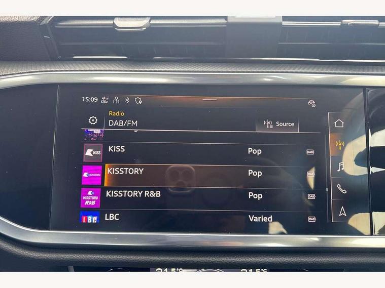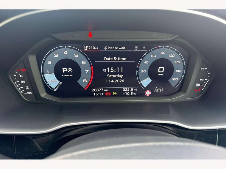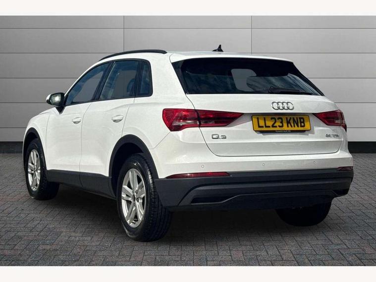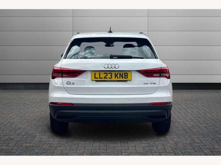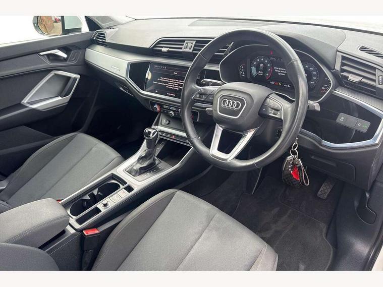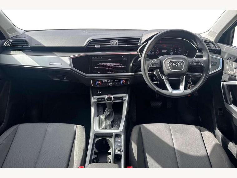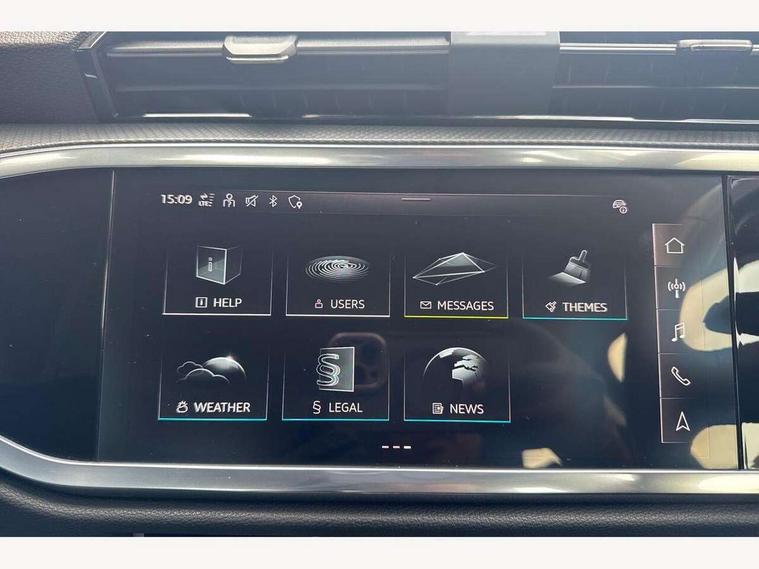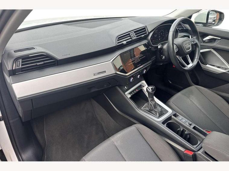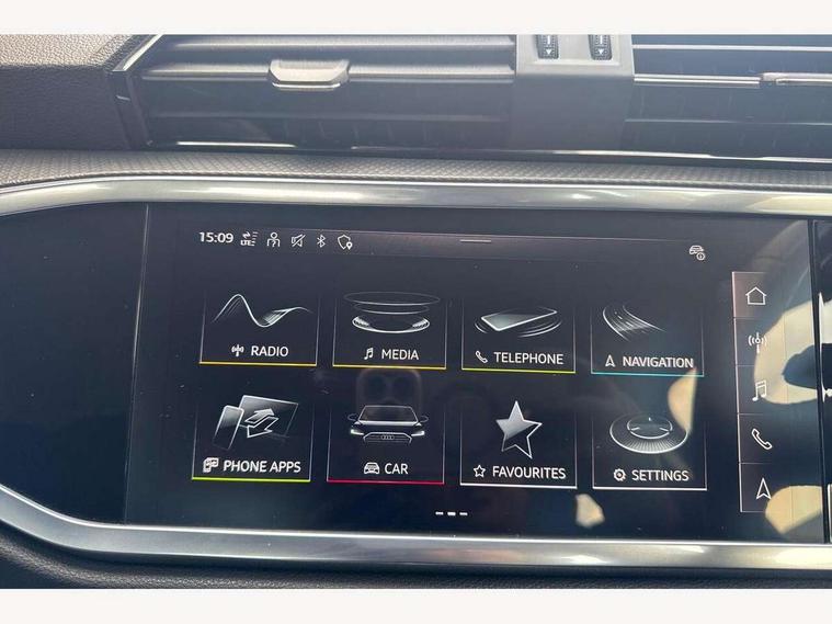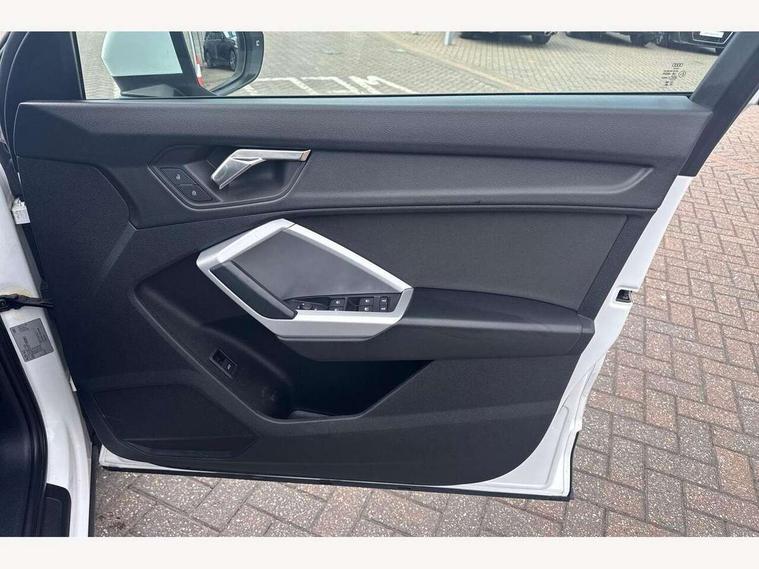 Amazon alexa Integration, Audi drive select, Audi lane departure warning, Audi smartphone interface includes wireless Apple carplay/Android Auto, Audi Virtual Cockpit - 10.25" display, Bluetooth interface, Camera based traffic sign recognition, Legal emergency call, MMI Navigation Plus with high resolution 10.1 inch touchscreen colour display, Power operated tailgate, Progressive steering, Service interval indicator, Start stop system with recuperation, Voice control system with natural language interaction, Standard suspension, 2 USB-C ports with charge and data functions, 6 passive loudspeakers, DAB digital radio module, Acoustic windscreen, Auto dimming frameless rear view mirror, Black roof rails, Body colour door mirrors, Diffuser in grained anthracite, Electrically folding, adjustable and heated door mirrors with integrated LED side indicators and kerb view function for passenger side, Exterior bumper with wheel arch trims and side sill trims in grained black matt, Front and rear electric windows, Grained radiator protective grille, Halogen rear lights, LED headlights with LED daytime running lights, Rain and light sensors, Rear side wing doors, Rear wiper, Third brake light, Variable front intermittent wipers, 12V socket in rear centre console, 3 seat bench in 2nd row, 3 spoke multi-function leather steering wheel, 40:20:40 folding with manual adjustment for 60:40 forwards/backwards position and backrest angle, Dual zone electronic climate control, Front and rear floor mats, Front and rear headrests, Front and rear roof module including reading lights, Front centre armrest, Glove compartment lighting, Height and reach adjustable steering wheel, ISOFIX child seat mounting for front passenger with airbag deactivation and outer rear seat including top tether attachment point for outer rear seats, Luggage compartment light, Lunar silver cloth headlining, Manual front seats with height adjustment, Single front passenger seat, Stainless steel luggage compartment sill finisher, Non smoking pack - Q3, 3x3 point rear seatbelts, 6 airbags - Driver, front passenger, curtain and side windows, Audi pre-sense front with pedestrain and cyclist recognition, Electrically operated child locks on rear doors, Electromechanical parking brake, Electronic stabilisation control including ABS, ASR and EDL, Front seatbelt reminder, Hill descent control, Hill hold assist, Pre sense basic, Seatbelt monitoring, Tyre pressure warning, Warning triangle and first aid kit, Anti theft alarm, Anti theft wheel bolts, Immobiliser, Remote central locking, Detail dashboard around MMI touch colour display in glass look, black with surround in aluminium look, Micrometallic silver inlay, 17" 5 twin spoke design alloy wheels,