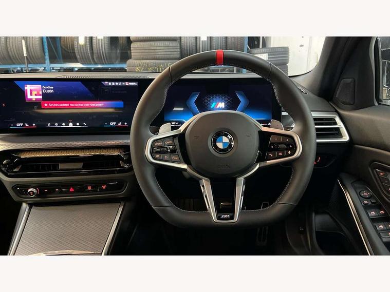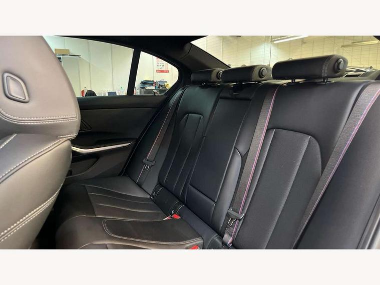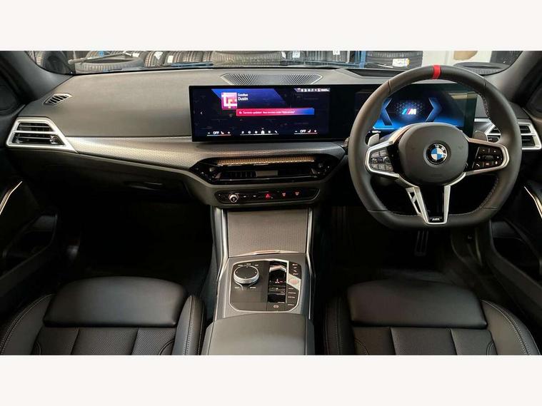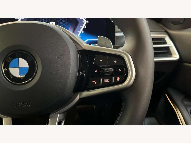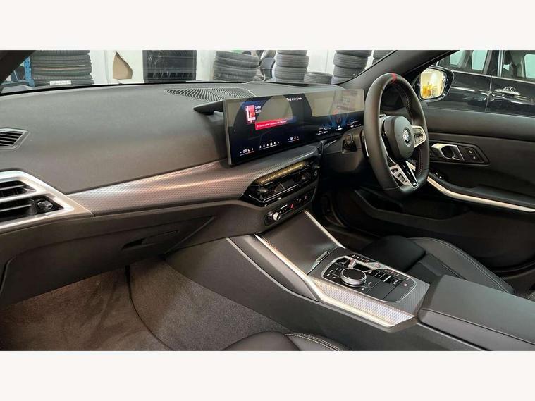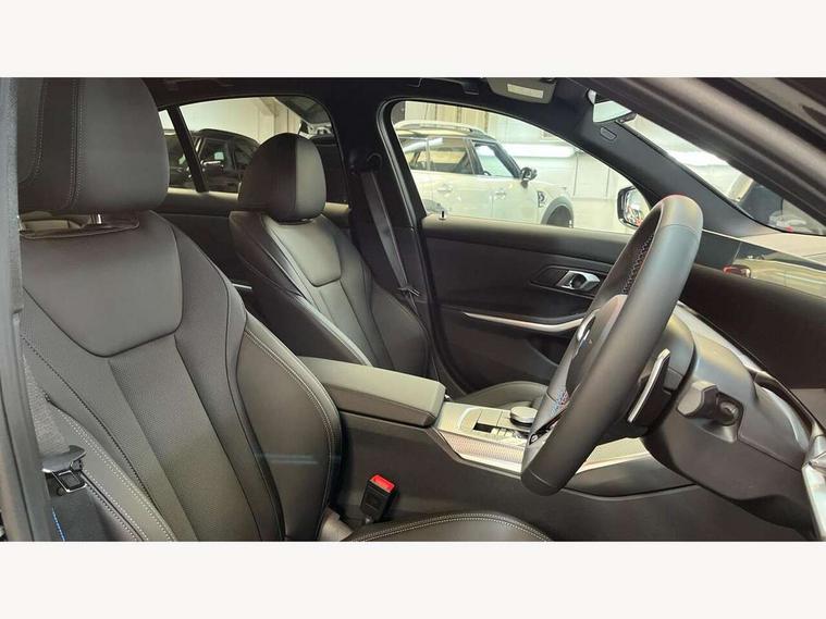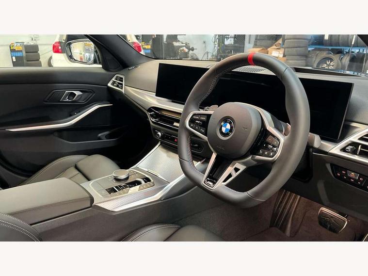 Active guard plus, Attentiveness assist, Automatic Start/stop button, Bluetooth Wi-Fi interface, BMW iDrive, BMW Teleservices, ConnectedDrive Services - last state call, Intelligent voice assist, 2 USB, 4G LTE connect, Live cockpit plus with Navigation + 12.3" instrument display + 14.9" display, Intelligent voice assist, 2 USB, 4G LTE connect, Oil sensor for level and grade, Personal e-SIM, Shifting point display, Variable sport steering, 48V Mild hybrid technology, Double joint spring strut front axle, Electronic differential lock control (EDLC), Fuel tank breather system, Steptronic Sport automatic transmission with steering wheel mounted gearshift paddles launch control and xtreme drive lever control, DAB tuner, Auto dimming rear view mirror, Automatic headlight beam throw control with load dependent regulating reaction, dynamic compensation of braking dive and acceleration squat, Bi-LED Low and high beam headlights, BMW emblem, engine compartment lid and tailgate, Body colour roof fin, Door sill strips, Electric windows - front and rear, with open/close fingertip control, anti-trap facility and comfort closing, Fading support, Follow me home headlight function, Front and rear bumper system with replaceable deformation elements, Front apron plastic in body colour, Fuel filler flap - right rear in body colour, Heat protection glazing on front windows and windscreen, High gloss chrome kidney frame with high gloss black kidney struts, LED 3rd brake light, LED daytime running lights, LED rear lights, LED turn indicator, Licence plate panel integrated into front bumper and tailgate, M high gloss shadow line exterior trim, M Sport spoiler in body colour, Matt black B-pillar finsher, Matt black window recess cover, One piece front bumper cover including towing eye cover in body colour, Rain sensor with automatic headlight activation, Rear boot, Rear side wing doors, Reversing lights, Side frame decorative moulding black matt, Sun and heat protection glass dark tinted on rear windows and windscreen, Trailer stabilisation logic, Visible exhaust tailpipe finisher, Welcome lights in interior and door handle area, Windscreen washer jets, 12V power socket in front storage compartment, 2 front cupholder in centre console with clamping elements and matt black inlay, 3 seat bench in 2nd row, 3 spoke M Sport multifunction flat bottom leather steering wheel, 3 zone automatic air conditioning, 40:20:40 split folding rear seat with loading system, Ambient inside door handle light, Ambient light design projected onto the left and right entering and exiting area, Ambient lighting front and rear with 9 selectable colours, Ambient storage compartment lighting in the centre console, Anthracite headlining, Armrest integrated in front and rear door trim + front centre console armrest, BMW ID, Contour lighting in instrument panel and door trim panel, Cruise control operation in steering wheel, Driving experience mode switch, Dynamic ambient lighting for welcome, goodbye, open doors, phone call, Electric memory seats, Folding rear centre armrest with 2 cupholders, Front ambient footwell lighting, Front and rear headrests, Front and rear velour floor mats, Front reading light, Heated front seats, Height adjustable mechanically and infinitely variable steering column, Illuminated armrest storage compartment, Illuminated glove compartment, Illuminated luggage compartment, Lashing eyelets in luggage compartment, Single front passenger seat, Sunvisors with illuminated vanity mirrors and ticket pocket, Through load system, Toolkit located in luggage compartment, Connected pack professional - 3 Series Saloon/Touring, Interior and exterior mirror pack - 3 Series Touring/Saloon, M sport exterior styling pack - 3 Series Saloon/Touring, Parking assistant pack - 3 Series, 3x3 point rear seatbelts, ABS, Automatic Stability Control (ASC), BMW emergency call, Child locks on rear doors, Cornering brake control, Crash sensor activating of airbags, Unlocking doors, hazard warning lights, interior light, safety battery terminal, Drive-off assistant, Driver and front passenger with seat occupancy detection for driver's and passenger side, Driver and passenger side airbags, body protection at side and airbags deploy from seat backrests, Dry braking, DSC - Dynamic Stability Control, Dynamic brake control, Dynamic Traction Control - DTC, Electric parking brake including automatic hold function and automatic release of the parking brake when driving off, Front airbag deactivation, Front airbags for driver and front passenger, Head airbags in 1st and 2nd row, head protection at side, curtain airbags open from headliner above 1st and 2nd row, M Sport brakes with blue calipers M designation in front, Plastic fuel tank, Side impact protection, Tyre pressure sensors, Ventilated front and rear disc brakes, Warning triangle and first aid kit, Alarm system, Centre lock switch, Closing system with central locking, Electronic vehicle immobiliser, Locking wheel bolts, Tyre repair kit,