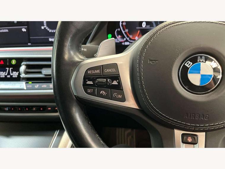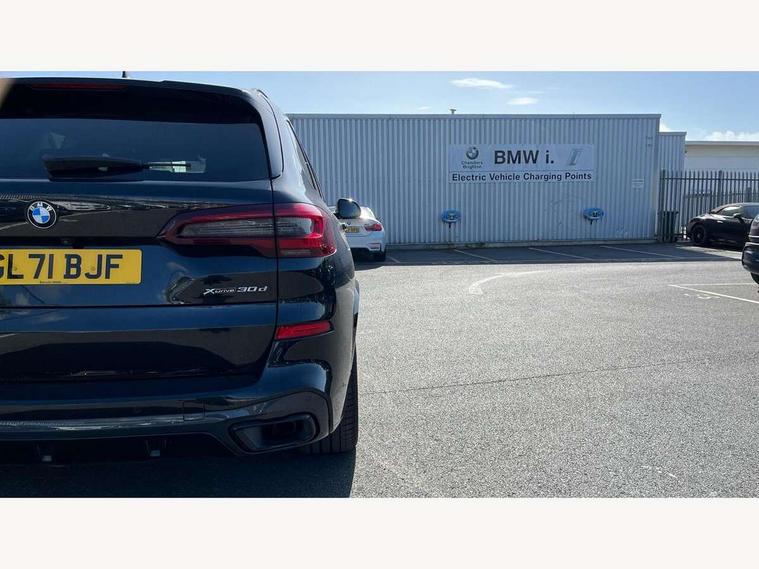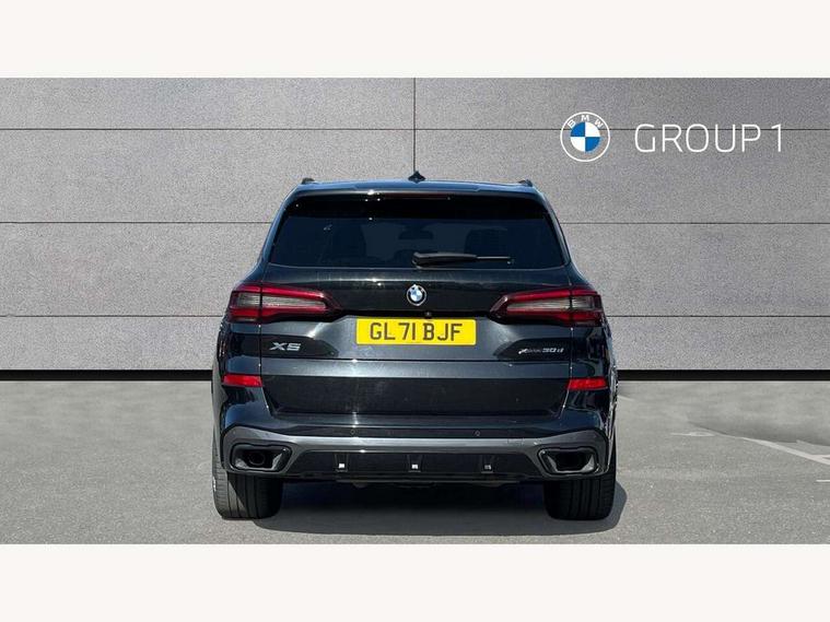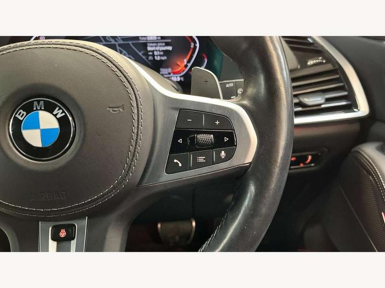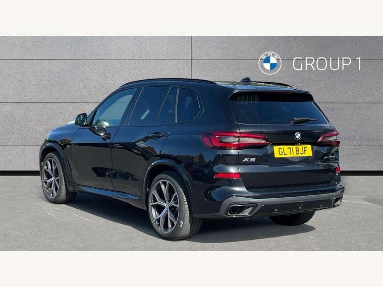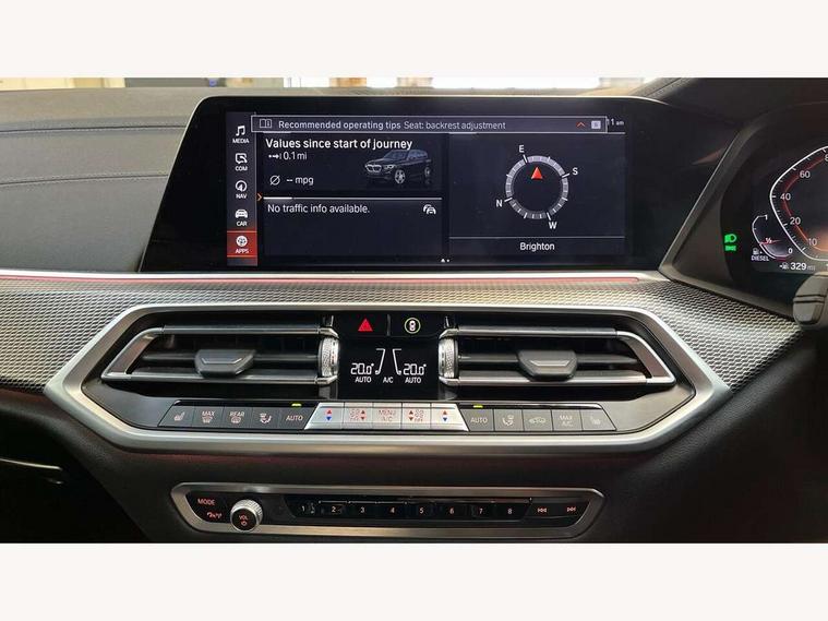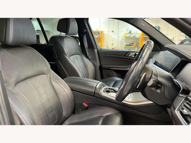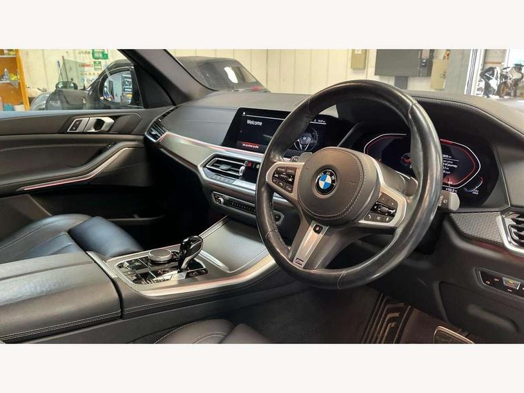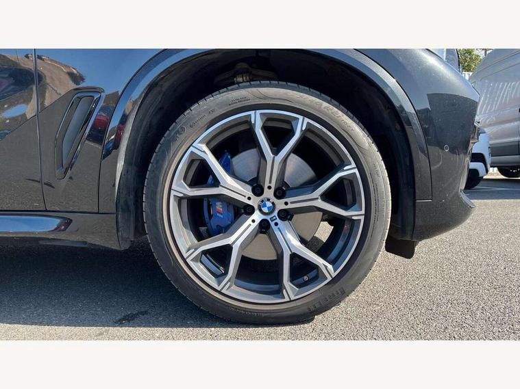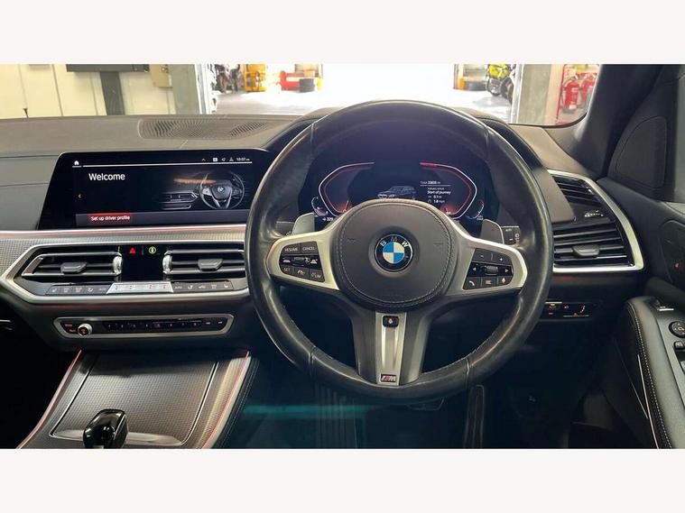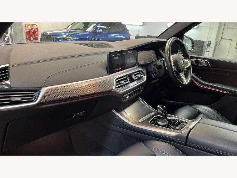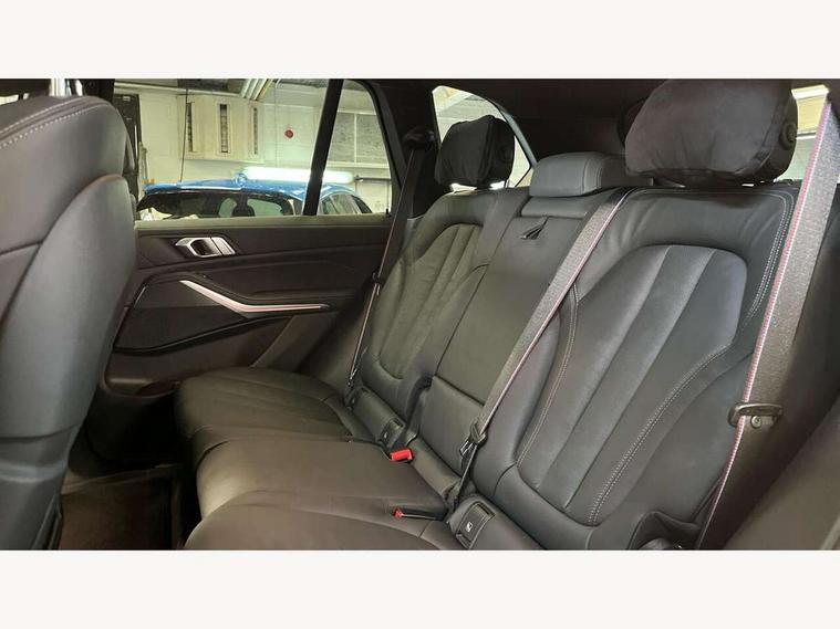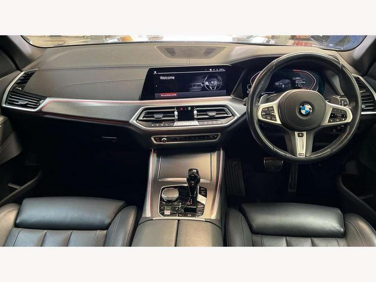 20GB hard disc drive (HDD) memory, Active guard plus, Attentiveness assist, Automatic tailgate with top hinged section open and manual bottom hinged section, BMW ConnectedDrive online services, BMW digital live cockpit professional - 12.3" digital instrument panel and 12.3" CID, with touch/voice command, BMW legal emergency call, BMW Teleservices, Brake force display, Brake pad wear indicator warning light, Cruise control with brake assist, Front/rear park distance control, iDrive touch controller with shortcut buttons, Lights on warning, Oil sensor for level and grade, On board computer inc. average speed, fuel consumption, liquid crystal Info display, journey computer, outside temperature display, personal profile, Service interval indicator, Speed limit info display, Speed limiting function, 48V Mild hybrid technology, Adaptive 2-axle air suspension, Diesel particulate filter, Double wishbone front axle, Drive performance control with ECO PRO comfort + sport mode, Eight speed steptronic sport automatic transmission and gearshift paddles on the steering wheel, Safety battery terminal clamp, Variable vane geometry, DAB Tuner enables digital radio reception, Favourite buttons, USB connection, USB type A 1.5A in cupholder, USB Type C 3A in centre armrest, Active Air Stream kidney grille with high-gloss chrome, Adaptive air flap control bar in high-gloss black, Automatically dimming rear view mirror, BMW Individual high gloss black shadow line roof rails, Body colour bumpers, Body colour door handles, Dynamic brake lights with LED technology, Exhaust tailpipes - single, left and right with Chrome finisher, Follow me home headlight function, Front and rear electric windows with open and close fingertip control, anti trap facility and comfort closing, Heated windscreen washer jets, High beam assistant, High gloss black outer and central air intakes on front bumper with pearlescent chrome finish, High gloss black Side elements, LED daytime running lights, LED rear lights, M aerodynamic body styling, M designation on left and right front side panels, Pearlescent chrome front grille bars, Rain sensor with automatic headlight activation and windscreen wiper control, Satin aluminium side window graphic, Third brake light in rear spoiler, Variable intermittent rear wash/wipe, Welcome light carpet, X5 on left tailgate, xDrive designation on right tailgate, 12V - Power sockets with 2x centre console and 1x luggage compartment, 40:20:40 split folding rear seats, Ambient interior lighting with 6 pre-designed selectable lights including dynamic function, Centre and rear interior light, Child seat ISOFIX attachment with rear outer seats includes top tether, Compartment in front of cupholder, Electric front seat adjustment with driver and front passenger memory function, Electrical steering column with adjustable height and length with activation and control on the steering column, Foldable rear centre armrest with 2 cupholders and storage compartment, Front and rear cupholders x 2, Front and rear door pockets, Front and rear door sill inlays with illuminated BMW M designation, Front and rear side armrest integrated into door trim, Front footwell lights, Front reading lights, Light inside glove compartment, Lockable glove compartment, Luggage compartment floor panel with integral storage tray, Luggage compartment lighting, M leather steering wheel, M specific key, M specific steering wheel, M specific velour floor mats, Make-up mirror lights, Multifunction controls for leather steering wheel, Multifunctional hooks, Rear head restraints, Seat back with flap pocket, Securing rings in luggage compartment, Storage bins on all doors, Storage tray and compartment with cover in centre console, Sunvisors with illuminated vanity mirrors, Toolkit located in luggage compartment, Connected Package Professional - X5, Expanded exterior mirror pack - X5/X5 M, Non-smokers pack - X5, Airbags - driver/front passenger, rear and side, first and second row seats head airbags, front passenger seat airbag deactivation + knee airbag, Anti-lock braking system (ABS), Automatic Stability Control (ASC), Brake drying, Brake energy regeneration, Brake fade compensation, Braking pre-tensioning, Cornering brake control (CBC), Crash sensor activating central locking release, hazard warning lights, fuel cut off, interior lighting + activation of safety battery terminal clamp, Deformation zones - front and rear with door reinforcements and bumpers up to 2.5 mph, DSC - Dynamic Stability Control, Dynamic brake control, Dynamic Traction Control - DTC, Electromechanical parking brake with automatic drive away release and auto hold function, Electronic brake force distribution, Front and rear seatbelts with seatbelt stopper, seatbelt tensioner for front and outer rear seats and belt force limiter, Front head restraints with anti-whiplash, Height adjustable front seatbelts, Hill start assistant, Integrated brake system, M Sport braking system in blue high gloss + blue painted brake calipers with M designation, Mechanical child proof lock on rear doors, Passive protection for pedestrians, Seat occupancy detection for driver and passenger side, Side impact protection, Three 3 point inertia reel seatbelts, Two tone horn, Tyre pressure monitoring system, Ventilated front and rear disc brakes, Warning triangle and first aid kit, Closing system with central locking, Driver and front passenger door centre lock switch, Locking wheel bolts, Thatcham 1 alarm system with remote control and engine immobiliser, Start/stop toggle diamond shaped trim finisher in pearl chrome,