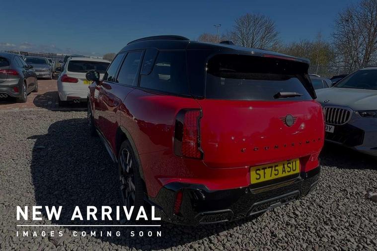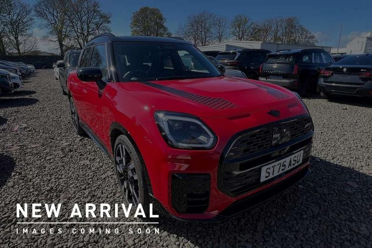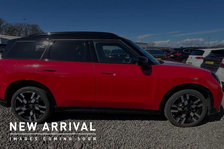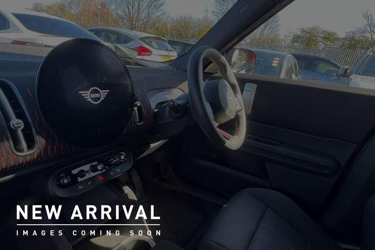 Bluetooth connection, Circular OLED Screen, Compatible mobile phone bluetooth with audio streaming, Cruise Control (DCC), Digital dashboard display, Driving assistant, Driving Assistant Plus Preparation, E-call, Electro-mechanical speed dependant steering assistance, MINI Experience Modes, MINI Head up display, Mini navigation system, MINI TeleServices, Parking assistant in camera and ultrasound based assistance system, rear view camera, parking aid and distance control, Adaptive suspension, Double clutch sports transmission, Larger capacity fuel tank, 6 speakers, DAB Digital radio, Personal eSim, Auto tailgate, Electric adjustable heated door mirrors, Front and rear apron, Front and rear electric windows, Heated rear window, High beam assistant, High gloss hexagonal patterned grille surround, Interior rear-view mirror with automatic anti-dazzle function, LED daytime running lights, LED headlights with extended contents including Adaptable light signatures, LED rear lights, LED third brake light, Rain sensor with auto headlights, Rear roof spoiler with airblades, Rear side wing doors, Rear window wiper, Roof rails, 3 Seat sliding rear bench in 2nd row, Anthracite headliner, Auto air conditioning, Driver and front passenger seat heating, Floor mats, Front armrest, Front headrests, Heated steering wheel, Height and length steering column adjustment, JCW Front sports seats, Lidded storage box in Black/Red knit, Luggage compartment separating net, Perforated Vescin steering wheel, Rear headrests, Seat adjustment for rear seats, Single front passenger seat, Sunvisors with vanity mirrors, Vescin/Cloth upholstery, Wireless charging tray, Interior and exterior mirror package - Mini Countryman, 3x3 point rear seat belts, 6 Airbags - front, side, head and seat belt tensioners, ABS, Brake calipers in Black with JCW badge, DSC - Dynamic Stability Control, Electronic handbrake, Electronic Stability Programme (ESP), Front ISOFIX (iSize), Hill descent control, Hill hold assist, Hill start assist, JCW Sport Brakes, Manual rear child locks, Traction control, Tyre pressure monitoring system, Warning triangle, Alarm system with tilt sensor, monitoring doors, bonnet interior and tailgate, Auto drive away locking, Comfort access system, Deadlocking function, Electronic vehicle immobiliser, Locking wheel bolts, Remote control locking, Start/stop toggle with keyless go, JCW Black/Red dashboard knit, MINI Mobility Kit,
