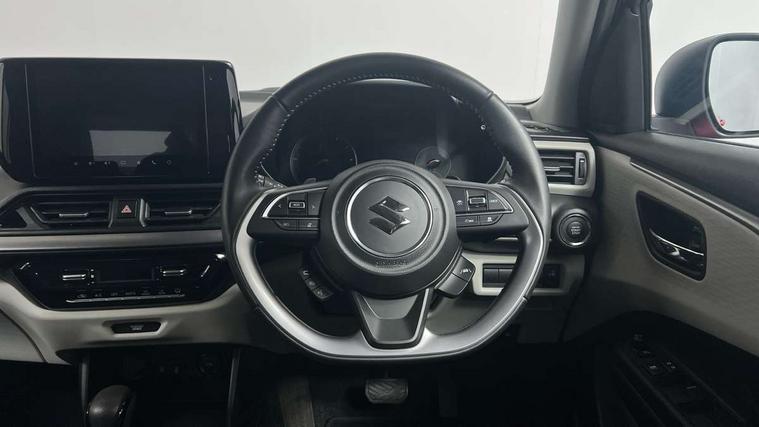 Adaptive cruise control with Stop and Go, Automatic start/stop system, Blind spot monitoring, Colour LCD information display, Digital clock, Driver monitoring system, eCall, Fuel consumption display (average/instantaneous) and range display, Intelligent speed control support, Lane departure prevention, Lane departure warning system, Lane keeping assist (LKA), Low fuel level warning light, Navigation system, Outside temperature display, PAS, Rear cross traffic alert, Rear parking camera, Rear parking sensors, Remote fuel cap release, Smartphone integration with Apple CarPlay and Android auto, Suzuki connect, Tailgate, Traffic sign recognition, Weaving alert, 4 speakers + 2 tweeters, 9-inch infotainment display, Auxiliary input socket, Bluetooth audio streaming, DAB Digital radio, Steering wheel audio controls, USB Type A and C, 'Guide me home' headlamps, 1 speed with intermittent rear wiper + washer, 2 speeds front wiper with intermittent + washer, Automatic headlights, Black coloured A & B pillars, Black Upper and lower front grille, Body colour door mirrors and handles, C pillar trim moulding, Door mirrors with built-in turn signal lamp, Electric door mirrors, Electric folding door mirrors, Electric front windows, Electric rear windows, Green tinted glass, Heated door mirrors, High beam assist, LED daytime running lights, LED High mounted stop light, LED number plate light, LED position lamps, LED projector headlamps, LED rear combination lamp, Manual headlamp level control, Rain sensor, Rear fog lights, Rear privacy glass, Rear side wing doors, Rear spoiler, Side spoiler, 1 cup holder in rear, 12V Accessory socket in front console, 2 cup holders in front, 2 Isofix seat anchors, 3 bench rear seats in 2nd row, 3 rear head restraints, 3 spoke leather covered steering wheel, 60/40 split rear seats, Accessory socket, Automatic air conditioning, Centre console storage, Centre lower box, Child seat tether anchorages x 2, Chrome handbrake release button, Chrome interior door handles, Cloth upholstery, Door pockets with bottle holder, Driver/passenger sunvisors with ticket holders + vanity mirrors, Front cabin lights, Front headrests, Front map light, Front passenger side assist grip, Gearshift paddles, Glovebox, Heated front seats, Heater, Height adjustable driver's seat, Luggage area lamp, Painted interior door trim ornament, Parcel shelf, Passenger seat back pocket, Pollen filter, Rear assist grips x2, Rear heater duct, Single front passenger seat, Tilt adjustable steering wheel, Tilt/telescopic adjustable steering wheel, 3 point ELR seatbelts for centre seat, 3 point ELR seatbelts front and rear, ABS+EBD+Brake assist, Curtain airbags, Driver airbag, Dual sensor brake support, ESP + traction control, Front and rear seatbelt reminder, Front passenger airbag, Front passenger airbag deactivation, Front seat seatbelts shoulder height adjuster, Front seatbelt pretensioners with force limiters, Hill hold control, Rear child proof door locks, Rear seatbelts with pre-tensioners and load limiters, Side airbags with incorporated into front seats, Tyre pressure indicator, Deadlocks, Freewheeling key cylinders, Immobiliser, Keyless entry and start, Light - on and Key in reminder, Locking wheel nuts, Remote central locking, Painted instrument panel ornament, 16" Polished alloy wheels,