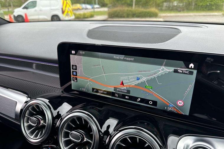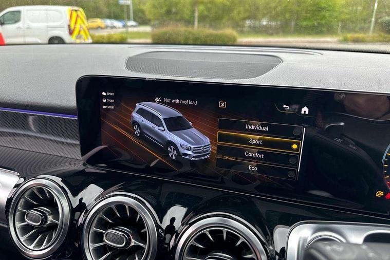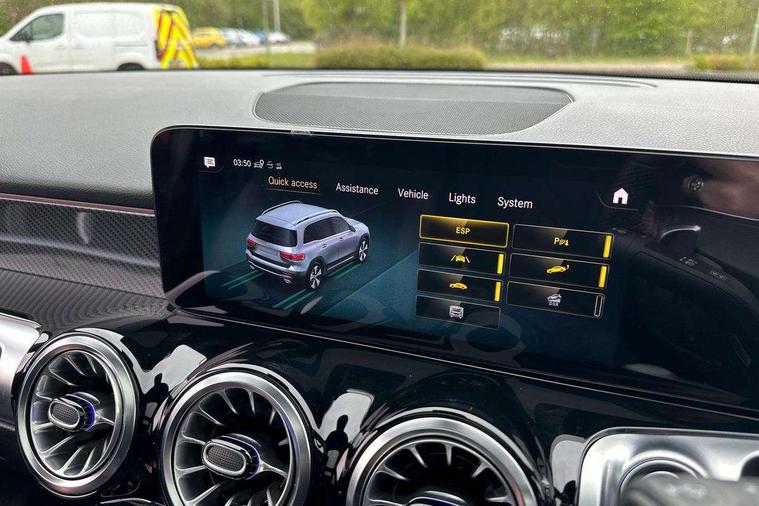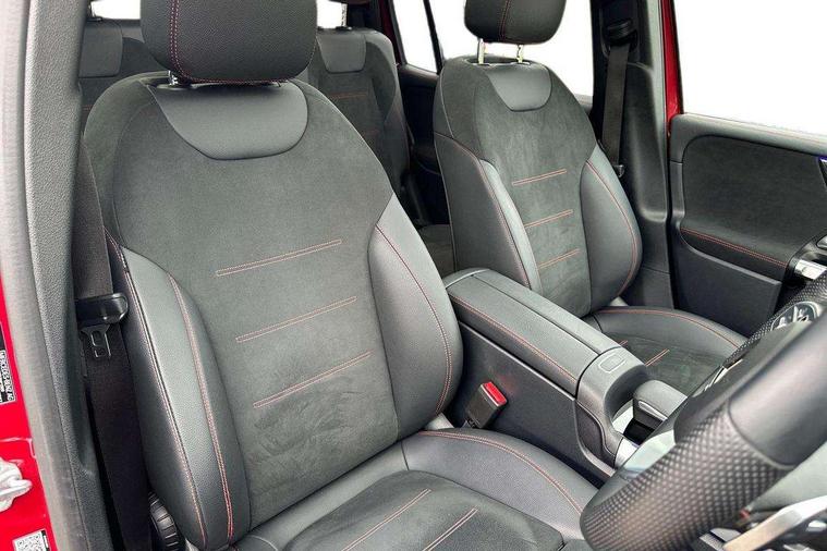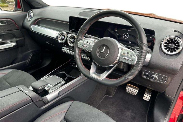 10.25" Digital instrument cluster display screen, 10.25" Digital media screen display, Attention assist - Monitors steering behaviour and long journey fatigue, Brake pad wear indicator warning light, Car wash mode, DYNAMIC SELECT with a choice of driving modes (ECO, Comfort, Sport and Individual), ECO start/stop function, Fluid level warning indicator for fuel, oil, coolant and washer fluid, Hard disk navigation, Hey Mercedes Voice activation, Lamp failure indicator, Mercedes me connect including emergency call system, accident recovery, breakdown and maintenance management, Mercedes me remote services, Outside temperature gauge, Owners manual and service booklet in English, Parameter steering system, Pre-installation of private car share, Radio aerial integrated into front and rear windshields, Service indicator (ASSYST), Smartphone integration with Apple CarPlay and Android auto, Traffic sign assist, Trip computer in multifunction display with current consumption indicator, 23.8 litre AdBlue fuel tank, Comfort suspension, Rear axle multi-link, DAB digital radio tuner, MBUX multimedia system with DAB digital radio and touchpad including satellite navigation, Mercedes Benz sound system (225 W) with 10 speakers, 1 central speaker, speakers on doors, a tweeter on door, one sub woofer + boost amplifier, Pre installation for Mercedes Benz Link, USB (type C) port in front stowage compartment, USB (type C) ports (2) in stowage compartment, Adaptive brake lights, Aerial for GPS, AMG bodystyling door panels black grained with chrome plated inserts, AMG bodystyling front apron with chrome splitter, AMG bodystyling rear apron with diffuser optics and chrome trim element, AMG specific front and rear bumper including underride guard in high gloss chrome, Auto headlights, Beltline strips and weather strip in chrome, Body coloured door handles with chrome insert for keyless entry, Body coloured door mirror caps, Electric adjustable and heated door mirrors with integrated LED side indicators, Electric panoramic glass sunroof, Exhaust system with dual flow exhaust pipes (non-functional), Front and rear electric windows, Headlamp assist automatic headlamp activation, Heated glass rear windscreen + timer control, High level LED third brake light, Interior mirror with black reading lamps and frameless, LED daytime running lights, Multibeam LED headlamps and tail lamp with adaptive high beam assist, Polished aluminium roof rails, Privacy glass with dark tinting on rear side windows and rear window, Radiator grille with pins in chrome and single louvre with chrome insert, Rain sensor windscreen wipers, Rear fog lamp, Rear side wing doors, Rear wiper, Two visible tailpipe trim elements exhaust, 3 seat bench in 2nd row, 3 spoke multifunction sport steering wheel in nappa leather, Air conditioning - Two zone thermotronic luxury automatic climate control with display, AMG sports pedals with brushed stainless steel surfaces and black rubber studs, Artico man-made leather/Microfibre Dinamica upholstery with red contrast stitching, Automatic child seat recognition sensor, Black floor mats with AMG lettering, Black roof lining, Fore/aft adjustment rear seats, Freight packaging with tie-down hooks, Front centre armrest with stowage, Front door sills with illuminated changeable cover, Front passenger grab handle with brushed side silver chrome, Front sports seats with adjustable head restraints, Galvanished gear shift paddles on steering wheel, Heated front seats, Height/reach adjustable steering column, Interior lighting - 64 colour Ambient lighting, Luggage net on driver/front passenger seat backrest, Rear armrest with two integral cup holders for drinks, Rear seat easy entry, Single front passenger seat, Stowage compartment in centre console, Stowage compartment with retractable cover, Third row of seats for two people on rear seat, Touchpad on center console, Twin front cup holders, Two outer rear seat isofix and top tether child seat fixing points, Interior lighting with light and sight pack - GLB, Keyless go pack - GLB, Mirror pack - GLB, Off-road engineering package - GLB, Parking pack - GLB, 3 rear 3 point seatbelts, Active bonnet pedestrain safety measure which detects an impact and raises bonnet by 65mm, Adaptive brake assist with hold function and hill start assist, Airbags - kneebag for driver, Anti-lock braking system (ABS) with brake assist, Childproof locks manually operated for rear doors and electrically operated for rear power windows, Crash responsive emergency lighting, Curve dynamic assist, Driver and front passenger head and sidebags, Driver and front passenger windowbags, Dual stage driver and front passenger airbags, Electronic parking brake, Electronic stability programme with acceleration skid control, Front and rear seatbelt reminder, Front brake callipers with Mercedes Benz lettering, Front passenger seat occupancy sensor, Perforated and ventilated front brake discs, Tyre pressure monitoring system, Warning triangle and first aid kit, Remote central locking and crash sensor with emergency opening function, Thatcham category 1 alarm system with immobiliser and interior protection, Urban guard vehicle protection - Anti theft alarm system, tow away protection with visual and acoustic warning and alarm siren, Vehicle key with decorative surround in chrome, Black air vents with chrome surround, Carbon structure trim, 19" AMG 5 twin spoke light alloy wheels painted in tantalite grey with high sheen finish, Summer tyres, Tirefit tyre sealant kit,