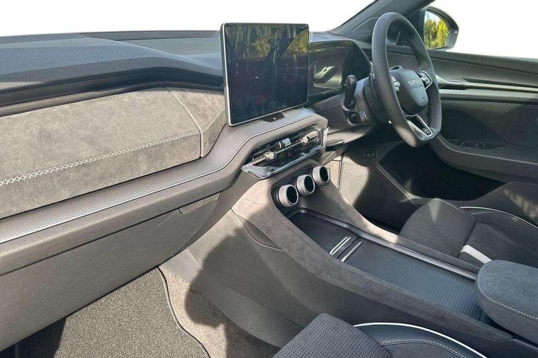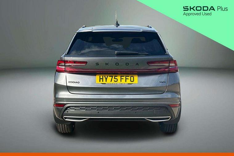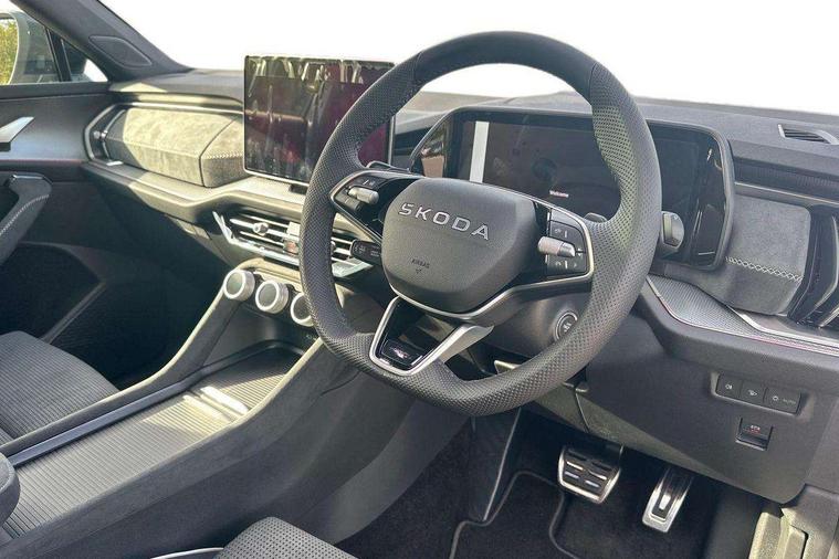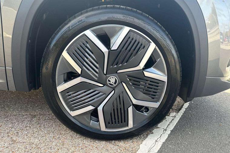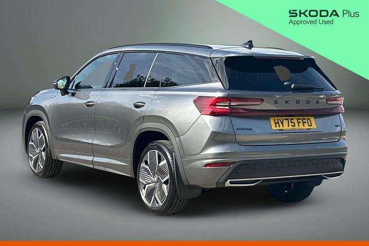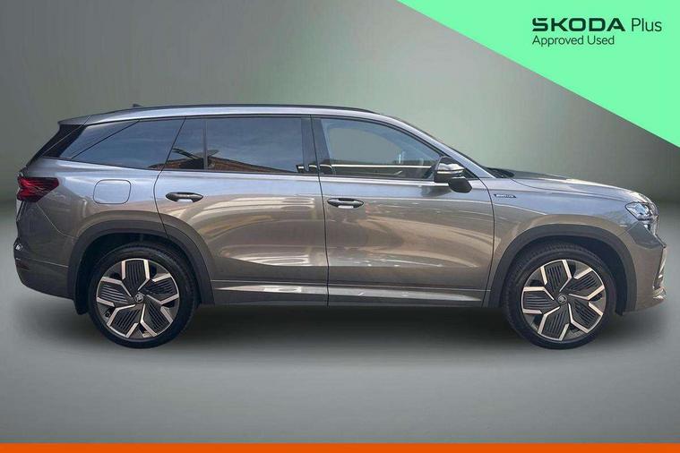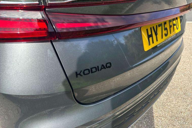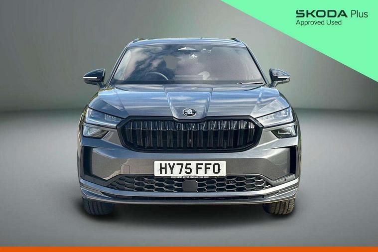 13" satellite navigation touchscreen display, Blind spot detection with door exit warning, Bluetooth system, ChatGPT functionality, Driver alert - Fatigue and drowsiness monitor, Dry display cleaner, Emergency call, Front and rear parking sensors, Front cross traffic assist, Lane assist, Off road modes, PAS, Rear traffic assist, Tailgate unlocking from outside, Traffic sign recognition, USB C Port x 2 in front centre console, Virtual Cockpit - 10.25" digital display, Voice control system, Wireless charging for two smartphones (15W) with cooling function, Wireless SmartLink for Apple CarPlay and Android Auto, Stop/start function, 2x USB-C in the rear, DAB Digital radio, Aero front windscreen wipers with intermittent function, Auto dimming rear view mirror, AWL (all weather lighting) and all weather light with cornering function, Black diffuser and decorative tailpipe with a unique dark chrome finish, Black roof rails, Black sports styling including front grille and window surrounds, Black wheel arch surrounds, Body colour door handles, Cornering light and poor weather light, Electric folding /adjustable/separted heated/folding door mirrors, auto dimming with boarding sports and memory function, Electric front and rear windows, Exterior black decorative trims, Front and rear sports bumpers including lower rear chrome strip, Front grille with horizontal light strip, Gloss black door mirrors, Gloss black window frame and D pillar, Heat insulating glass in windshield, Heated rear window, Ice scraper in fuel tank cap, LED daytime running lights, LED matrix headlights with AFS and LED fog lights, LED rear light with welcome effect and dynamic turn signals, LED third brake light in rear spoiler, Light assistant with automatic headlight control and coming home feature, Logo projection in door mirrors, Multiple matrix beam, Privacy glass, Rear roof spoiler, Rear side wing doors, Rear window wiper, Red decorative strip between rear LED lights, Safety reflectors on front and rear doors, Sportline badge on front fenders, Tailgate lettering in Black, Unique dark chrome design logo on alloy wheels, Window control switches with black trim, Windscreen wipers with rain sensor, Without engine designation, 1.5l bottle holder points in all door, 1x centre rear reading light, 2 seat bench in 3rd row, 3 configurable smart dials with 32mm coloured display, 3 seat bench in 2nd row, 3 spoke multi-function heated leather sports steering wheel with paddle shift, 4 foldable roof handles with rear coat hooks, Aluminium pedals, Ambient interior lighting - Dashboard, front-door stowage compartments, front and rear door panels and footwell lighting, Automatic gear selector on steering column, Chrome interior door handles, Driver/front passenger reading lights, Fabric headlining, Fixed bench 40:60:40 split folding backrests, Front and rear floor mats, Front centre armrest with jumbo box storage compartment, cup holder and 12V socket, Front sport seats, Height adjustable front headrests, Interior black decorative trims, Isofix child seat fittings in outer middle row rear seats and front passenger with top tether, Manually adjustable steering column, Pollen filter, Rear centre armrest with cupholders, Rear seat boot backrest release, Single front passenger seat, Skoda lettering on steering wheel, Storage pocket including mobile phone pockets on the backs of the front seats, Sunvisors with illuminated vanity mirrors, Three rear height adjustable headrests, Ticket holder on A Pillar, Tri zone climate control, Umbrella in door panel x1 made from sustainable materials, Upper and lower glovebox with card holder and coin compartment, USB C port by rear view mirror for charging only (15W), Acoustic package - Kodiaq, Performance package - Kodiaq, Sportline design selection pack - Kodiaq, Auto door release and activation of warning lights in the event of an accident, Driver and front passenger airbag with knee airbag and front passenger airbag deactivation, Electric child locks, Electronic parking brake, ESC (incl. ABS+EMD+MSR+ASR+EDL+HBA+DSR+RBS+ESBS+MCB+TSA+XDS), Front assist with braking reaction to vehicles, pedestrians and cyclists, Front disc brakes, Fuel cut off safety device, Height adjustable front 3 point seatbelts + pretensioners, Hill hold assist, Junction assist with automatic emergency braking, Rear disc brakes, Safety vest holder in door, Seat belt reminder for all seats, Three point rear seat belts, Two tone horn, Tyre pressure monitor, Alarm with interior monitoring and tilt sensor with safe function, Anti-theft wheel bolts, Immobiliser, Remote central locking with 2 keys, 20" Rila anthacite polished alloy wheel with black matte aero covers,