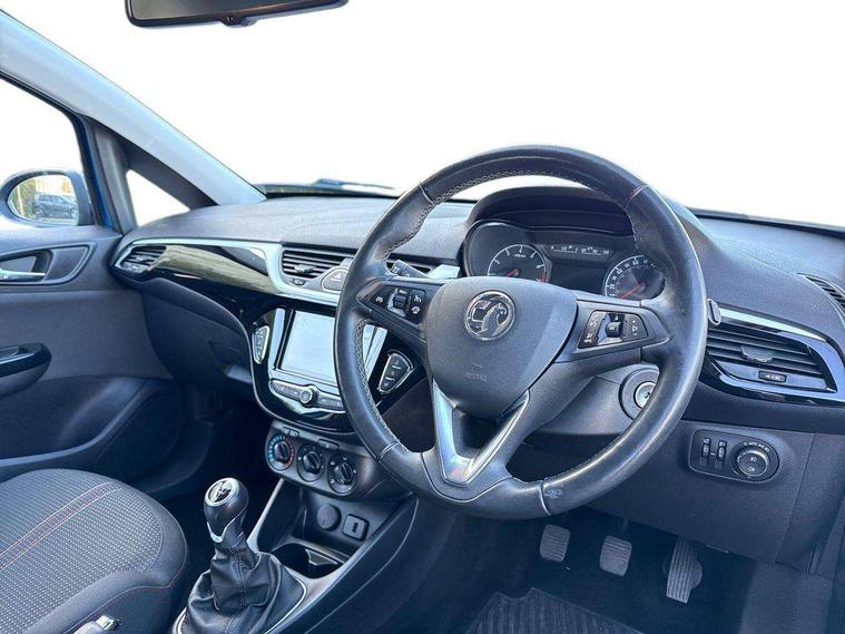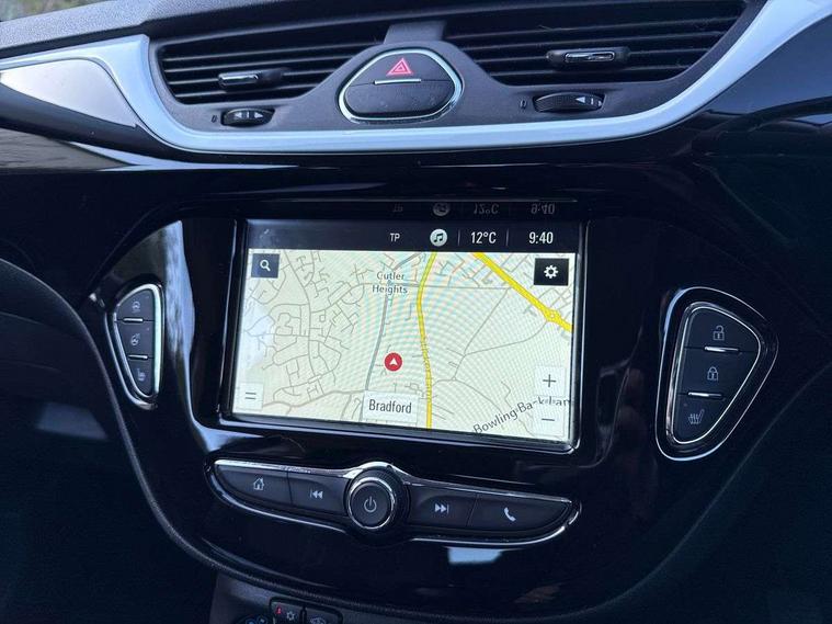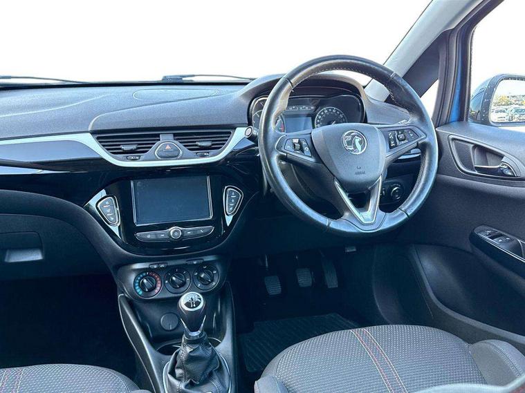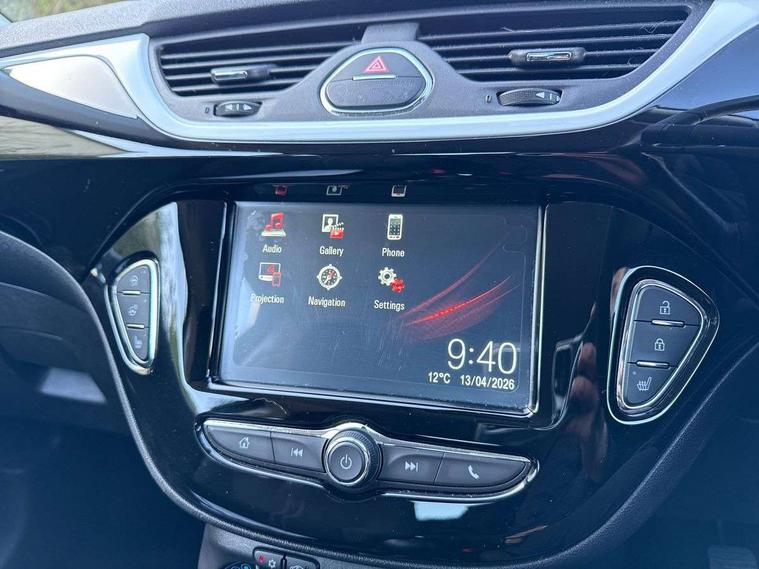 Apple car play/Android Auto, Bluetooth system, Central facia display, Cruise control + speed limiter, Digital fuel gauge with low fuel warning light, Digital water temperature gauge, Electric speed sensitive power steering, Exterior temperature gauge, Lights on audible warning, Navi 4.0 IntelliLink navigation with 7" touchscreen, traffic program, DAB , USB, Bluetooth audio streaming, Apple CarPlay/Android auto, and microphone, Rev counter, Service indicator, Speed warning indicator, Speedometer, Trip computer, White graphics on black background, Front anti roll bar, Sports suspension, Six speakers, Steering wheel mounted audio/cruise controls, Automatically dimming anti dazzle rear view mirror, Black door mirrors, Black foil on B-pillars, Black front grille logo bar, Black roof, Body colour bumpers, Body colour door handles, Chrome front grille, Dark tinted rear windows, Dipping rear view mirror, Door to door illumination, Electric adjustable/manual folding door mirrors (wide angle on driver's side), Electric headlight beam leveling, Electrically operated front windows with safety auto reverse/one touch facility, Front fog lights with black surround, Front fog lights with chrome surrounds, Griffin badges, Halogen headlights, Hazard warning lamps, Headlamp levelling, Heated rear window, Heated windscreen, High level LED centre brake light, Intermittent rear wash/wipe, Laminated windscreen, LED daytime running lights, Mineral black door mirror housings, Rain sensitive windscreen wipers, Rear fog lights, Rear wiper, Side window demist vents, Tinted windows, Two speed windscreen wipers with variable intermittent wipe, Welcome lighting, Windscreen demist vents, 12V electrical accessory socket in front, 3 spoke steering wheel, Air conditioning, Anti submarining ramps in all seats, Centre console with cupholders, Chrome gear knob, Chrome interior door handles, Comfort front seats, Driver's and front passenger's sunvisors, Driver's and front passenger's tiltable assist handles, Driver's and passenger's vanity mirrors with flip up cover, Driver's vanity mirror, Four adjustable facia vents, Front courtesy lights, Front door pockets, Front map reading lights, Front seat belt pre-tensioners with load limiters, Glovebox with lid, Grab handles, Griffin branded floor mats, Heated front seats, Height adjustable driver's seat, Height adjustable front headrests, Height adjustable rear head restraints with adjustable backrest, Illuminated luggage compartment, Instrument panel light dimmer, Interior tailgate handles, Isofix child seat mounting points on outer rear seats, Lace cloth trim, Load restraining lashing points, Luggage compartment cover, Multi function steering wheel, One piece folding rear seat, Pollen filter, Reach + rake adjustable steering column, Rear bottle holder, Rear courtesy lights, Rear reading lights, Reclining front seats, Sports front seats, Storage box on driver's side lower facia, Stowage facility for luggage compartment cover behind rear seats, Twin gas assisted tailgate struts, Two rear tiltable passenger assist handles, Sight and light Pack - Corsa, Winter pack - Corsa, Anti-lock braking system (ABS), Brake assist function, Electronic brake force distribution, Electronic Stability Programme, Energy absorbing steering column, Front and rear seatbelt reminder, Front and rear seatbelt unfastened audible warning and warning light, Front seatbelt force limiters, Gas pressure dampers, Height adjustable front seatbelts, Hill start assist, Manual passenger airbag deactivation function, Pedal release system, Rear child proof door locks, Reinforced passenger safety cell, Side impact protection beams, Six airbags - Driver's dual stage airbag/front passenger's dual stage airbag/front seat side impact airbags/full size curtain airbags, Three 3 point rear seatbelts, Three inertia reel lap/diagonal seatbelts, Traction control, Tyre pressure monitoring system, Electronically protected audio, Engine Immobiliser & Deadlocks, Key left in ignition audible warning, Locking wheel bolts, Remote control central locking, Visible vehicle identification number, Rhutenium facia with chrome effect inserts, 16" 4 twin spoke black alloy wheels, Tyre inflation kit,