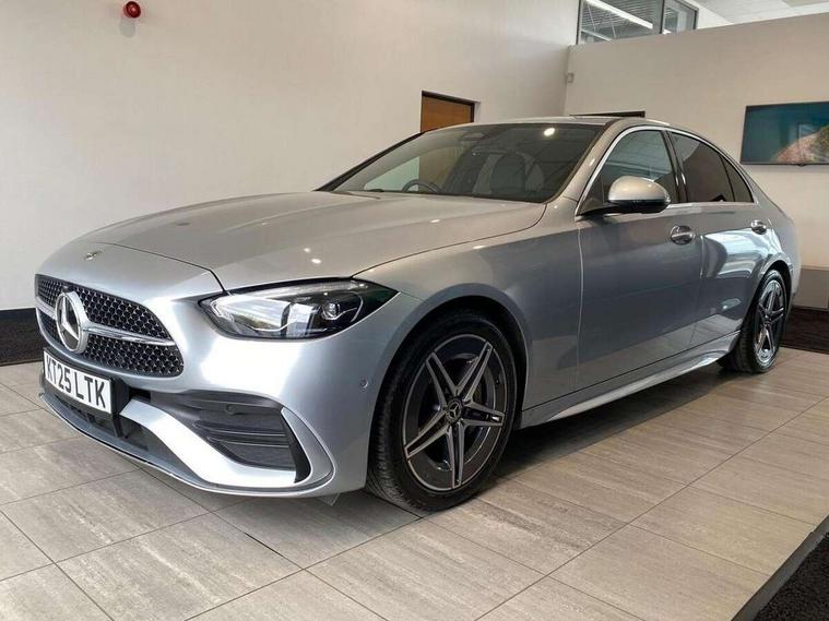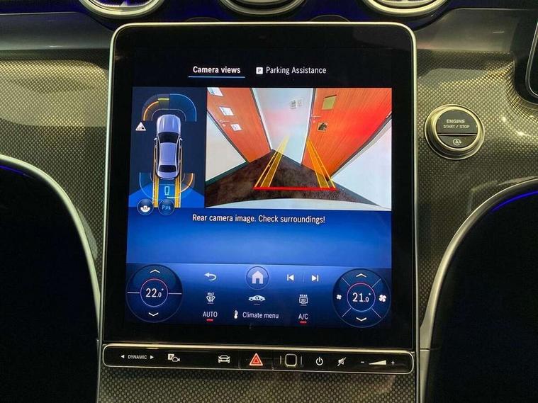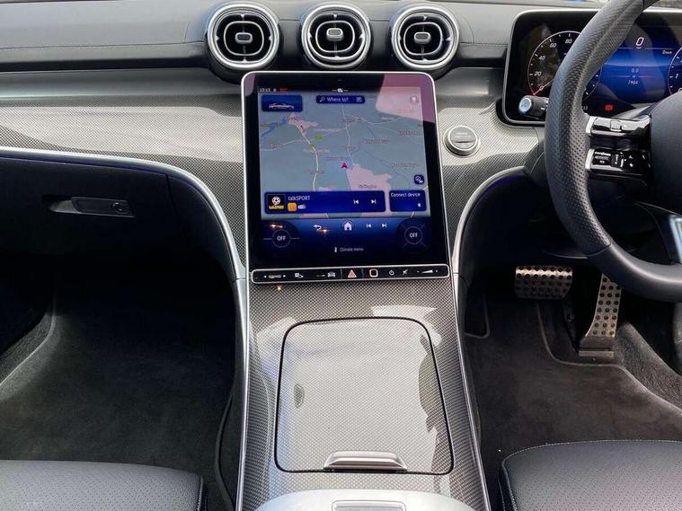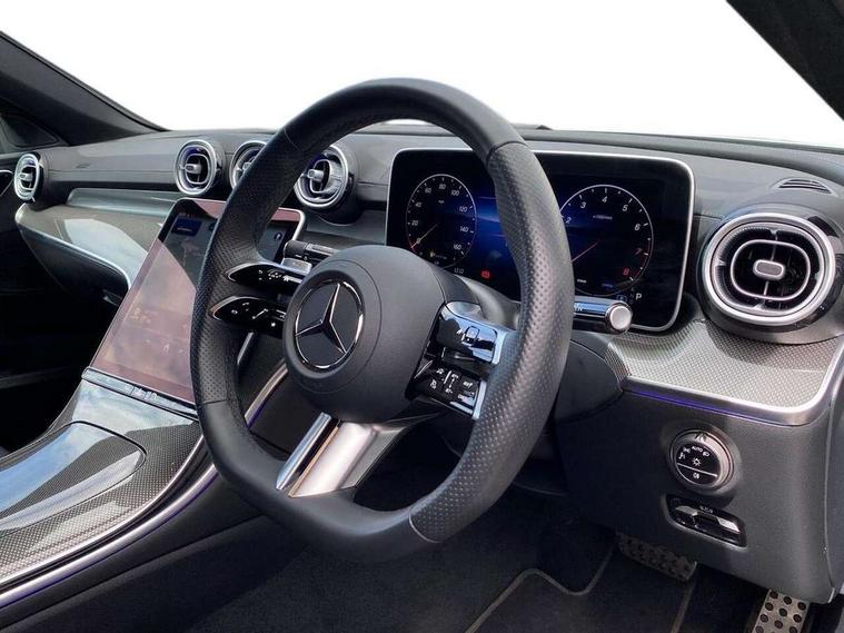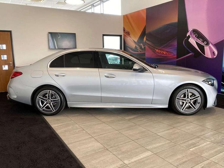 11.9" high resolution multimedia colour display, 12.3" digital instrument cluster display, Active lane keeping assist, Active parking assist with PARKTRONIC, Attention assist, Blind spot assist, Cruise control with speedtronic variable speed limiter, DYNAMIC SELECT with a choice of driving modes (Comfort, ECO, Sport, Sport+, Individual), E-call, Extended MBUX functions, Finger print sensor, Fluorescent jacket for driver, Hard disc navigation, MBUX navigation premium, Mercedes me remote services, Outside temperature gauge, Service indicator (ASSYST), Smartphone integration, Sports direct steer speed sensitive steering, Status display for rear seat belts in instrument cluster, Traffic sign assist, Wireless charging system for mobile devices, 66 litre fuel tank, 9G TRONIC 9 speed automatic transmission, Petrol Particulate Filter, Sport suspension, DAB Digital radio, MBUX multimedia system, Adaptive brake lights, Adaptive high beam assist, AMG body styling front apron, rear apron and side skirts, AMG Line exterior, Body coloured bumpers, Body coloured door mirrors, Electric windows with one touch opening/closing and obstruction sensors, Electrically adjustable and heated door mirrors, Heat insulating dark tinted glass, LED daytime running lights, LED high performance headlamps, LED Indicators, LED tail lights, LED third brake light, Radiator diamond grille with integrated Mercedes Benz star with chrome pins, Rain sensor with automatic windscreen wiper activation, Rear boot, Rear side wing doors, Two visible exhaust pipes integrated into rear bumper, 3 seat bench in 2nd row, 40:20:40 split folding rear bench seat, Ambient lighting premium, Ambient lighting with projection of brand logo, AMG floor mats, AMG line interior, Artico man-made leather upholstery, Auto Mercedes-Benz child seat recognition sensor, Black roof liner, Double cupholder in centre console, Electrically height/reach adjustable steering column, Folding rear seat backrest, Front and rear head restraints, Gearshift paddles on steering wheel, Heated front seats, Illuminated door sills with Mercedes Benz lettering, Illuminated glove compartment stowage, Multifunction sports steering wheel in nappa leather, Rear top tether child seat ISOFIX attachment, Single front passenger seat, Sports seats, Sunvisors with illuminated vanity mirrors, THERMATIC 2 zone automatic climate control, Interior light package - C Class, Memory package - C Class, Mirror package - C Class, Parking package with reversing camera - C Class, Stowage space pack - C Class, USB package plus - C Class, 3 rear 3 point seatbelts, Active bonnet pedestrian safety measure which detects an impact and raises bonnet, Active brake assist, Adaptive brake system with HOLD function and brake drying in the wet, Anti-lock braking system (ABS), Black seat belts, Brake calipers with Mercedes-Benz lettering + perforated front brake discs, Child proof door locks, Drivers knee airbag, Drivers pelvis airbag, Dual stage driver/passenger airbags, Electric parking brake, Electronic Stability Programme (ESP), Front centre airbag between driver and front passenger seats, Front side airbags, Tyre pressure monitoring system, Warning triangle and first aid kit, Window airbags for driver, front passenger and rear passenger, Antitheft alarm system, Interior monitoring system and Increased antitheft protection, Central locking with interior switch, automatic locking and crash sensor with emergency opening function, Chrome surround in electric key, Urban guard vehicle protection plus, Dashboard, instrument panel and beltlines in ARTICO man made leather in nappa look, Metal structure trim element with centre console in metal structure finish, 18" AMG 5 spoke light-alloy wheels painted in tantalite grey with high sheen finish, TIREFIT with tyre inflation compressor,