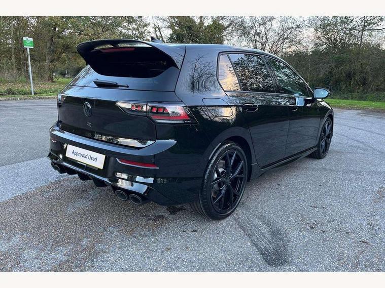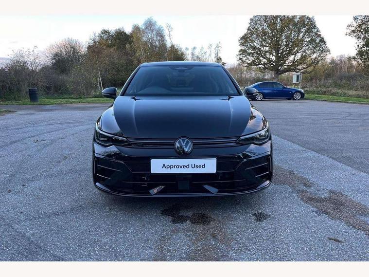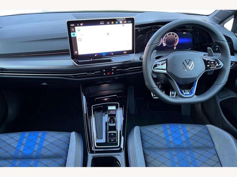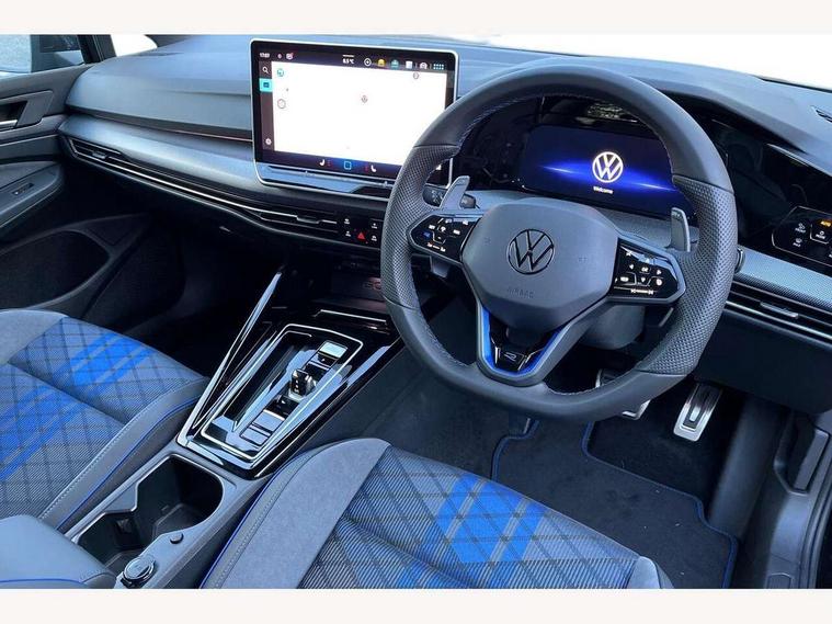 Activated carbon canister, Adaptive cruise control (ACC), Advanced driver attention and drowsiness monitor, Dynamic road sign display, E-Sim card for online connectivity, eCall emergency call system, Electronic maximum speed limit increased to 270 km/h, includes driving Modes 'drift' and 'special', larger roof spolier and GPS laptimer + G-Meter, Multi-color Digital cockpit pro, selection of different info profile possible, Multifunction front facing camera for distance control, Navigation system, Oncoming vehicle braking when turning including swerve support, Progressive steering, Side assist blind spot lane change system, rear traffic alert and exit warning system, Speed limiter, Speedo, rev counter, electronic odometer, trip, service interval display, exterior temperature and fuel gauge, Traffic jam assist, Voice enhancer and voice control, Warning signal and warning light for front and rear seatbelts not fastened, We connect plus preparation, We connect preparation, Wireless app connect, All wheel drive - 4Motion, Petrol Particulate Filter, Start-stop system with battery regeneration (recuperation - energy recovery during braking), XDS electronic differential lock for improved traction and handling, 2 USB C ports in front, 2 USB charging sockets on the centre console in the rear charging capacity upto 45W, Digital radio reception (DAB), Diversity antenna for FM reception, Gaming platform via car app, Infotainment system with 12.9" display, Mobile phone interface with inductive charging feature, 3rd brake light, Auto dimming rear view mirror, Automatic headlamp activation with Coming home and Leaving home feature, Black badge on B-pillar, Black mirror caps, Black strips on radiator grille and headlights, Body colour door handles, Darkened headlights, Darkened R Logos and VW logos in front, rear and on fender, Exterior mirrors convex on the left and aspherical on the right, Front and rear electric windows, Front fog lamps and cornering light, Heat insulating windshield made of laminated glass, Illuminated lighting animation with wake up/goodbye scenario, LED matrix headlights with ambient light V2, advanced high beam, dynamic range contol with cornering, LED rear lamp with indicator, poor weather, LED separate daytime running light, Light assist with High beam control, R name plate, Rain sensor, Rear fog light on one side and reversing lights on both sides, Rear side wing doors, Rear tinted glass 65% light absorbing from B pillar backwards, Rear windscreen washer and wiper with interval delay, Remote electrically foldable door mirrors, puddle lights and reverse activated passenger's door mirror, Welcome light with surround lighting, 12V socket in front centre console, 12V socket in luggage compartment, 3 rear head restraints, 3 seat bench in 2nd row, 30 colour ambient lighting, illuminated center console storage compartment in front, Air care climatronic 3 Zone automatic climate control with rear air conditioning control panel, Aluminium gearshift handle, Brushed stainless steel pedals, Chrome plated radiator grille inserts, air vent surrounds and light switch surrounds, Entry lights, Front + rear black carpet mats, Front centre armrest, Integrated front head restraints, ISOFIX anchors for child seats on outer rear bench seats and on front passanger seat compatible for i-Size, Luggage compartment lighting, Rear cupholder and loadthough, Single front passenger seat, Soul black instrument panel, Soul black roof lining, Split folding backrest with centre armrest and unsplit rear seat bench, Sun visors with illuminated vanity mirrors, Driver assistance pack - Golf Estate/Hatchback Auto, R styling pack - Golf, Technology park and comfort pro package - Golf Hatchback, 3 point height adj front seatbelts + pretensioners, 3 rear three point seatbelts, ABS, Autonomous emergency braking front assist with pedestrian and cyclist monitoring, Child locks on rear doors, Driver and front passenger airbag with front passenger airbag deactivation, Electronic parking brake with auto hold, ESC (Electronic Stability Control), Extended pedestrian protection measures, Front and rear black brake calipers with darkened R-logo, Hill start assist, Rear disc brakes, Two tone horn, Tyre pressure loss indicator, Volkswagen roadside assistance, Anti theft wheel bolts, Preparation for alcohol interlock, Sporty vehicle dynamics, Tool kit for tyre mobility set, Tyre mobility kit Includes 12V compressor and tyre sealant, Wheel hub cover with darkened R-logo,