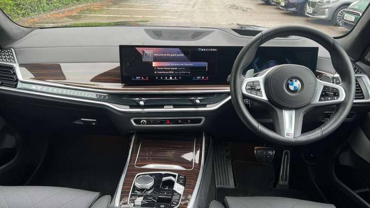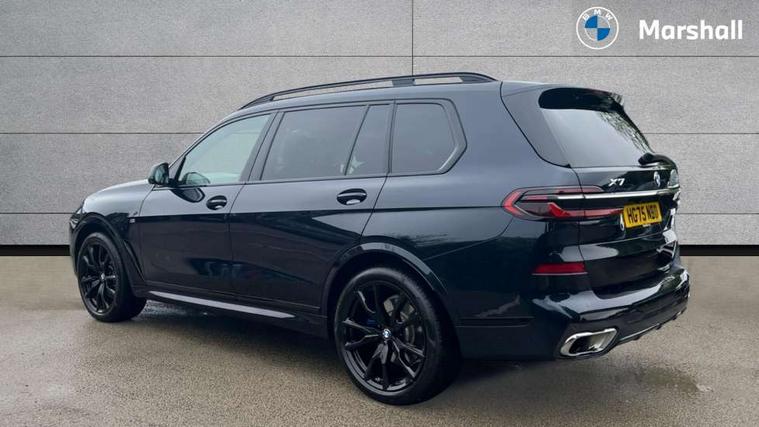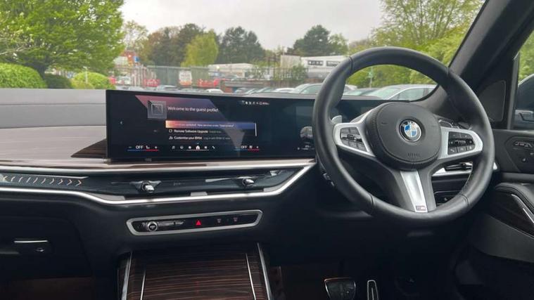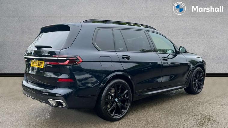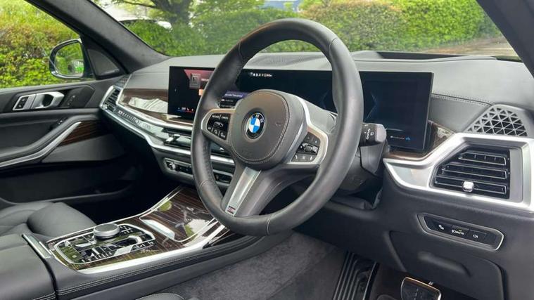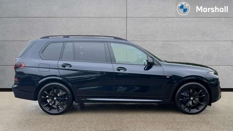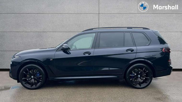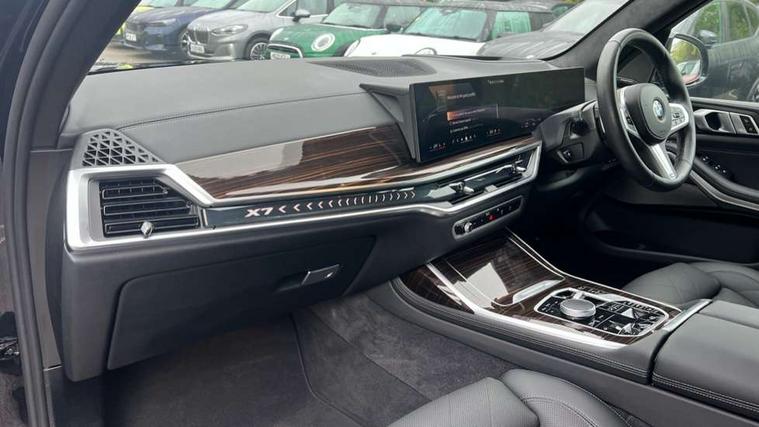 Attentiveness assist, Automatic start/stop function, Automatic tailgate operation, BMW ConnectedDrive online services, BMW Drive recorder, BMW gesture control, BMW Teleservices, Brake pad wear indicator in front and rear, Condition based service, Integrated owner's handbook, Live Cockpit Professional with head up display including 12.3" instrument cluster and 14.9" central display, Parking assistant pro including reversing assistant, PDC, lateral parking aid, reversing assist camera, parking drive off monitoring, 48V Mild hybrid technology, 8 speed automatic with steptronic transmission including automatic hold function and gearshift paddles on the steering wheel, Drive experience switch with comfort mode + ECO PRO + sport mode, Permanent all wheel drive, 2 rear USB-C ports, 2x Front USB (1x USB-C, 1x USB-A), DAB radio, Personal eSim, Acoustic glazing, Adaptive air flap control bars in high gloss black, Air breather and door claddings in high gloss chrome, Body coloured wheel arches, Dynamic brake lights with LED technology, Electrically adjustable and heated aspheric folding side mirrors with auto dimming, electric fold in function, automatic parking function, Exterior and central air inlets in front bumper painted pearl chrome, Follow me home headlight function, Frameless interior mirror, Front and rear electric windows, Heated windscreen washer nozzles, High beam assist, High gloss black shadow line roof rails, High gloss black shadowline trim in side/window frame, window recess cover, window guide, B and C pillar, mirror triangle, mirror base, mirror frame, Integrated turn indicators (door), LED daytime running lights, LED rear lights, LED third brake light in rear spoiler, Rain sensor with automatic headlight activation and windscreen wiper control, Rear side wing doors, Sump guard front and rear painted in silver, Trailer stabilisation logic, 12V - Power sockets with 2x centre console and 1x luggage compartment, 2 seat bench in 3rd row, 2x cupholders in front, rear centre armrest and two in third row seats, 3 seat bench in 2nd row, 3 spoke M leather multifunction steering wheel, 40:20:40 split folding rear seat backrests, Ambient lighting strip in the instrument panel with illuminated, Armrest in front centre console, Compartment in front of cupholder, Driver and front passenger sunvisors with illuminated vanity mirrors and ticket holder, Electrical steering column with adjustable height and length with activation and control on the steering column, Entry sills with illuminated M inscription, Fold down flush into floor of luggage compartment 50:50, Front and rear colour co-ordinated with all standard carpet colours, Front and rear door pockets, Front and rear side armrests integrated into door trim, Front seat back pockets, Grab handles, Height adjustable front headrests, Height adjustable rear headrests, Lockable glove compartment, Nano filter, Single front passenger seat, Soft close doors, Storage tray and compartment with lid in centre console, Wireless charging tray, Additional storage compartment pack - X7, Ambient light interior pack - X7, Connected Package Professional - X7, Interior lighting pack - X7, Luggage compartment pack - X7, M aerodynamics pack - X7, M Sport pack - X7, 3 point seatbelts on all seats, front pyrotechnic belt tensioners, stopper and belt force limiters, front and outer rear seats, Acoustic protection for pedestrians, Active protection, Airbag - Front driver and passenger, side airbags and Head airbags, Anti lock braking system (ABS) with cornering brake control, BMW emergency call, Child seat ISOFIX attachment rear outer seats in 2nd row and both seats in 3rd row includes top tether, Comfort access system with digital key plus, Comfort cushion seats for outer seats in 2nd row, Crash sensor inclu activation of airbags, interior light, safety battery terminal clamp, hazard warn flasher, unlock doors, deactivation of fuel pump, DSC - Dynamic Stability Control, Dynamic Traction Control - DTC, Electromechanical parking brake with automatic drive away release and auto hold function, Front and rear brake discs with interior ventilation, Hill descent control, Integrated braking system, Manual child lock in rear doors, PC iBrake PostCrash approach control warning with light braking function, Tyre pressure monitoring system, Tyre pressure sensors, Variable torque distribution, Warning triangle and first aid kit, Alarm, Central locking including 2 vehicle keys with integrated emergency key, Engine immobiliser, Locking wheel bolts, Galvanic embellisher for controls,