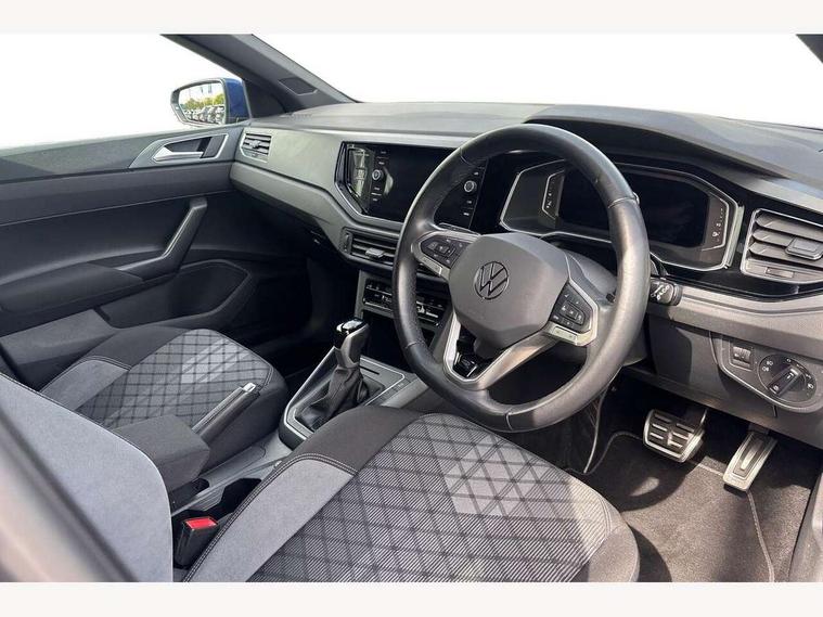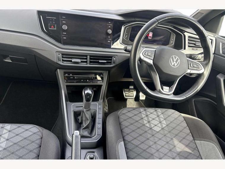 Adaptive cruise control with follow-to-stop and speed limiter, Bluetooth mobile phone interface, Digital Cockpit Pro with 10.25" Display, Driver alert system, Dynamic road sign display, Emergency call service, Power assisted speed sensitive steering, Preparation for We connect and We connect plus, Speedo and rev counter, electronic odometer, trip, service interval display and fuel gauge, Standard rear axle, Travel Assist - Lane keeping system and traffic jam assist, Travel assist including emergency assist, Trip computer, Warning signal and warning light for front and rear seatbelts not fastened, Washer fluid level indicator, Wireless app connect, Front wheel drive, Rear shock absorpion, Start-stop system with battery regeneration (recuperation - energy recovery during braking), DAB Digital radio, Diversity antenna for FM reception, Front and rear 6 speakers, Body colour bumpers, Body colour door handles, Body colour door mirrors, Electric front windows, Front scuff plates with R-Line logo, Heat insulating darkened glass in side and rear windows, Heat insulating glass windscreen, Power folding adjustable/heated exterior mirrors and front passenger exterior mirror lowering function, Rear electric windows, Rear fog light, Rear side wing doors, Rear tinted glass from B-pillar backwards approx 65% tinted, Rear windscreen washer and wiper with interval delay, Third brake light, 12V power socket in centre console, 2 USB-C ports in the front, 2 USB-C charging sockets on the center console in the rear, 3 rear head restraints, 60/40 split folding rear seat and rear seat bench not split, Air care climatronic air conditoning system with active combination filter and 2-zone temperature control, Black roof lining, Ceramique headliner, Chrome plated radiator grille inserts, air vent surrounds and light switch surrounds, Door and side trim panel, Driver and front passenger seat height adjustment, Driver/passenger sunvisors with illuminated vanity mirrors, Front + rear carpet mats, Front centre armrest, Front footwell illumination, Front seat backrest storage pockets, Front sports comfort seats, Handbrake lever handle in leather, Isofix child seat preparation easy-fit (for two outer rear seats, and front passenger seat) compatible with I-size, Karoso artvelours cloth upholstery, Leather trimmed gear knob, LED interior light with switch off delay and dimmer, 2 reading lights front and rear, Luggage compartment cover, Luggage compartment floor, Luggage compartment lighting, Lumbar adjustment for front seats, Single front passenger seat, Stainless steel pedals, Standard pedal cluster, Three spoke leather wrapped multifunction steering wheel with shifting paddles, Light and sight pack - Polo R-Line/Black Edition, 3 point height adj front seatbelts + pretensioners, 3x3 point rear seatbelts, ABS, Driver and front passenger airbag with front passenger airbag deactivation, Drivers and front passengers safety optimised head restraints, ESC (Electronic stability control) + EDL (Electronic Differntial lock) and ASR (Traction control), Extended and predictive pedestrian/ cyclist protection, Front curtain and side airbags with center airbag, Front/rear disc brakes, Hill hold control, Manual child lock in rear doors, Single tone horn, Tyre pressure loss indicator, Alarm with interior protection, Anti-theft alarm system with interior monitoring, backup horn, and towing protection, Anti-theft wheel bolts, Electronic engine immobiliser, Chrome applications on rotary light, mirror adjustment, window regulator switches, outlet with frame in black, Dark grey anodised matt decorative inserts in dash and front door panels, Low rolling resistance tyres,