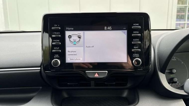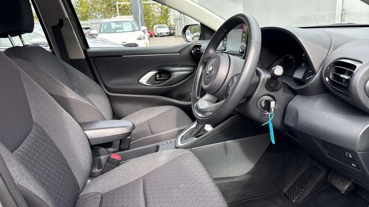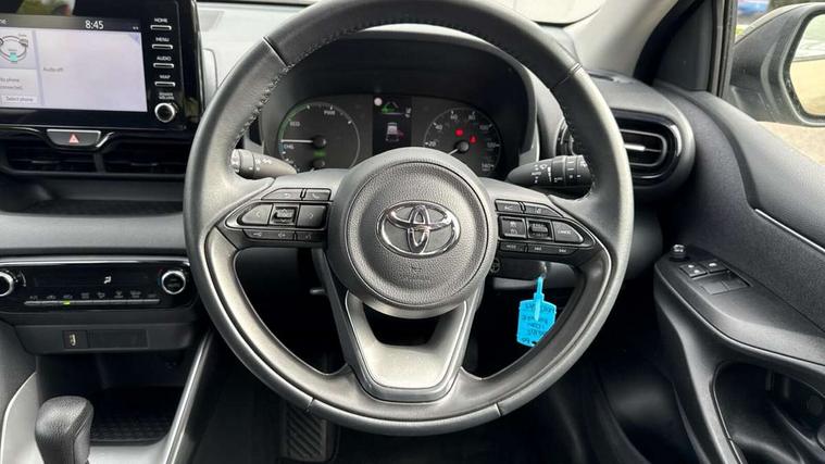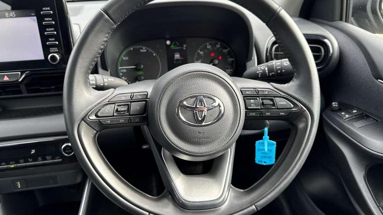 4.2" coloured TFT multi information display with analogue speedometer, Adaptive cruise control, Adjustable speed limit with speed warning, Bluetooth connectivity, E-call, Electric power steering, Hybrid energy display, Multi information display switches on steering wheel, Reversing camera, Smartphone integration with Apple CarPlay and Android auto, Tailgate, Voice recognition, Vehicle Stability Control (VSC), 4 speakers, 7" Multimedia display touch screen, Toyota Touch 2 with DAB, USB connection, Acoustic windscreen glass, Auto windscreen wipers, Automatic headlights, Body coloured door mirrors, Bulb indicators, Chequered front grille, Daytime running lights, Electric adjustable heated door mirrors, Follow me home headlights, Front auto power windows with anti jam protection, Halogen projector headlights, LED High mounted stop lamp, Manual headlight levelling, Rain sensor, Rear side wing doors, Rear spoiler, Rear wiper, Shark fin antenna, Turning signal integrated indicators in door mirrors, Variable front intermittent wipers, 3 adjustable rear headrests, 3 seat bench in 2nd row, 3 spoke leather steering wheel, 60/40 split folding rear seat, Active headrests, Adjustable boot height, Auto air conditioning, Coat hooks in rear grab handles, Cup holders (2 front & door), Data Communication Module (DCM) connected services, Fabric upholstery, Front armrest, Glovebox, Grey roof lining, Height adjustable driver's seat, Isofix seat fixing, Leather gearshift, Pollen filter, Shopping bag hooks, Single front passenger seat, Tilt/telescopic steering column, 3 point seatbelts on all rear seats, ABS+EBD+Brake assist, Electronic parking brake, Emergency brake light system (EBS), Front passenger airbag on/off switch, Front seatbelt reminder, Hill start assist control (HAC), Rear child proof door locks, Rear seat belt reminder, Supplemental Restraint System (SRS) 8 airbags: Driver & passenger's airbags, dual side curtain airbags, side impact airbags, front centre airbag, Toyota Safety Sense 2, Precollison + Night time Pedestrian & Cyclist Detection, Lane Trace Assist, Auto High Beam, Intelligent ACC & Road Sign Assist, Tyre pressure warning system, 2x Master key, Alarm/immobiliser, Remote powered central double locking doors, Soft touch instrument panel, Space saver spare wheel,