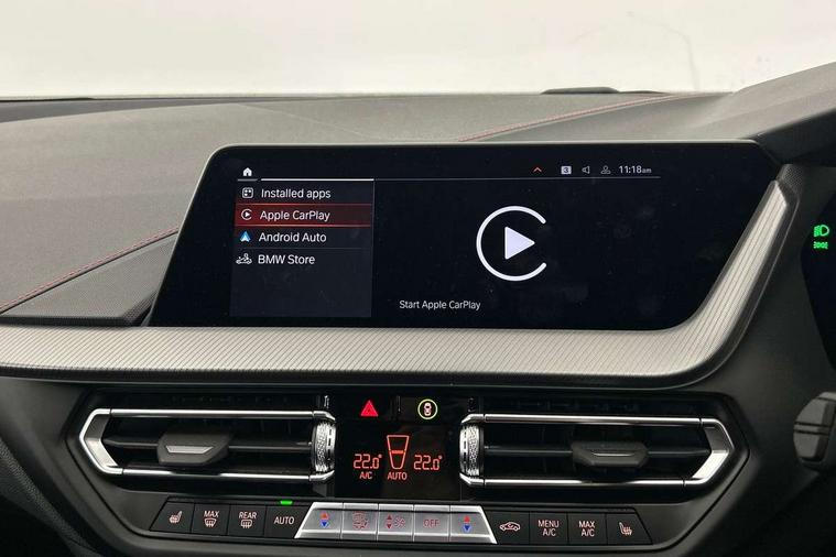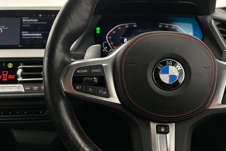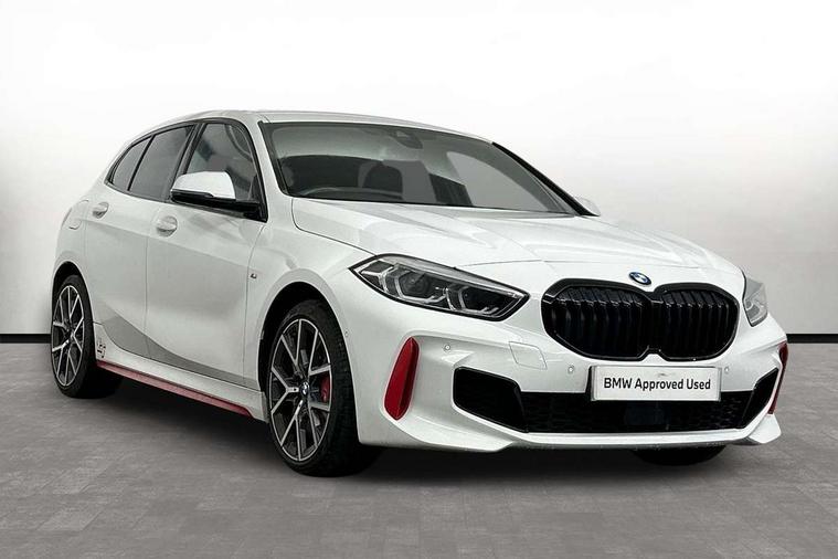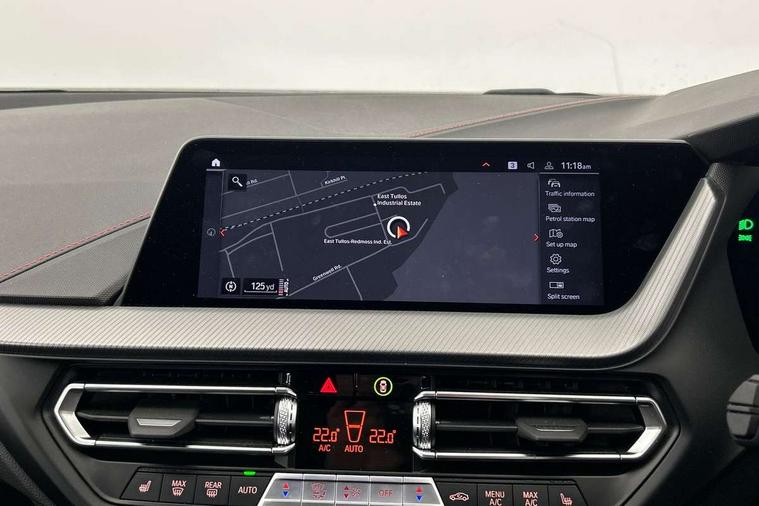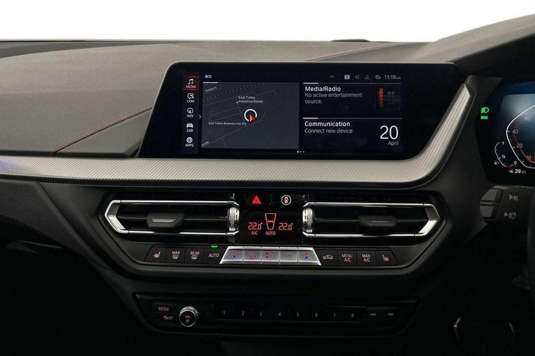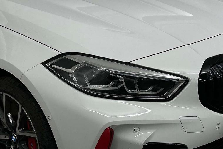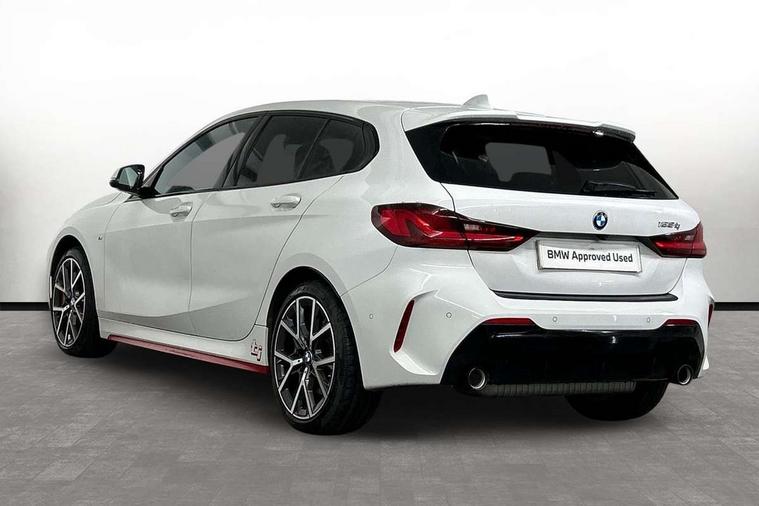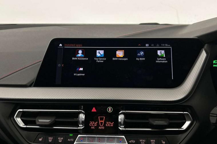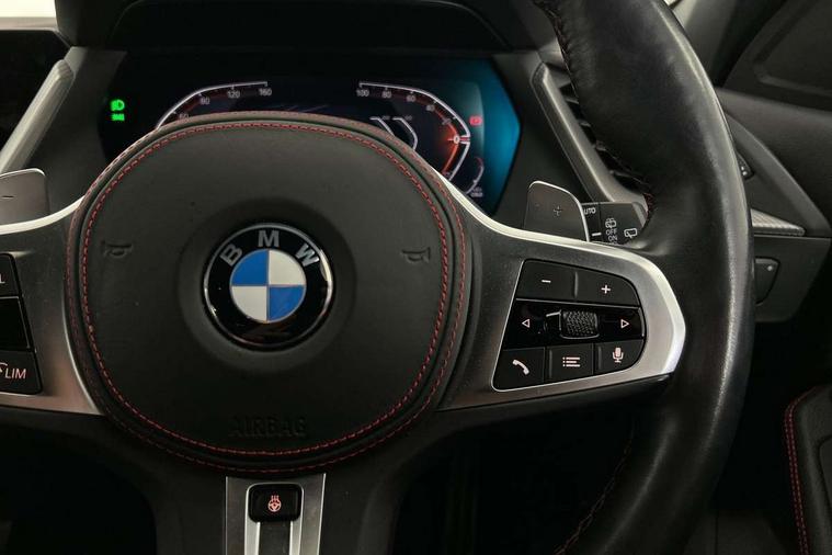 Active guard plus, Attentiveness assist, BMW ConnectedDrive online services, BMW Teleservices, Check Control warning system for monitoring of lights and door/luggage compartment open warning, Cruise control with brake assist, Eco pro mode, Electric power steering with Servotronic steering optimised at all speed ranges, Front axle single joint with specific axle kinematics to minimise drive influences on steering + provide increased rigidity agile driving behaviour, Integrated owners handbook, Lane departure warning system, Oil sensor for level and grade, On board computer, Optimum shift indicator, Personal Profile, Pull away assistant, Rigidly mounted rear subframe - Multi link construction with separate spring / damper configuration and excellent driving characteristics, Speed limit Info including no-overtaking indicator, Speed limiter, Aluminium lightweight construction, Anti roll bar front and rear, Balancer shaft, Double VANOS twin scroll turbocharging system, Drive Performance Control, Eight speed sport automatic transmission with gearshift paddle switches, Electronic differential lock, High precision injection, Larger fuel tank capacity (50 litres), M sport suspension with M128i xDrive specific settings, Petrol Particulate Filter, Twin tube gas filled shock absorbers with degressive characteristic curve, VALVETRONIC engine management, DAB Digital radio, Auto dimming rear view mirror, Automatic headlight beam throw control, Automatic windscreen wipers and automatic headlight, Black chrome tailpipe finishers, BMW individual high gloss shadow line with extended content, Body colour door handles, Body colour mirror caps, Body colour roof trims, Chrome 'M' logo side designation, Chrome kidney grille frame with Satin Aluminium struts, Direction indicator side lights in exterior mirrors, Fading support, Folding side mirrors with auto dimming/folding wing mirrors with auto dimming, Follow me home headlights, Front and rear bumper system with replaceable deformation elements, Front and rear electric windows with open and close fingertip control, anti trap facility and comfort closing, Front door sill finishers in black plastic with M designation in metallic look, Green tinted heat protection glazing, Heated, electrically adjustable exterior mirror aspheric on driver side, convex on passenger side, High gloss shadowline window frame, Recess cover mirror frames and B/C pillar embelisher trim, High level third brake light, Integrated front windscreen with washer jets, Kidney frame and struts in high gloss black extended, LED daytime running lights, LED eyebrow turn indicators, LED front fog lights, LED Headlights, Lightweight engineering, Matt black air guide grilles, Matt black wheel arch trim, Model designation on electric bootlid, Nearside reverse light in rear light cluster, Preparation for high beam assistant, Rear fog lights, Rear side wing doors, Rear window wiper, Shark fin antenna, Trailer stabilisation logic, Visible VIN plate, Welcome lighting, 12V power socket in front centre console with blanking plug, 3 rear seat head restraints, 3 seat bench in 2nd row, Anthracite headlining, Black boot net with lashing eyes, Cargo function on 2nd seat row, Centre armrest in black/red highlight including embroidered 'ti' designation in red, Child seat ISOFIX attachment for two outer rear seats and front passenger seat with anchorage points, Conditioned based service, Driver and front passenger seat heating, Floor mats with red binding, Folding rear clothes hook, Four grab handles integrated in roof lining, Front and rear door pockets with bottle holders, Front and rear side armrest integrated into door trim, Front armrest, Front sports seats, Glove compartment, Height adjustable front head restraints, Instrument panel top section , door armrests and door panels in black/red highlight, Luggage compartment for bag hooks on left and right, foldable luggage compartment liner and four lashing eyelets, Manual adjust steering wheel, Multi-function controls for steering wheel, Single front passenger seat, Storage compartment in centre console, Sun visors with vanity mirrors and insert tab, Three spoke M sport design multi function leather steering wheel in unique red stitching, Two front centre console cupholders, Two zone automatic air conditioning, Additional interior lighting pack - 1 Series, BMW live cockpit professional pack- 1 Series, Connected pack professional - 1 Series, Interior lights pack - 1 Series, M Sport exterior styling aerodynamics pack - 1 Series, 2 tone horn, 3 point seatbelts on all seats, front pyrotechnic belt tensioners, stopper and belt force limiters, rear coded belt buckles, Airbags - Front driver/passenger, front and rear curtain head protection, front side, manual deactivation of front passenger airbag, Anti lock braking system (ABS) with brake assist, BMW emergency call, Brake drying, Braking readiness, Child proof locking system in rear door, City braking function, Comfort modes, Cornering brake control, Crash sensor activating central locking release, hazard warning lights, fuel cut off, interior lighting + activation of safety battery terminal clamp, Driver and front passenger seat belt security check, Dynamic stability control + (DSC+), Dynamic Traction Control - DTC, Electrically operated hand brake including automatic hold function, Front and rear disc brakes, M Sport brakes with red calipers, M Sport seatbelts, Seatbelt warning, Side impact protection, Tyre pressure monitoring system, Warning triangle and first aid kit, Central locking switch for all doors, fuel filler cap and luggage compartment, Deadlocking function system to all doors, Drive away locking system on all doors and luggage compartment with de-activated in iDrive settings, Locking wheel bolts, Remote control with integrated key with High-gloss Black inlay and M designation and 1 button for open/ close lock, window, open luggage compartment, Start/stop button illuminated in centre console with keyless e